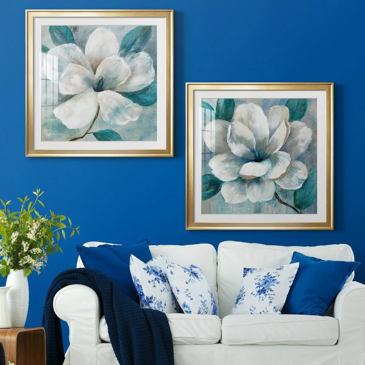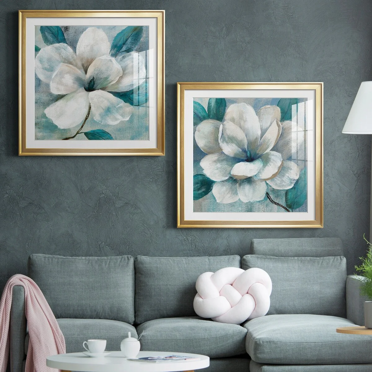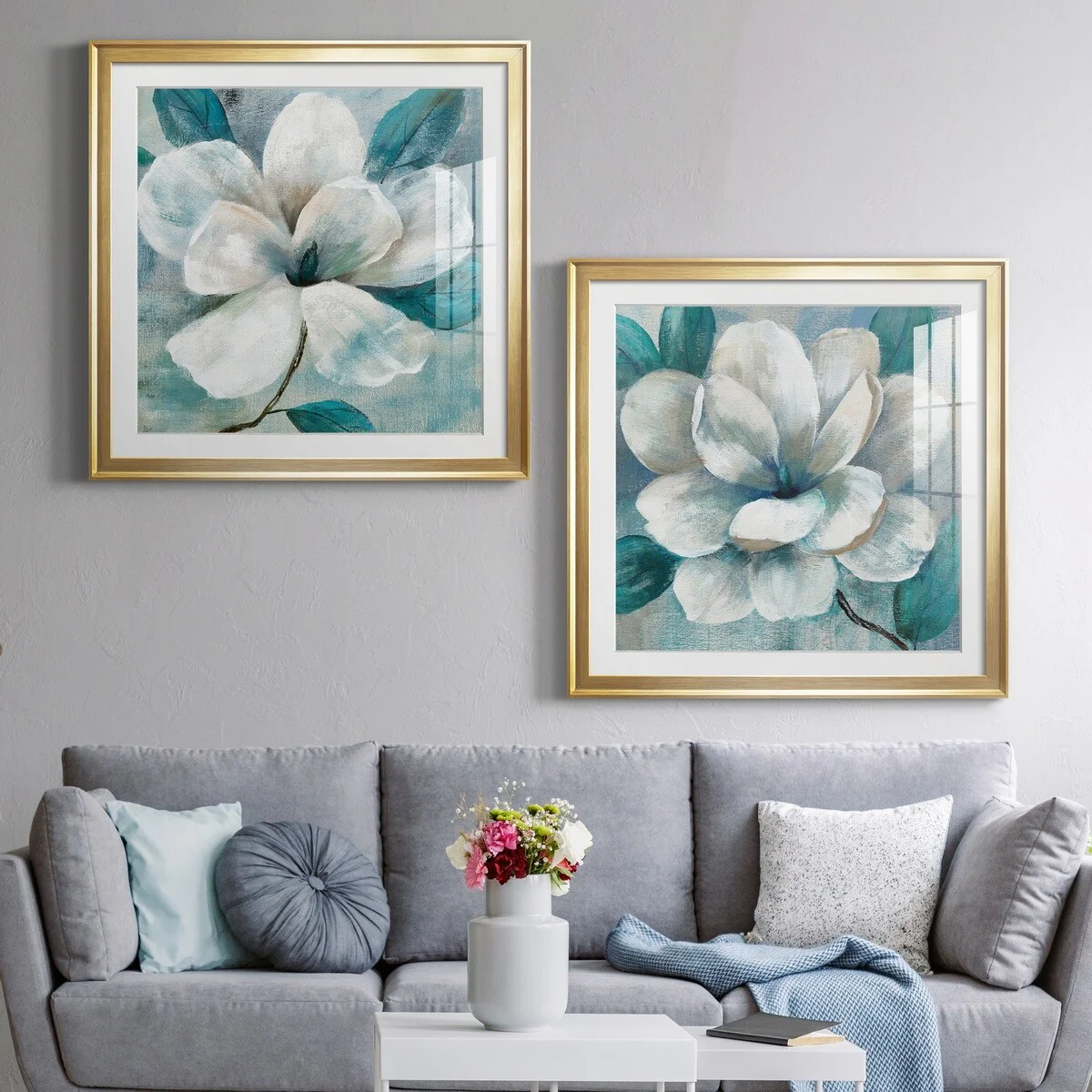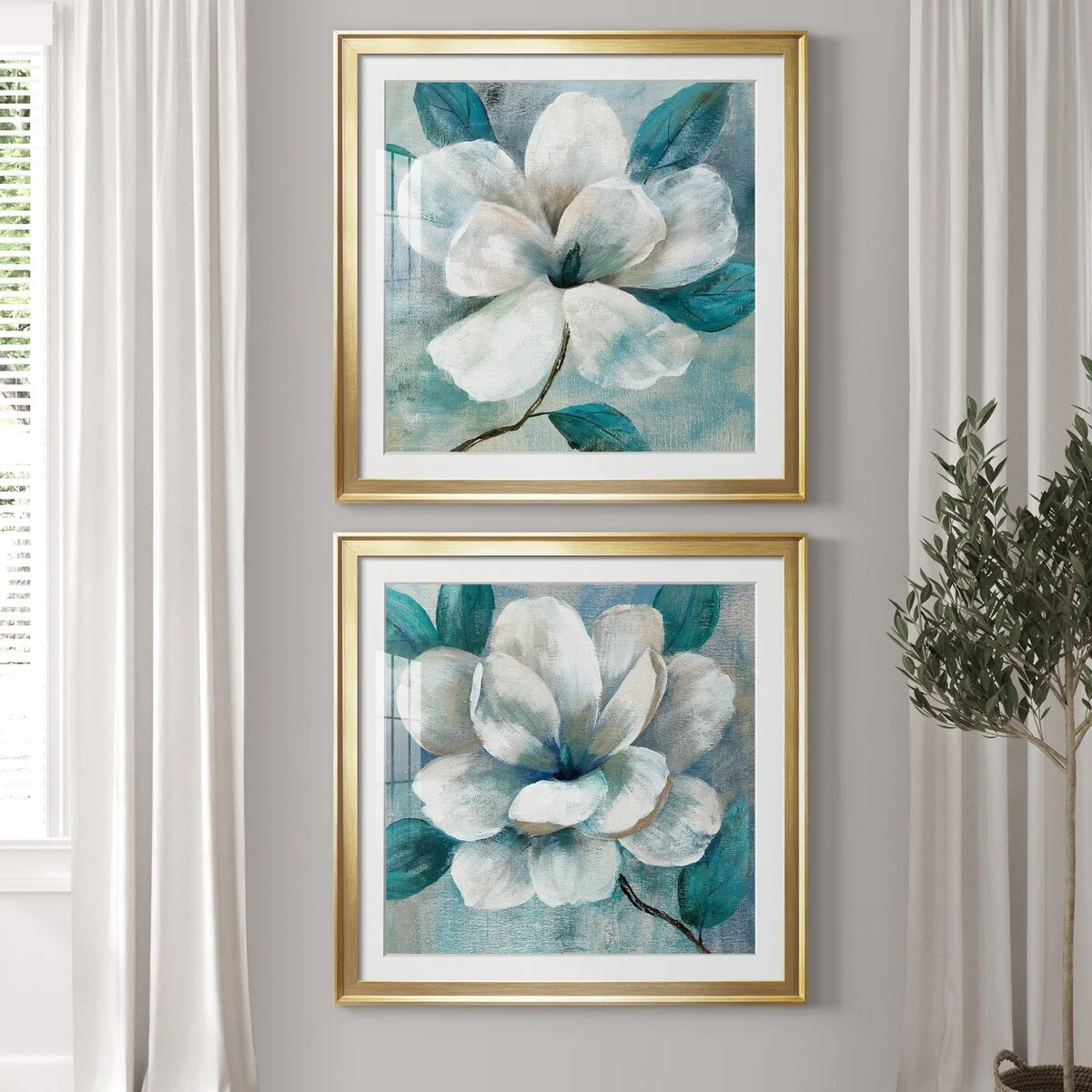 Teal Magnolia I Premium Framed Print - Ready to Hang A Premium Framed Print created to last.Framed in distressed wood and available in an array of sizes and colorsFeaturing a beveled a solid wood stretcher bar, each piece comes ready to hand4 SIZES AVAILABLE34.5''X34.5'' - Overall Size30.5'X30.5'' - Overall Size26.5''x26.5'' - Overall Size22''x22'' - Overall Size18.5''x18.5'' - Overall SizeEach piece is made to order.Each piece comes with hanging hardware.Made in the USAReady to HangGiclee Paper PrintAcrylic GlassBeveled Matt Board