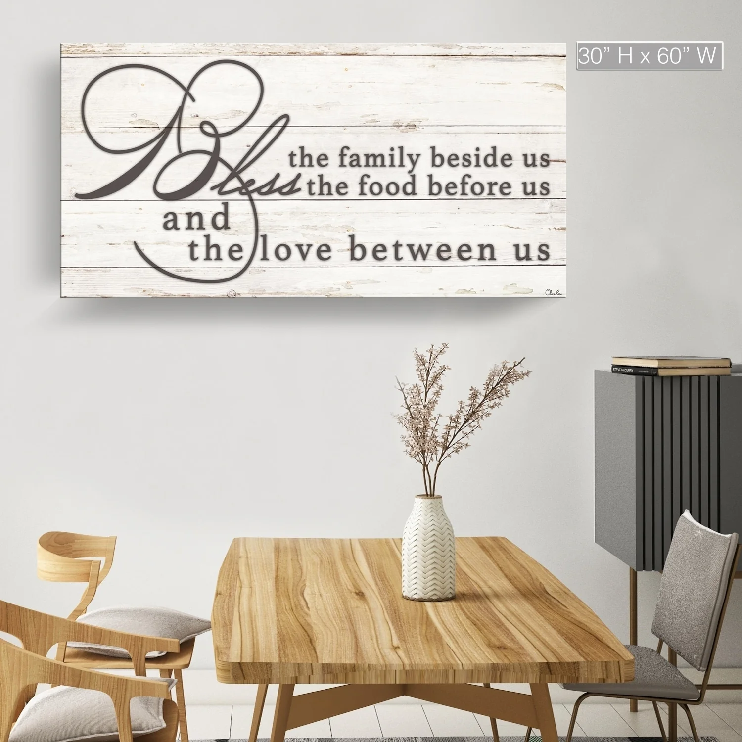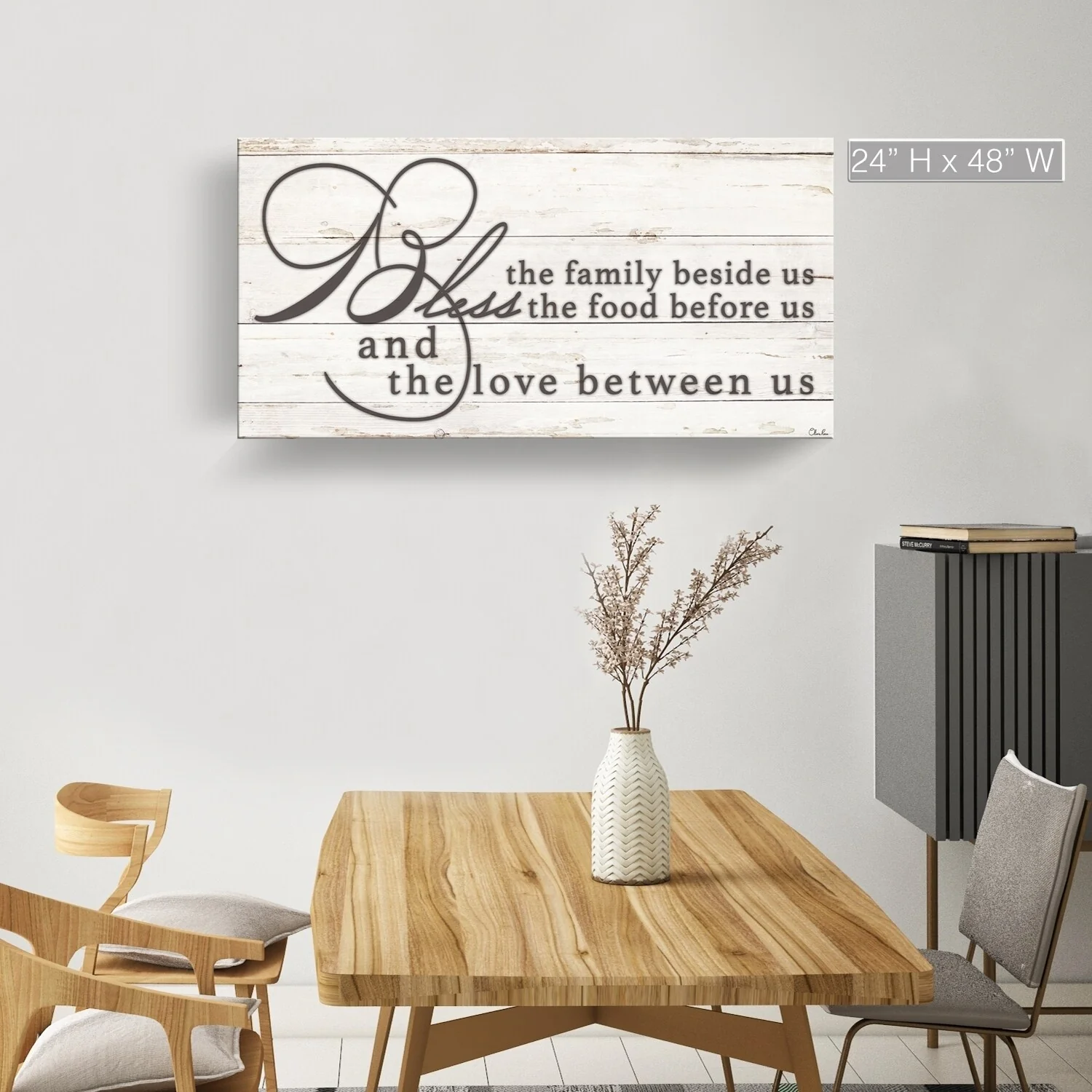 Add a touch of warmth to your kitchen with 'Blessing' Wrapped Canvas Kitchen Wall Art from The Gray Barn. Featuring a heartwarming prayer for family, food, and harmony, this canvas piece is perfect for cozy homes. Produced on a rugged surface with a poly-cotton matte canvas, this wall art is built to last. It comes ready to hang with hardware included for easy installation.