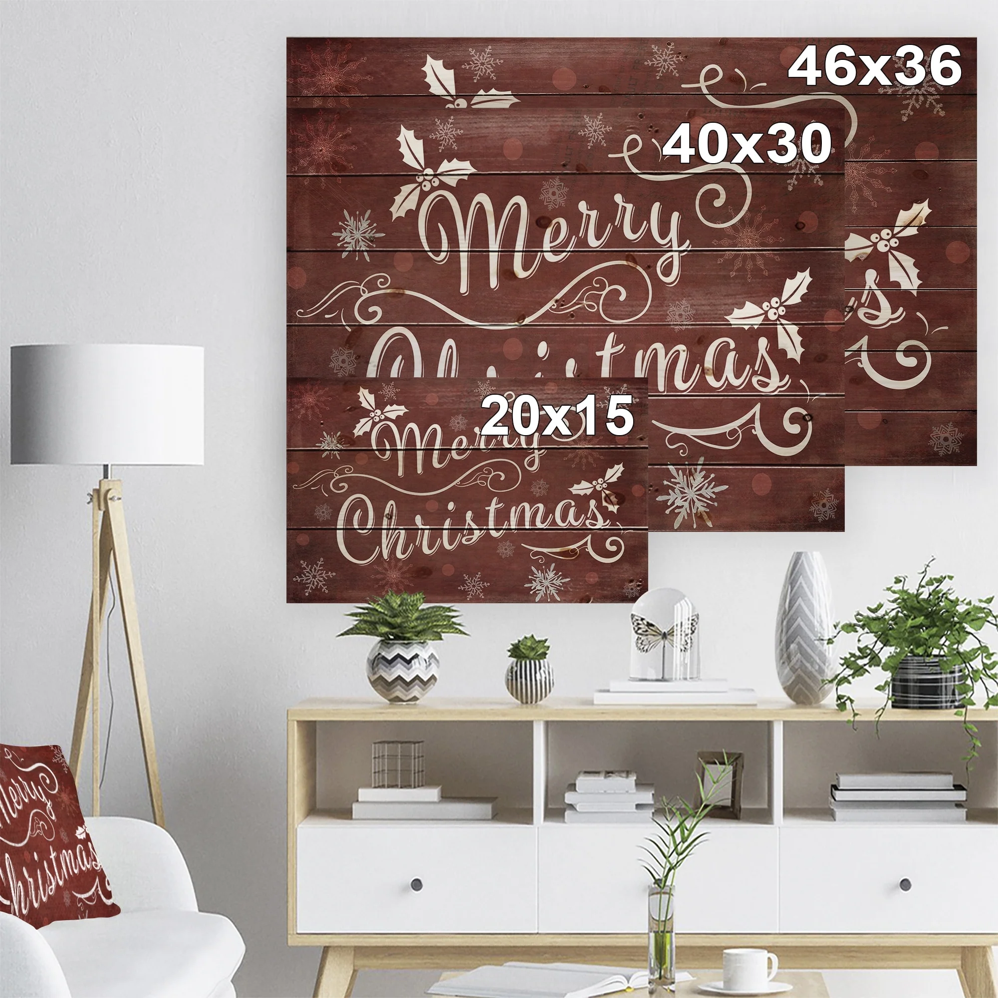 Add a festive touch to your home or office decor with this 'Merry Christmas Season Greetings on Red' Print on Natural Pine Wood. This modern wood wall art features a traditional Christmas theme, making it a perfect addition to any space during the holiday season. Using high-quality 6 Color Canon UV Ink, each piece incorporates fine design, including visible wood grain and sleek finished edges. Handmade in Canada on natural pine wood, each piece is truly unique. Available in three sizes, this wood wall art is a wonderful choice for both traditional and modern spaces.