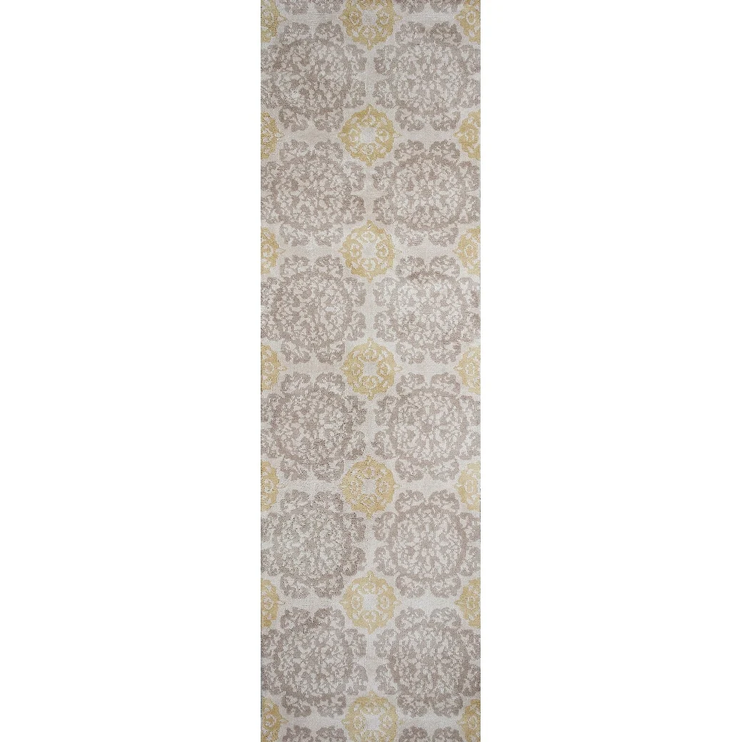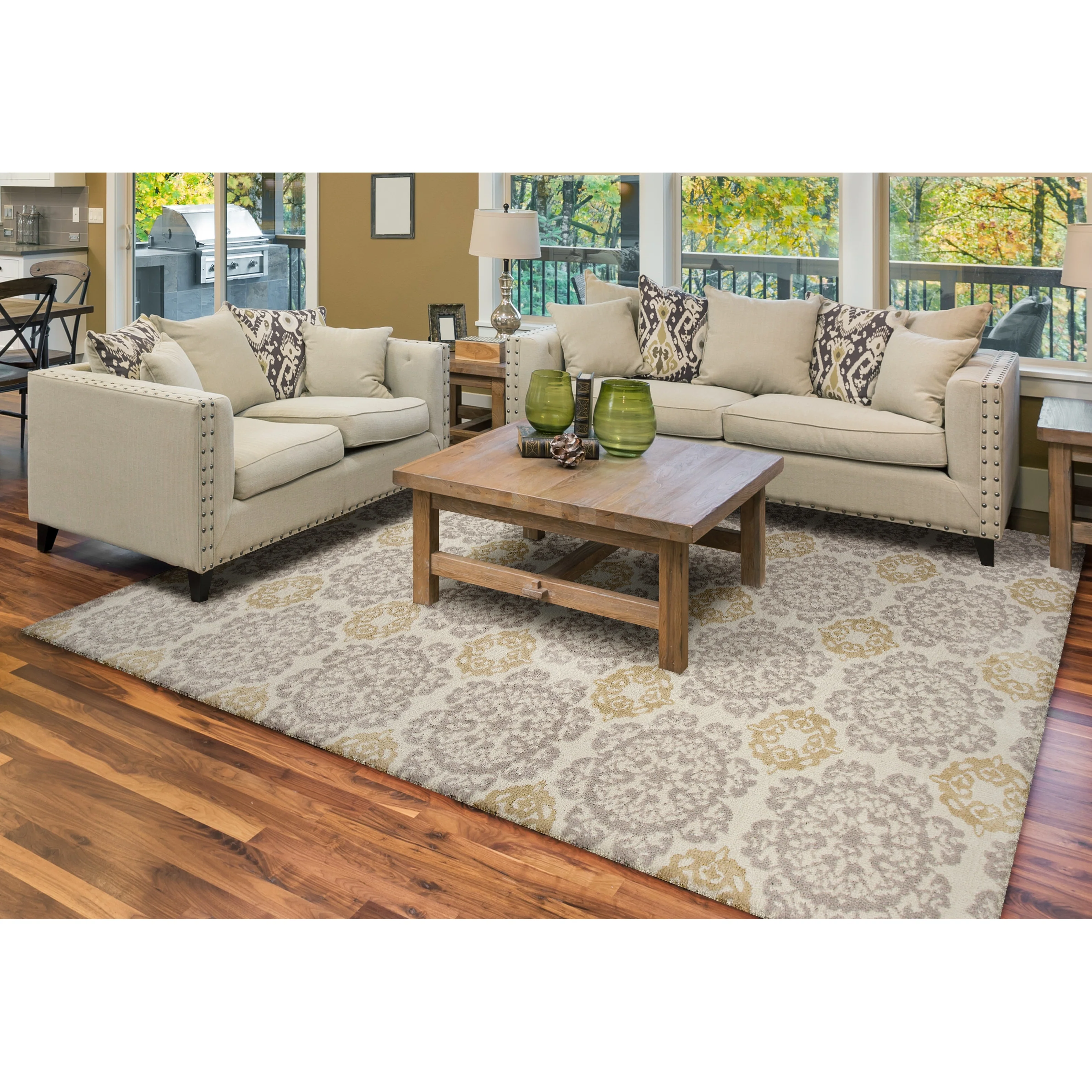 Showcase an elegant design against your den's floor with this rug's silver- and gold-tone medallion motif. This hand-tufted rug provides a soft and comfortable texture, thanks to its cotton and polyester blend. With a durable weave and low-pile profile, this rug works well in areas with moderate traffic, making it great for your family living space.