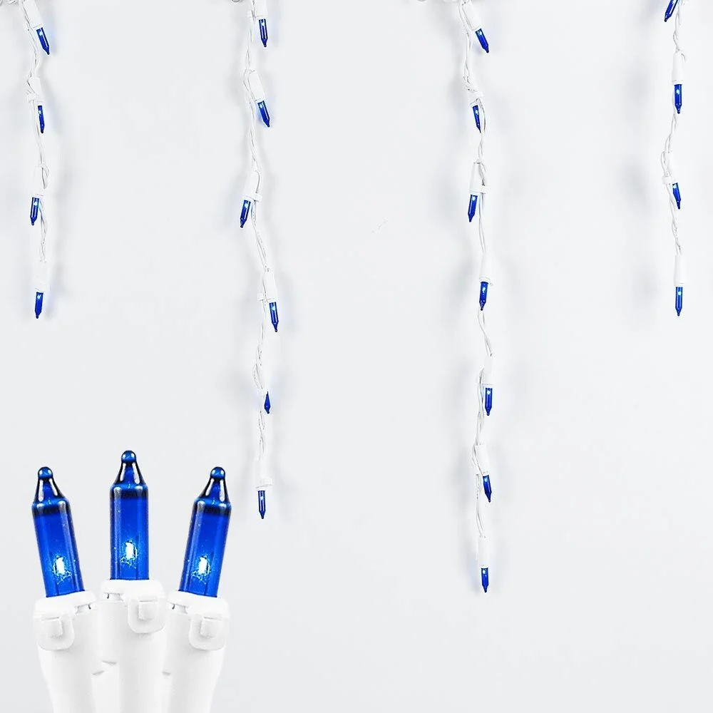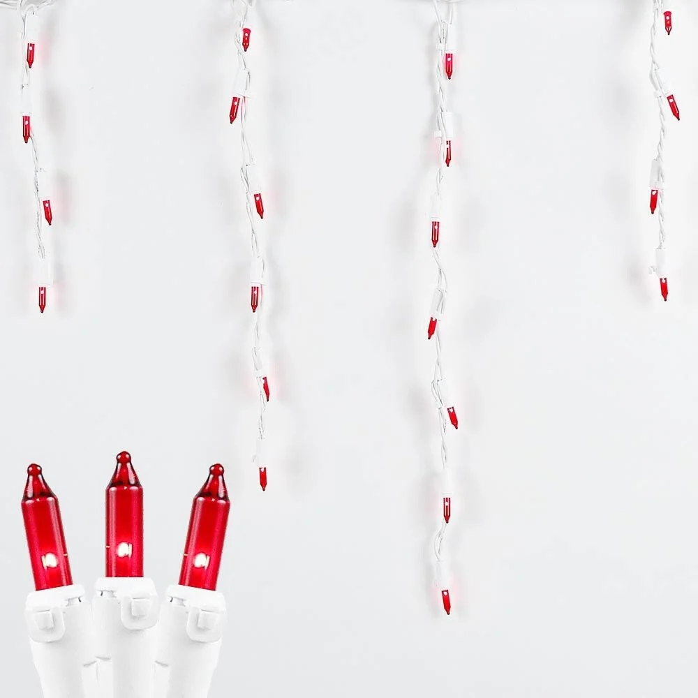 Commercial Grade Medium Drop White Wire Icicle Lights create perfect lines of winter bliss for any residence, commercial building or municipality. Each set of 9' long White wire has 18 medium drops ranging from 9' to 15' with a total of 100 commercial grade icicle lights. We have designed our icicle lights so that each light is attached to the wire pointing down, which ensures a hassle-free, straight drop that looks spectacular. Connect up to 5 strings for a total running length of 45'. We include 3 replacement lamps with each string and encourage you to buy our commercial grade Icicle Light Clips for quick and easy installation. UL listed for indoor or outdoor use.