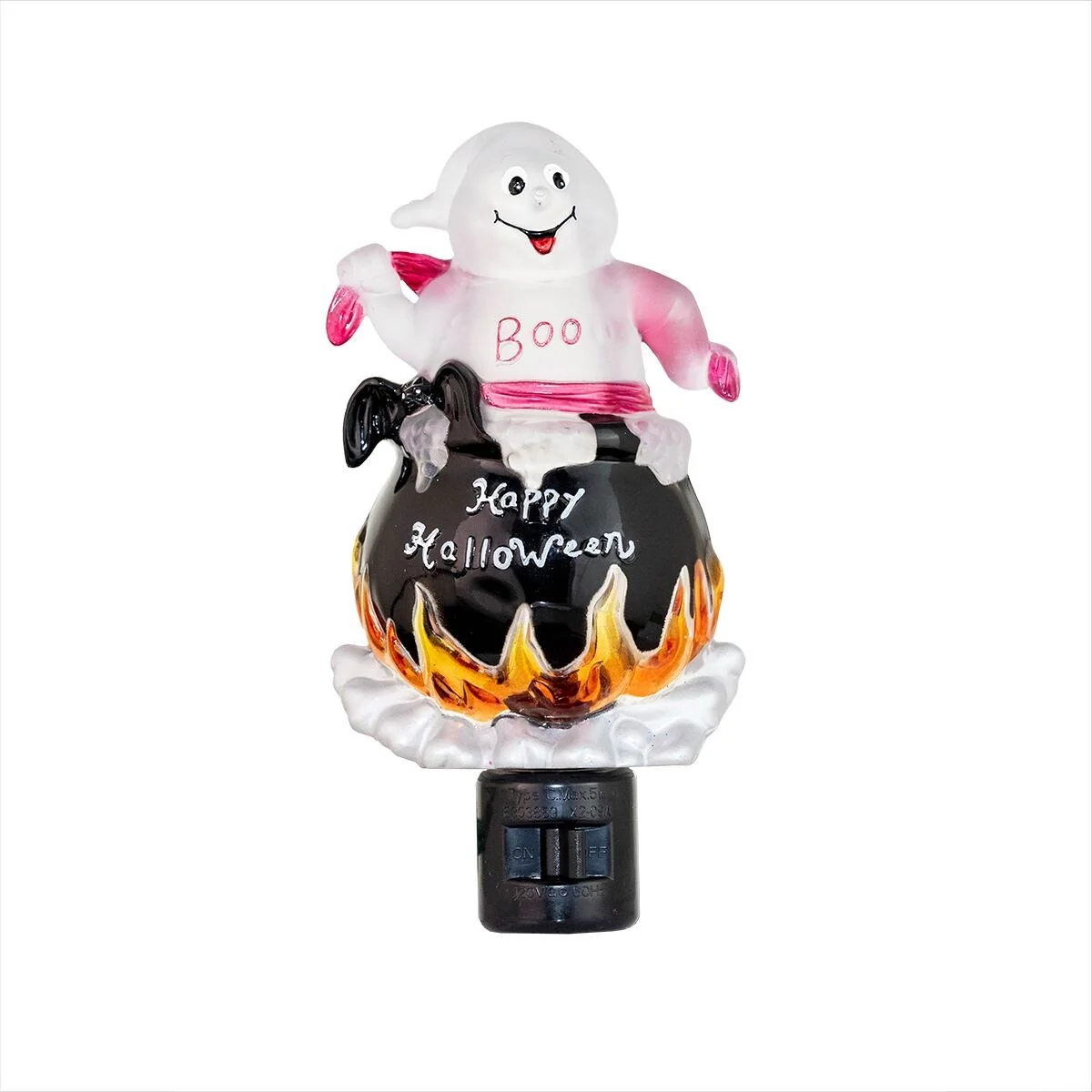 Novelty Lights LED Ghost in Gauldron Halloween Night Light with Swivel Plug