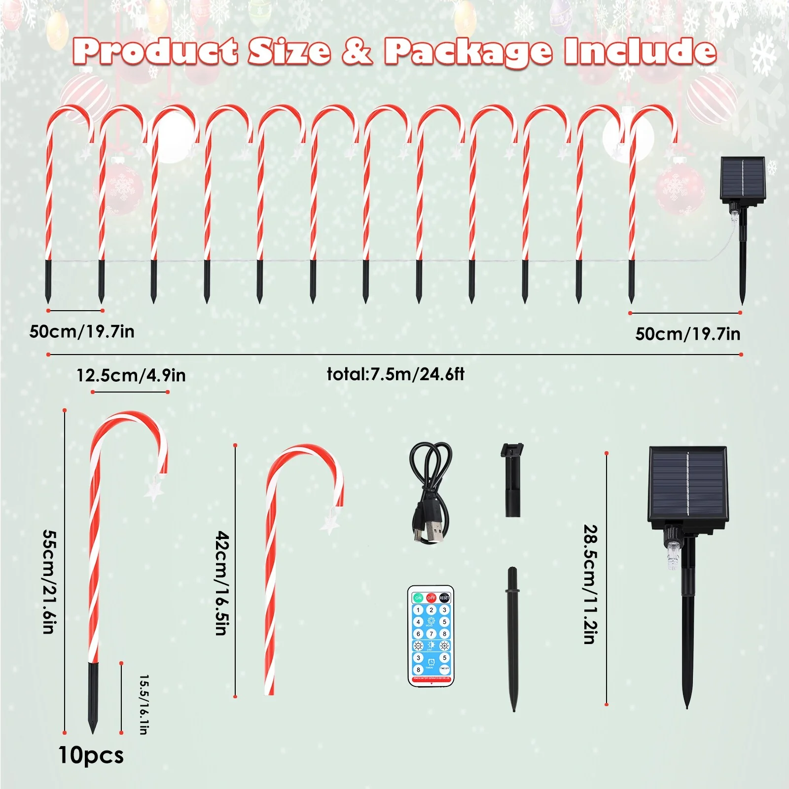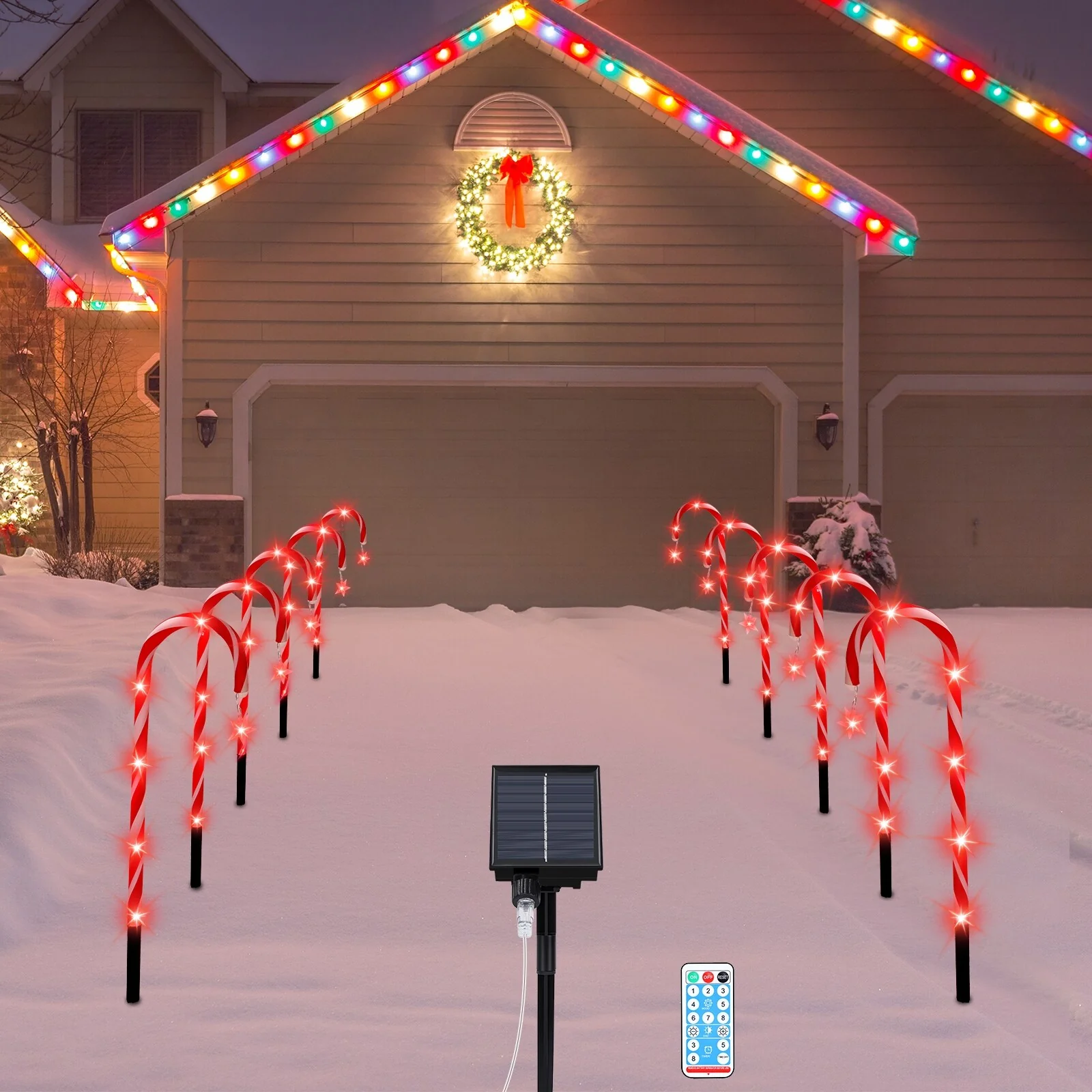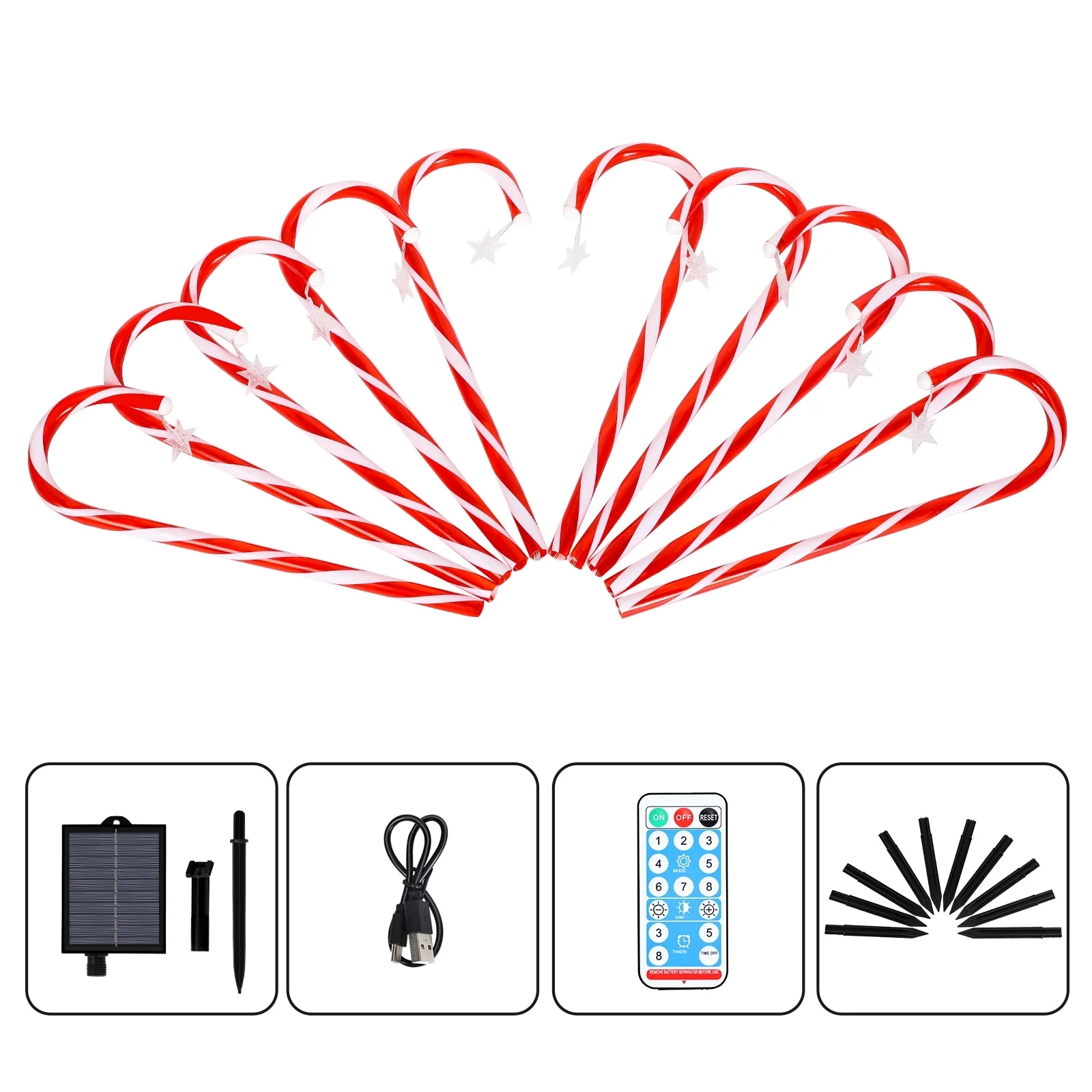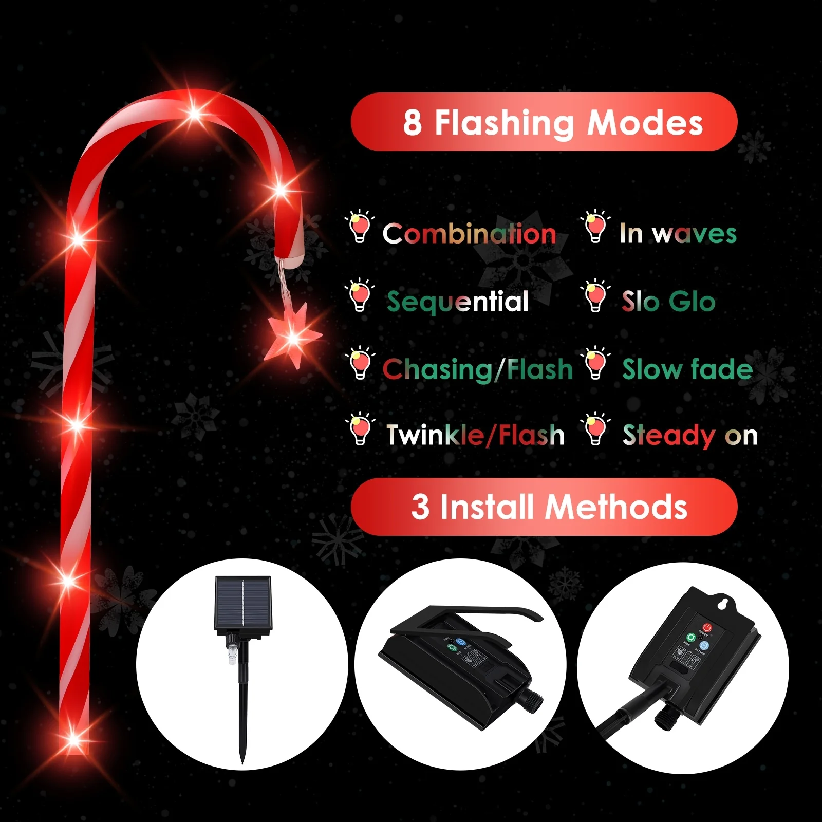 【Solar Powered Pathway Lights】The candy cane stake lights are solar powered! It will work automatically 6-8 hours after fully charging the whole day. We use higher quality solar panels now, which last longer.