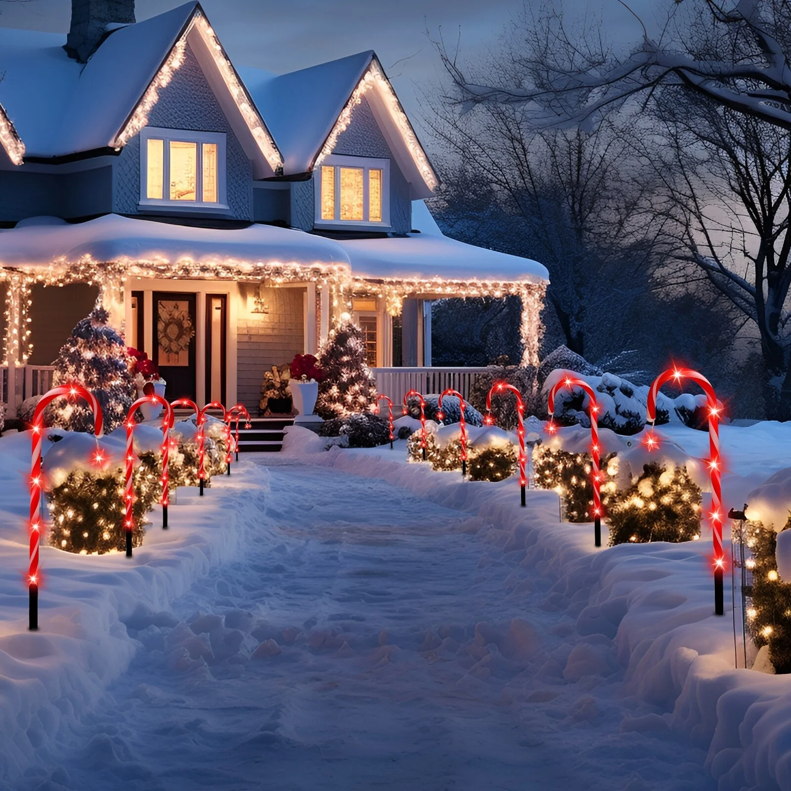 【Great Decorations】Our candy cane lights are great outdoor decorations. They are suitable for sidewalks, driveways, lawns, landscape as well as gardens, yards, or Christmas trees, bring a joyful Christmas atmosphere.