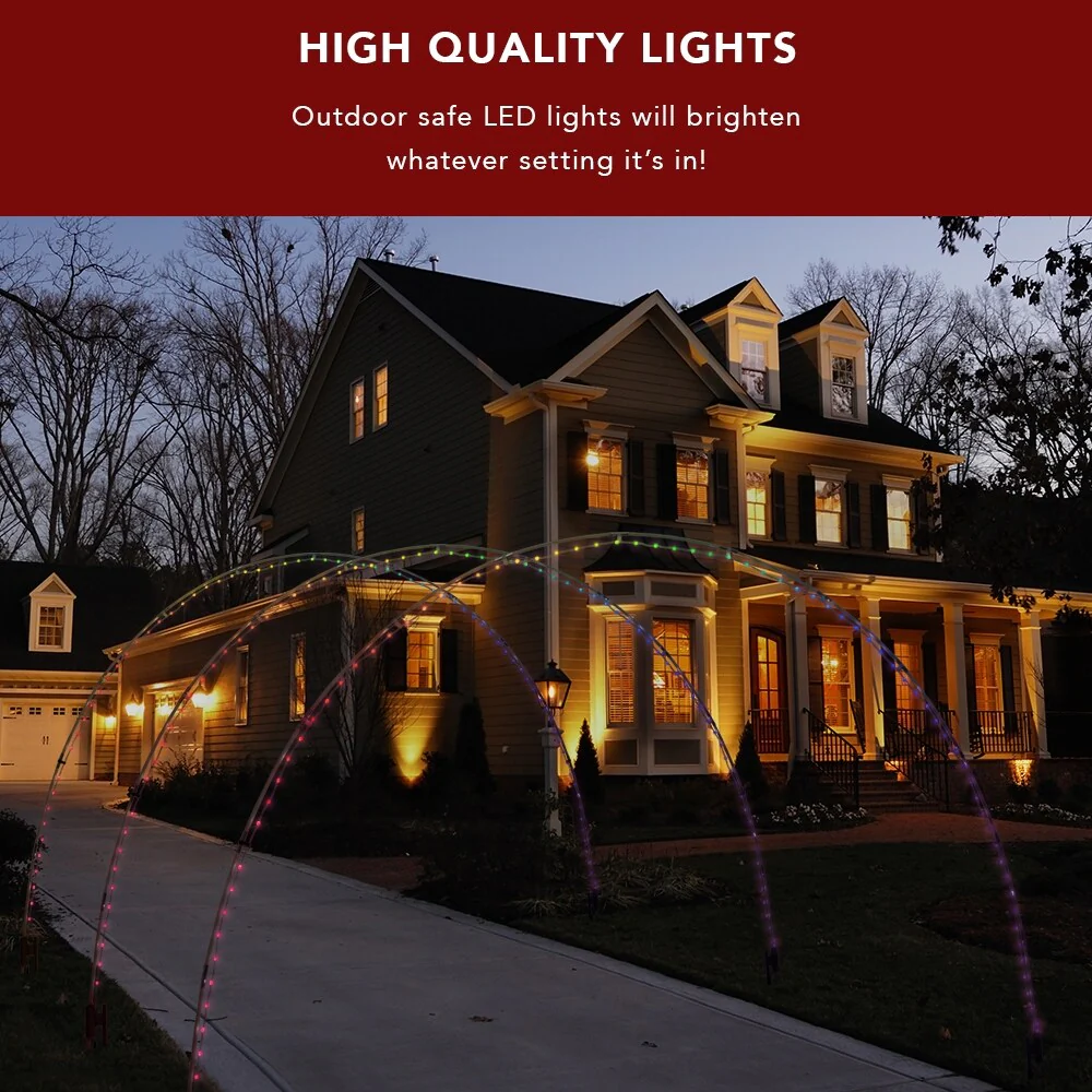 Stephan Roberts 3 Pack Light Arch brings a bright light to your home, special occasion, and so much more. This these outdoor Christmas decoration offers three total arches that include secure stakes, flexible arch poles, light clips, LED lights that can be used in so many different ways. Place this arch in front of your home during the holiday season to add to your Christmas decor. Use it for weddings over a pathway to make your moments that much more special! Use it as a backdrop for special occasions like prom, birthdays, Diwali and parties for a more illuminating experience! You can even use this arch for everyday use to brighten up your driveway or yard! This light arch is extremely easy to set up and use and is a perfect additional to your x-mas decorations. No tools are needed for assembly, and it is simple to break down and store away with it's included storage bag when not needed. This light arch also can be reused again and again and is definitely not a one-off product. Prioritizing durability and quality, this arch is built to last.