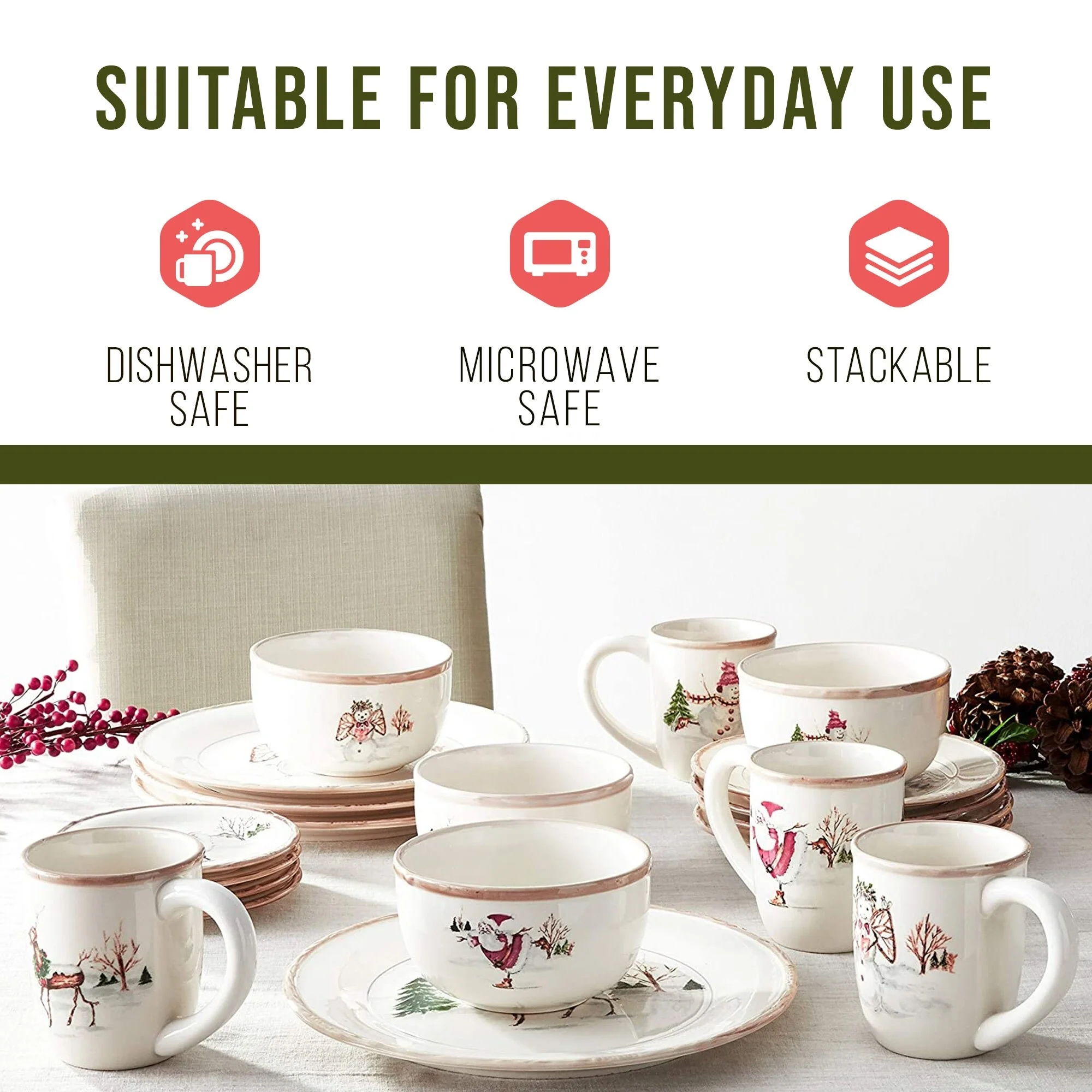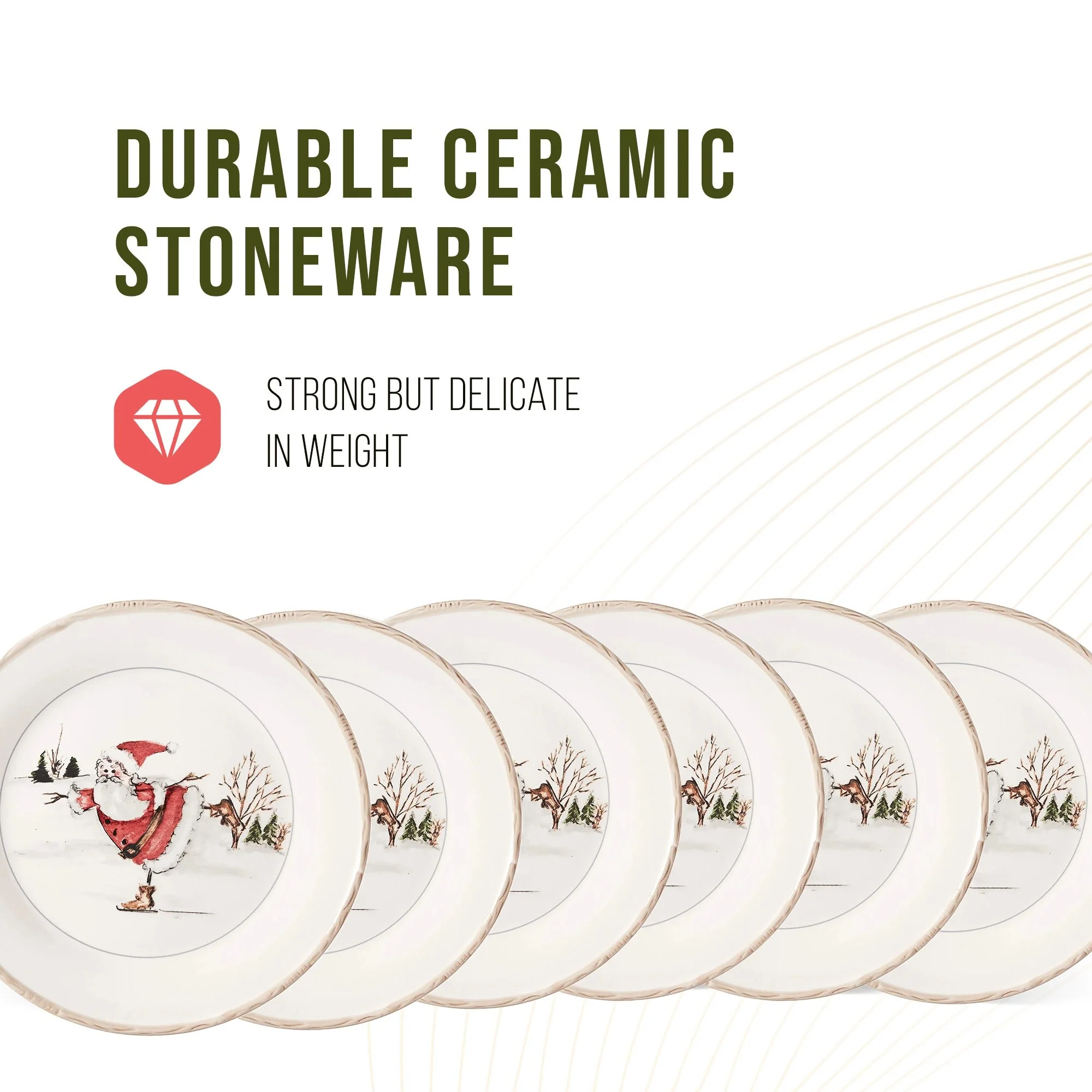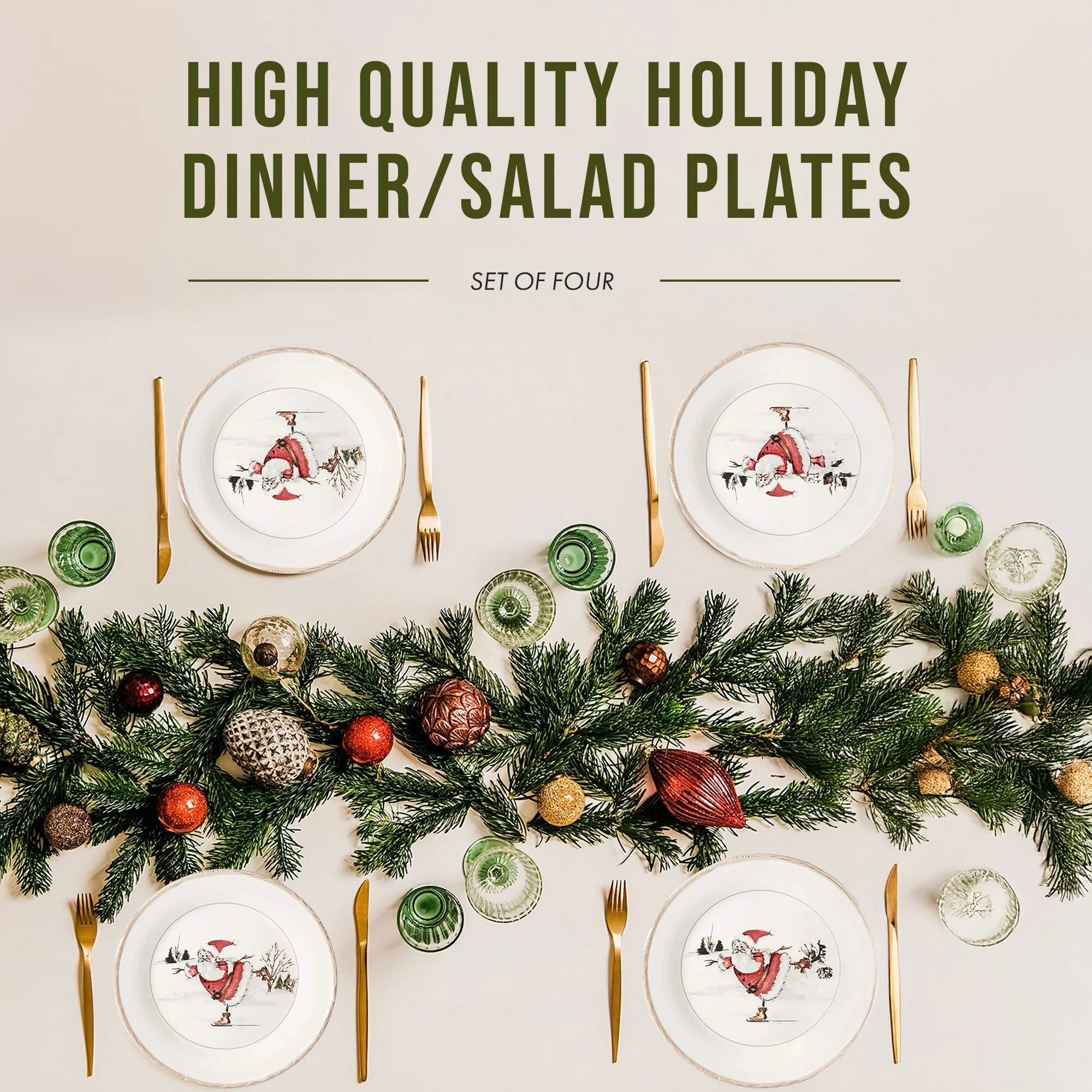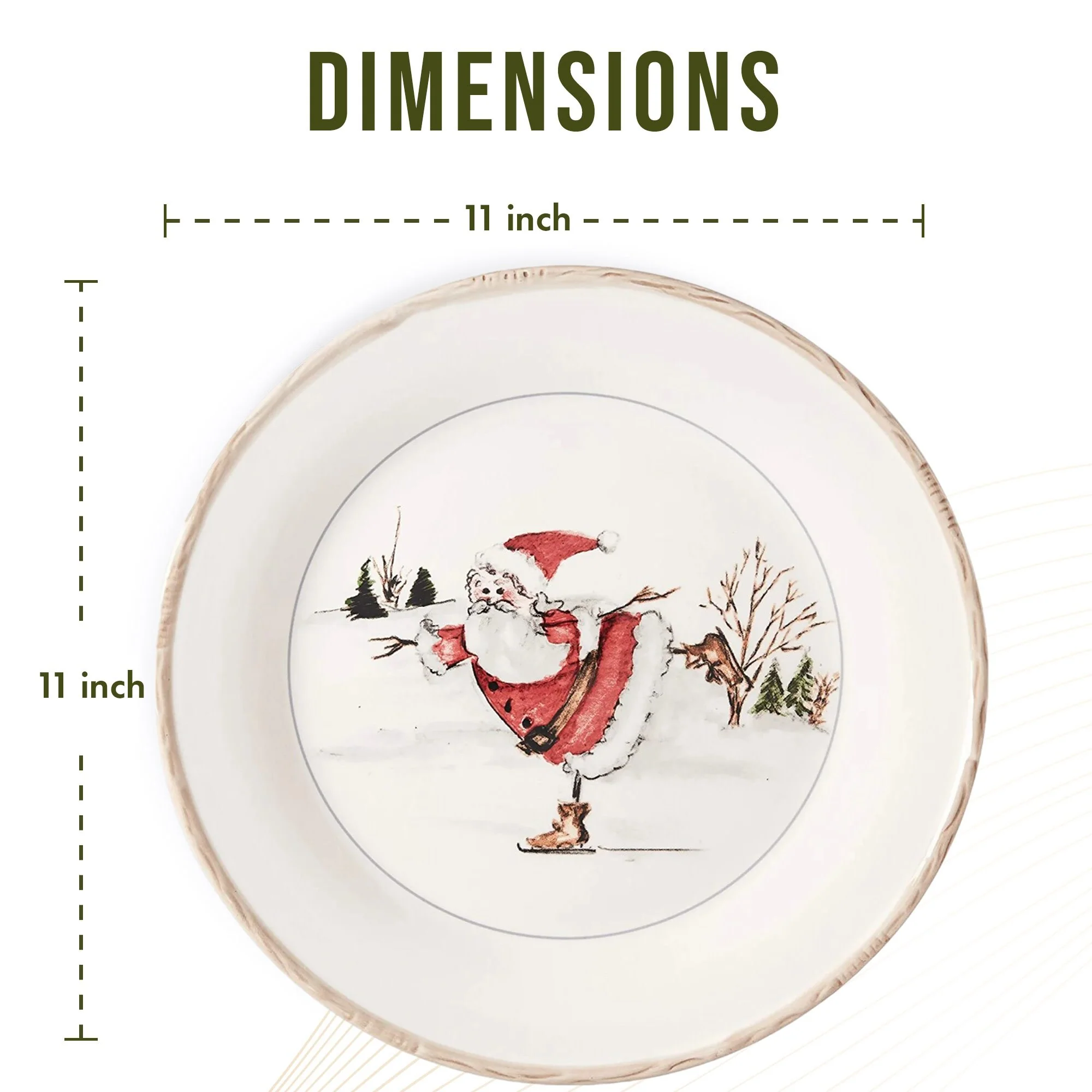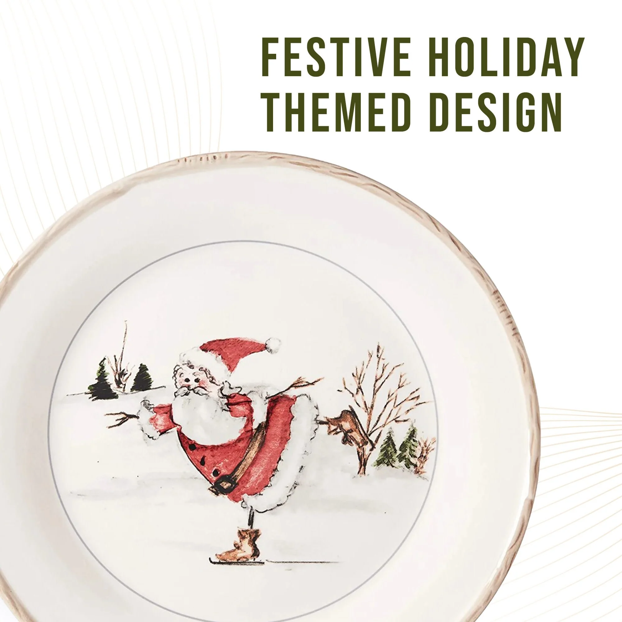 - Holiday-Themed Design: Add festive cheer to your table with this set of Christmas twig holiday dinner plates. Featuring a charming image of Santa skating through a snowy forest, these plates are perfect for adding holiday spirit to your gatherings.