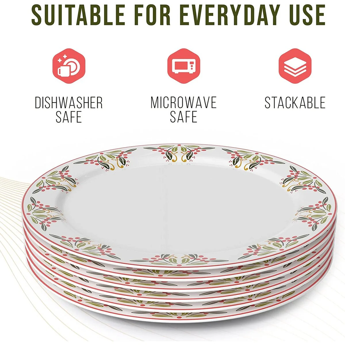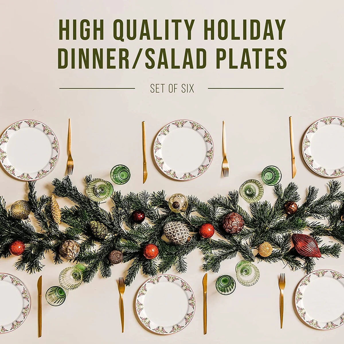 - HOLIDAY THEMED DESIGN: Spice up your Christmas table with these white, red, and green holiday plates with a mistletoe and holly berry design that's perfect for this holiday season.