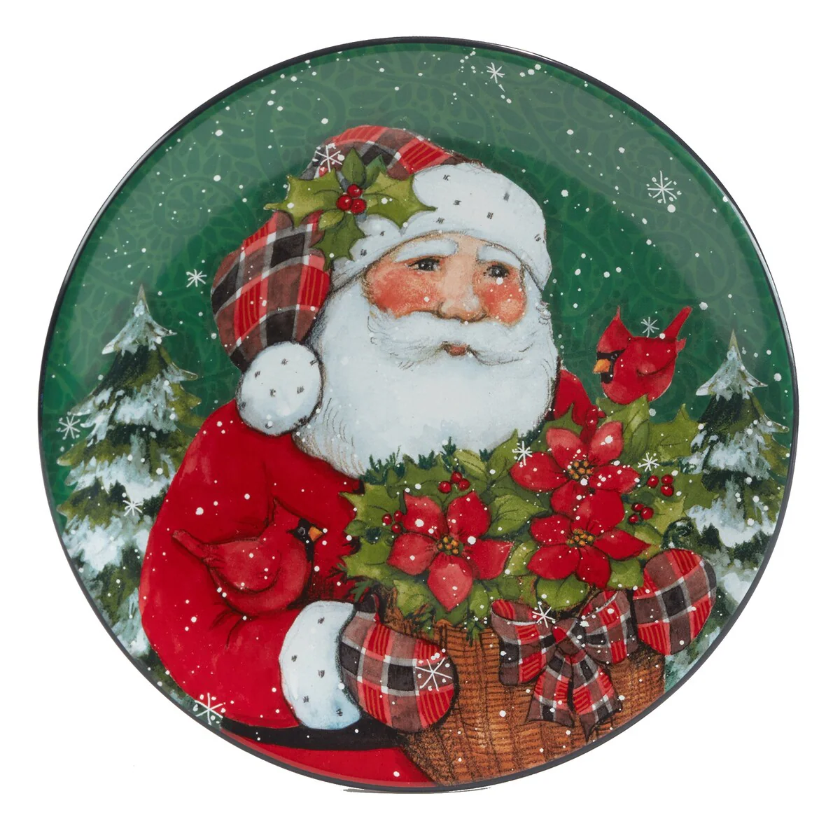 - Includes: Christmas Lodge Santa 9 inches Salad/Dessert Plates, Set of 4