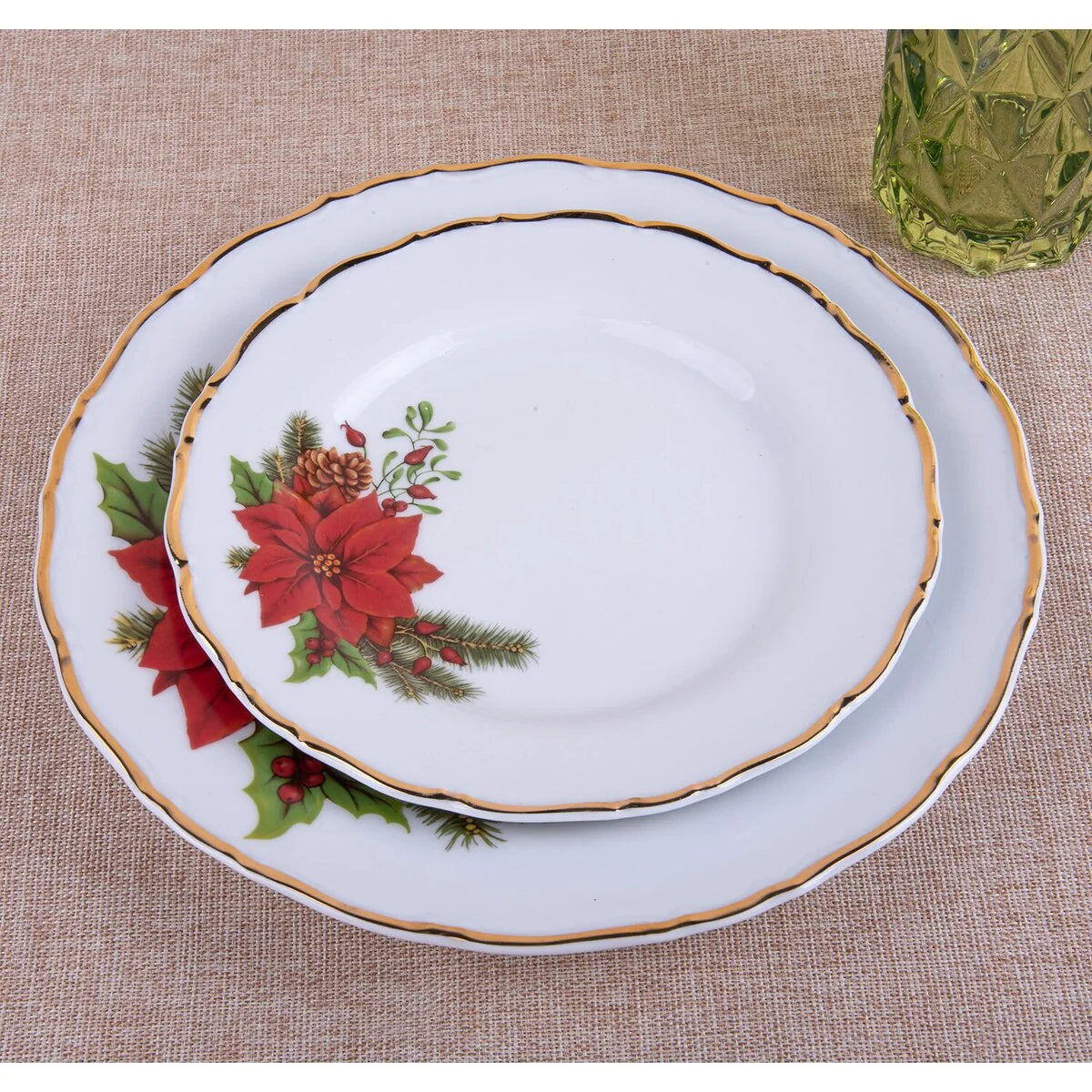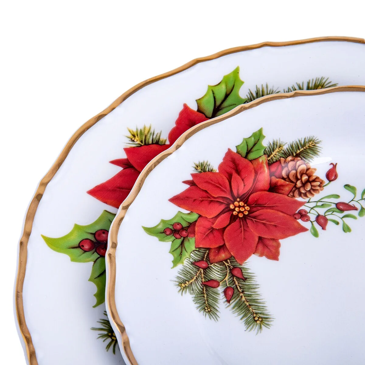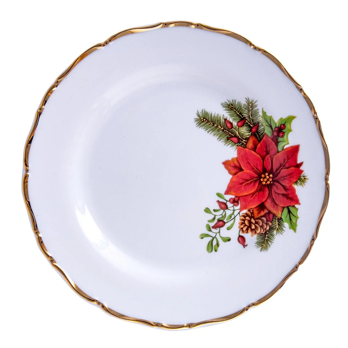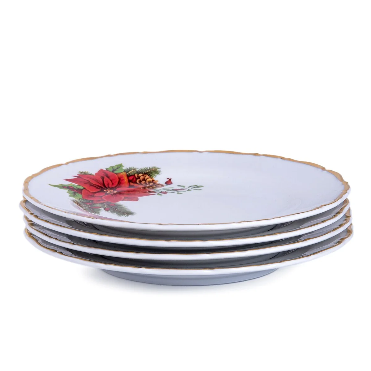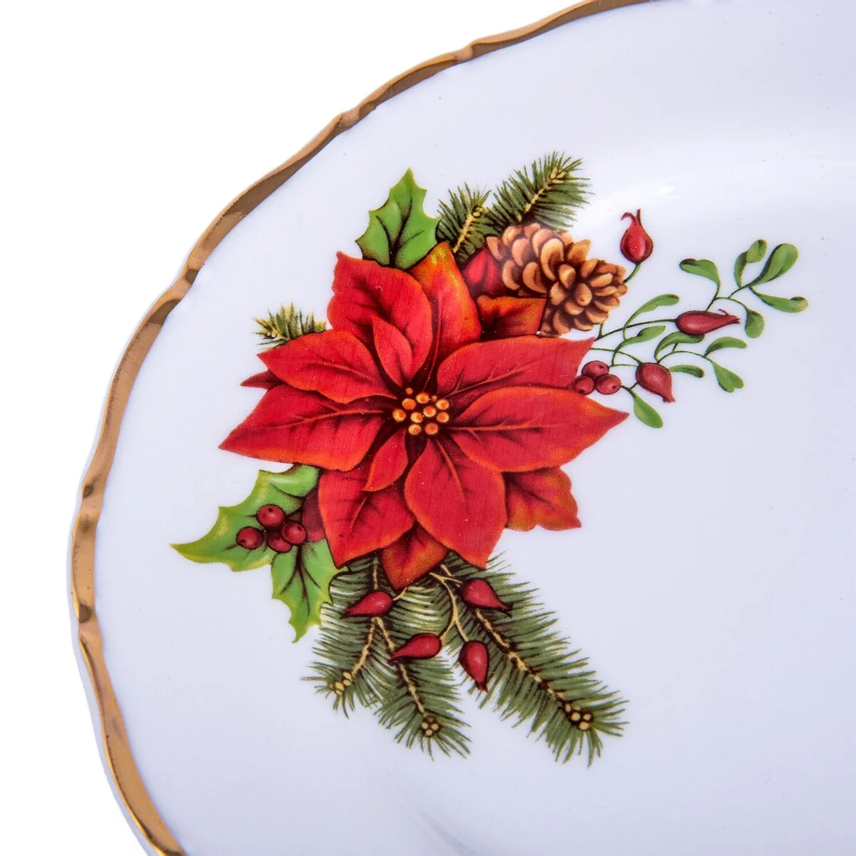 The Red Poinsettia Bohemian Porcelain Dessert Plates Set of 4 is designed for presenting and serving desserts. It has a convenient shape and will bring style and lightness into your kitchen, as well as highlight your wonderful culinary creations!