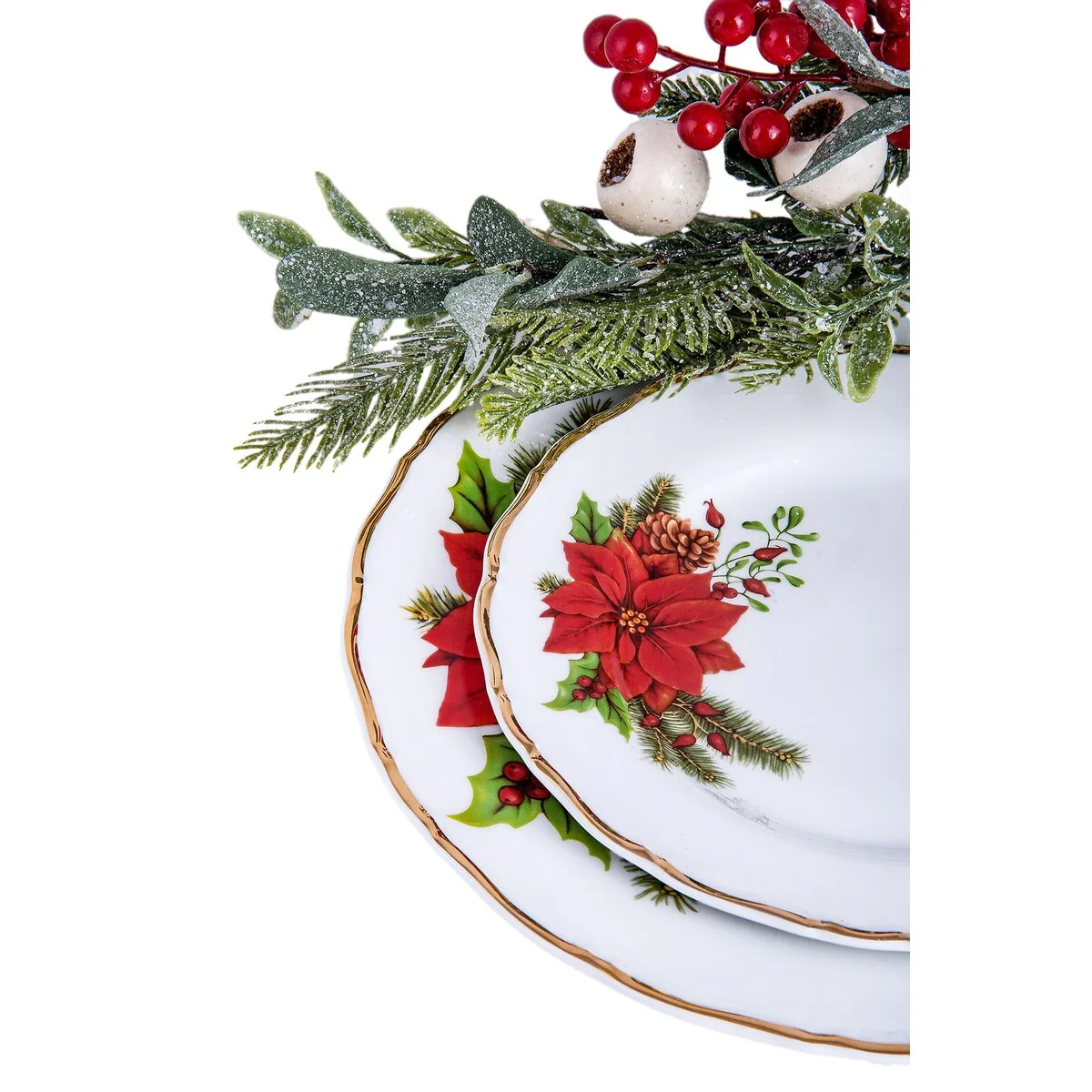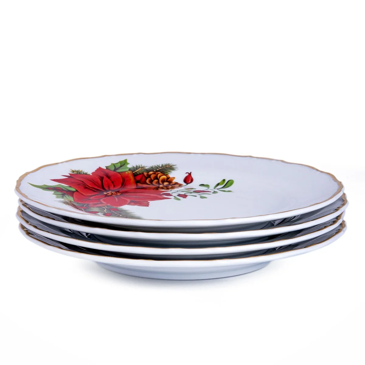 The Red Poinsettia Bohemian Porcelain Dinner Plates Set of 4 is designed for presenting and serving main course dishes. It has a convenient shape and will bring style and lightness into your kitchen, as well as highlight your wonderful culinary creations!