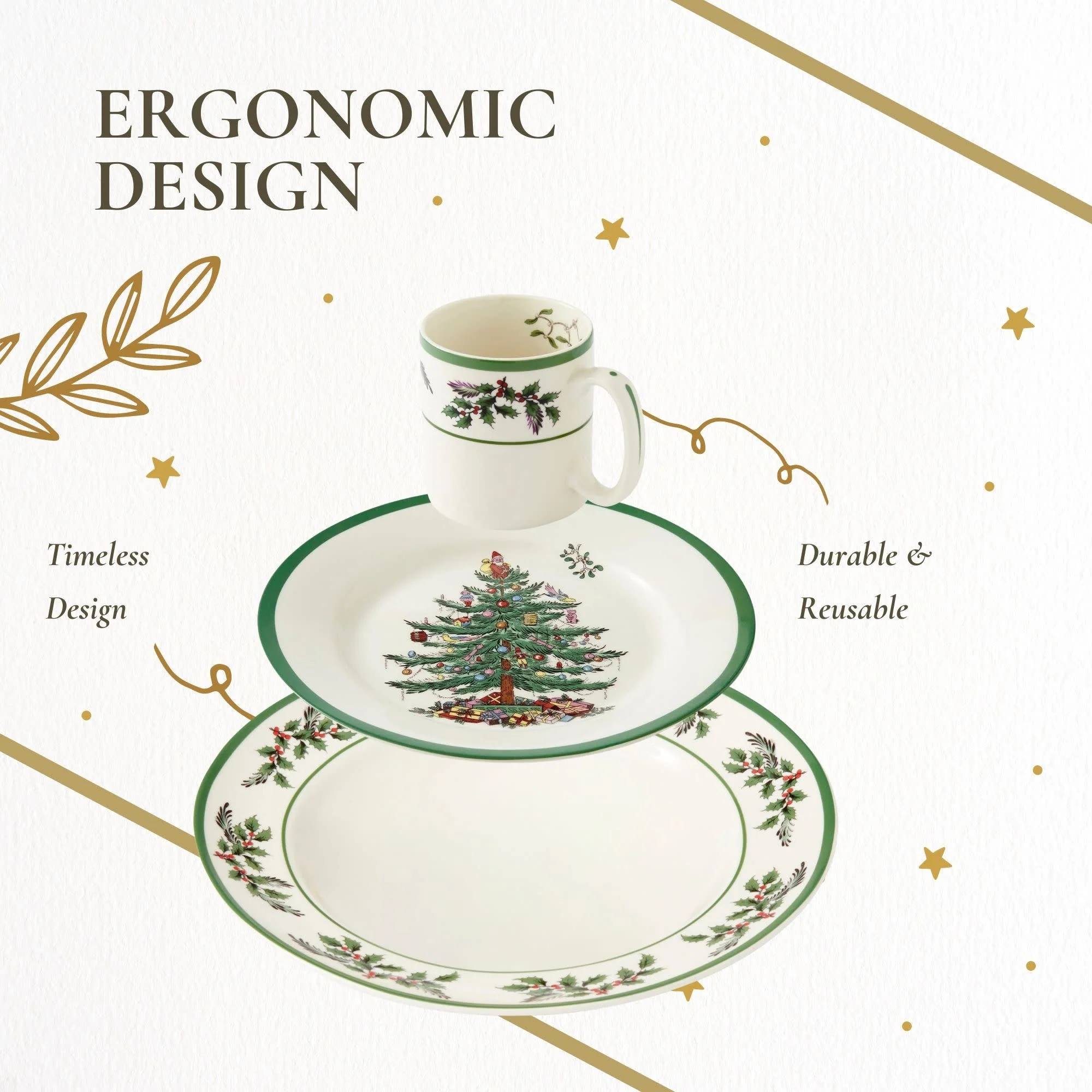 Spode Christmas Tree 12-Piece Dinnerware Set (Service for 4) - Festive Holiday Tableware Collection with Plates and Mugs - Fine Earthenware Christmas Dinnerware - Microwave & Dishwasher Safe - New