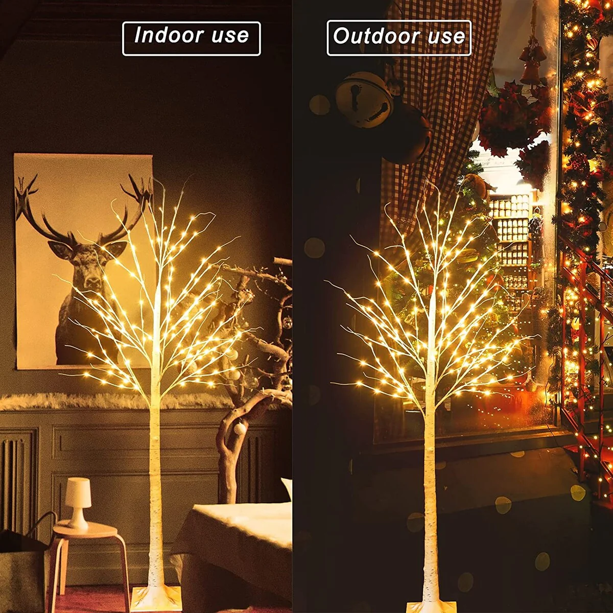 🎄Durable material: Premium white birch tree is different from the cheap one that is only wrapped with white plastic adhesive tape. It is covered with adhesive tape, artificial bark, and hand-painted bark texture which make it the same as real. Crafted with high-quality PVC with waterproof led light, energy-saving, and long life span which up to many years in the good condition.