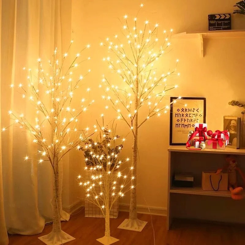 Ready for a brand New Year? Excited for the Christmas holiday? Now it’s time to fill your home with The White Birch Tree Set to enjoy a magical winter moment! Crafted with high quality, durable PVC with stable base of square stand and sturdy trunks, the bendable branch can be customized at any shape. Birch tree is quite beauty, natural birch tree bark texture and soft warm white fairy light looks pretty, decoration to your windows display by adding your favorite mementos or gift cards, bring a warm atmosphere into your family, creating a warm, joyful and romantic atmosphere for you.