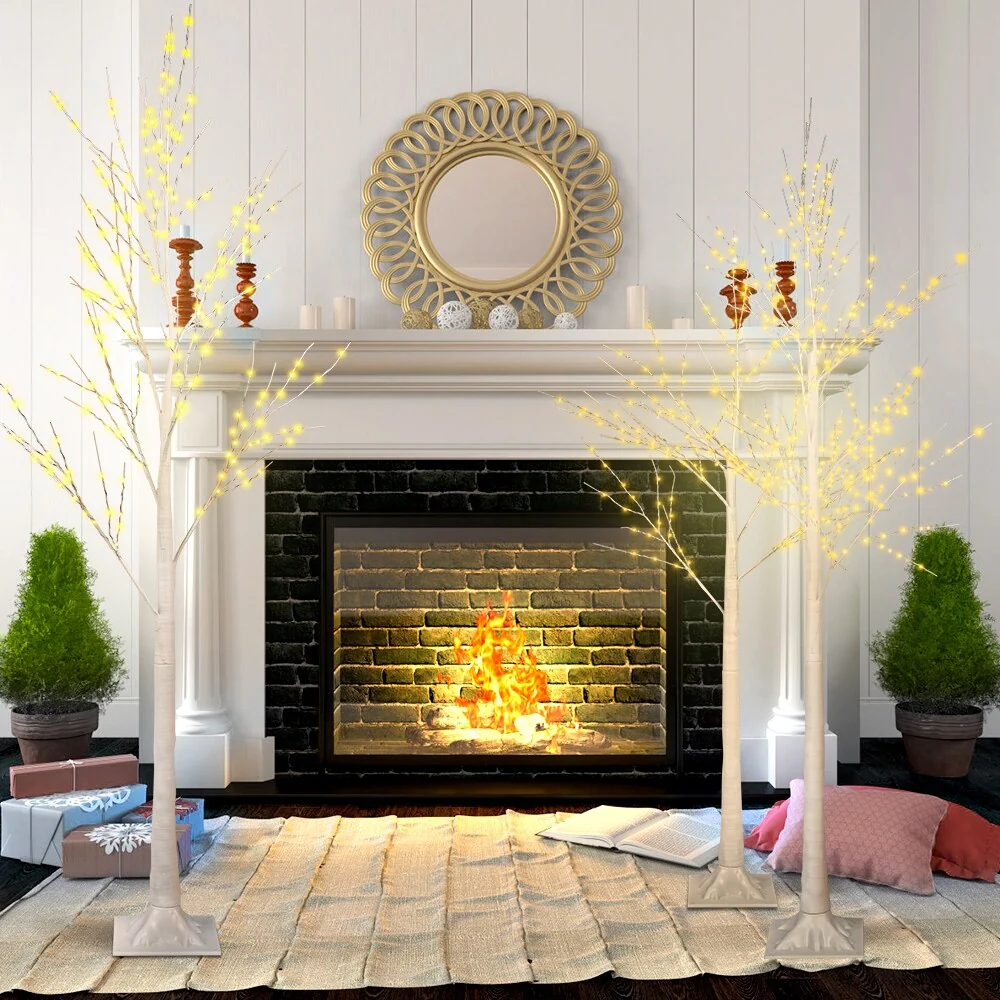 - Set of 3 birch trees: 4FT/5FT/6FT with warm white LED lights