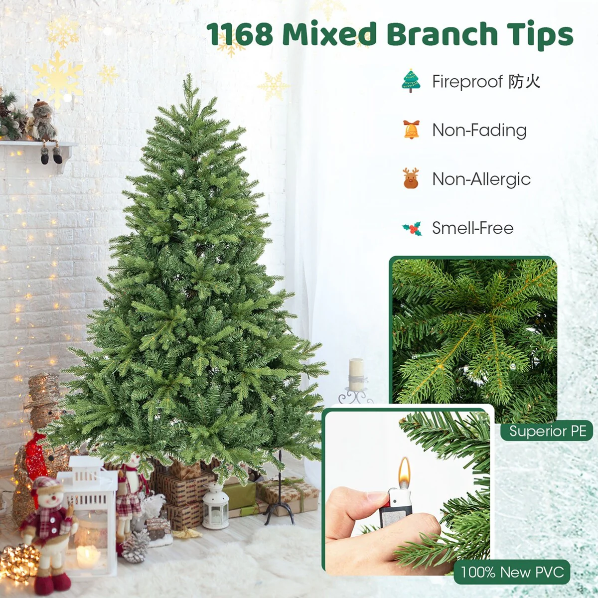 - Superior PE & 100% new PVC make the tree fireproof, non-fading & non-allergic