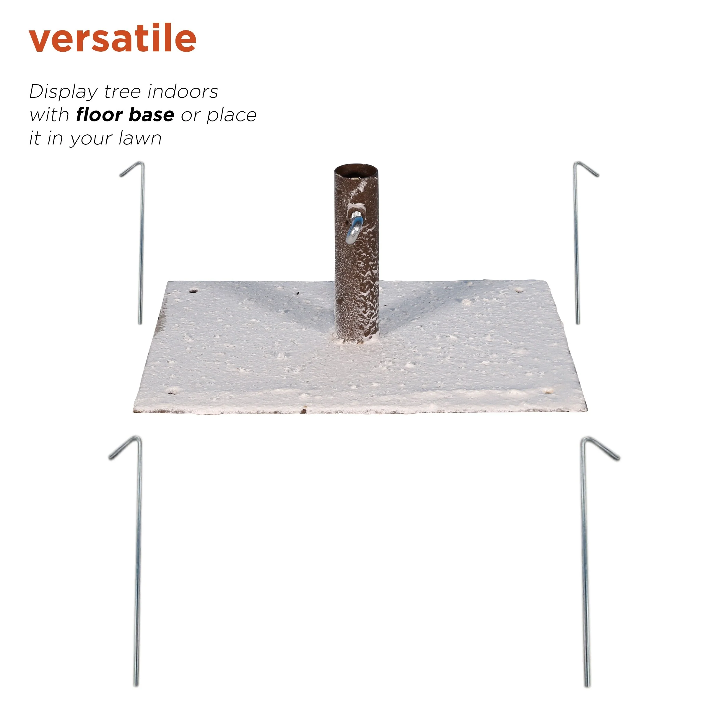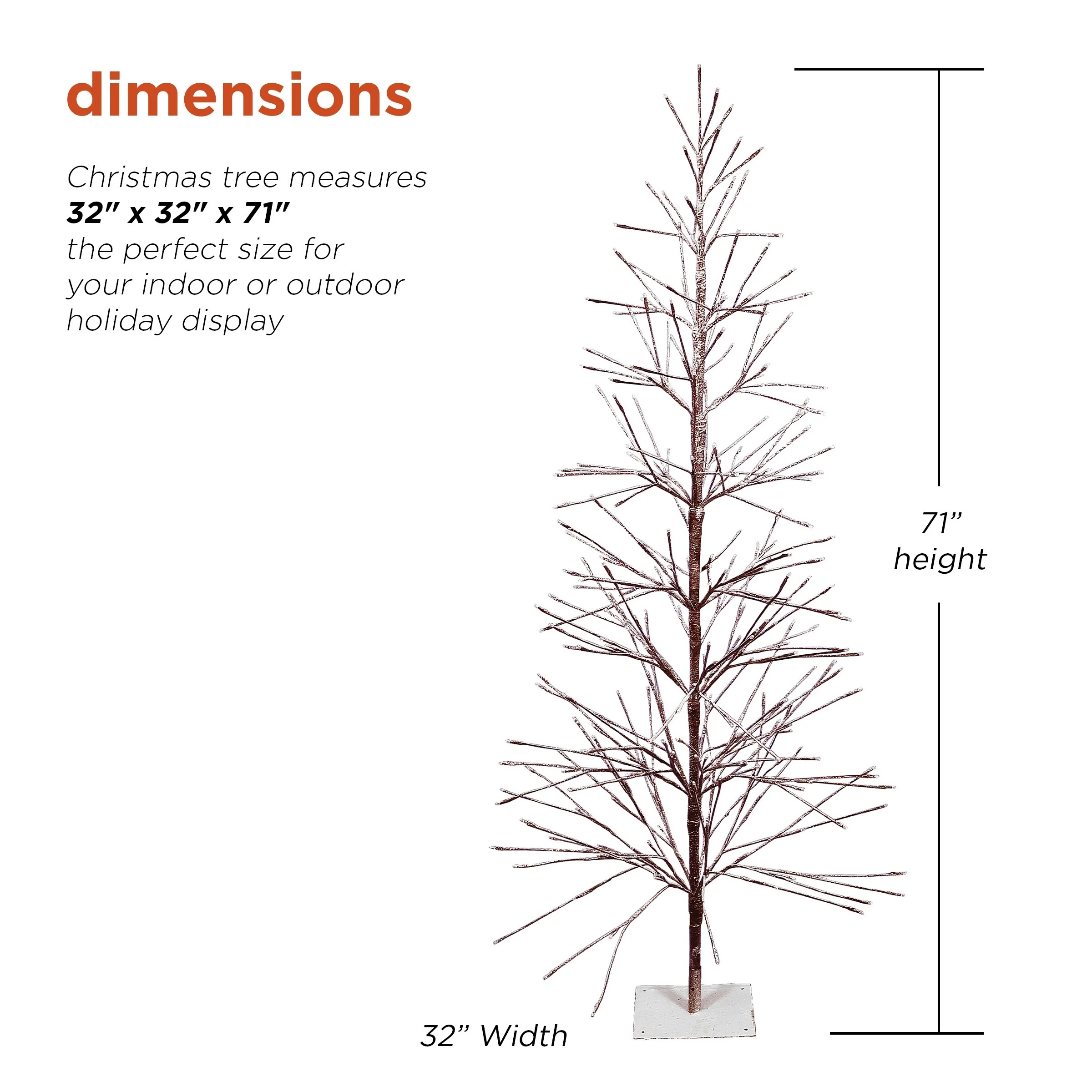 Bring the holiday spirit to your home with Alpine Corporation's 71'H Indoor/Outdoor Artificial Flocked Christmas Tree with White LED Lights in Brown. This beautiful, flocked brown tree is a great alternative to real trees, making it perfect for those who want a festive, decorative tree without the hassle of cleanup or purchasing a new tree every year. The artificial tree is easy to set up and comes with a floor base for indoor use or lawn stakes for outdoor display. Its 296 warm white LED lights ensure a merry atmosphere, creating the perfect addition to your Christmas decorations. The Alpine Corporation Frosty Flocked Brown Christmas Tree meets safety standards with its UL IP44 listed plug-in adapter, making it safe to use indoors or outdoors. Measuring 32'L x 32'W x 71'H, this tree is the perfect size for an impressive and versatile holiday display.