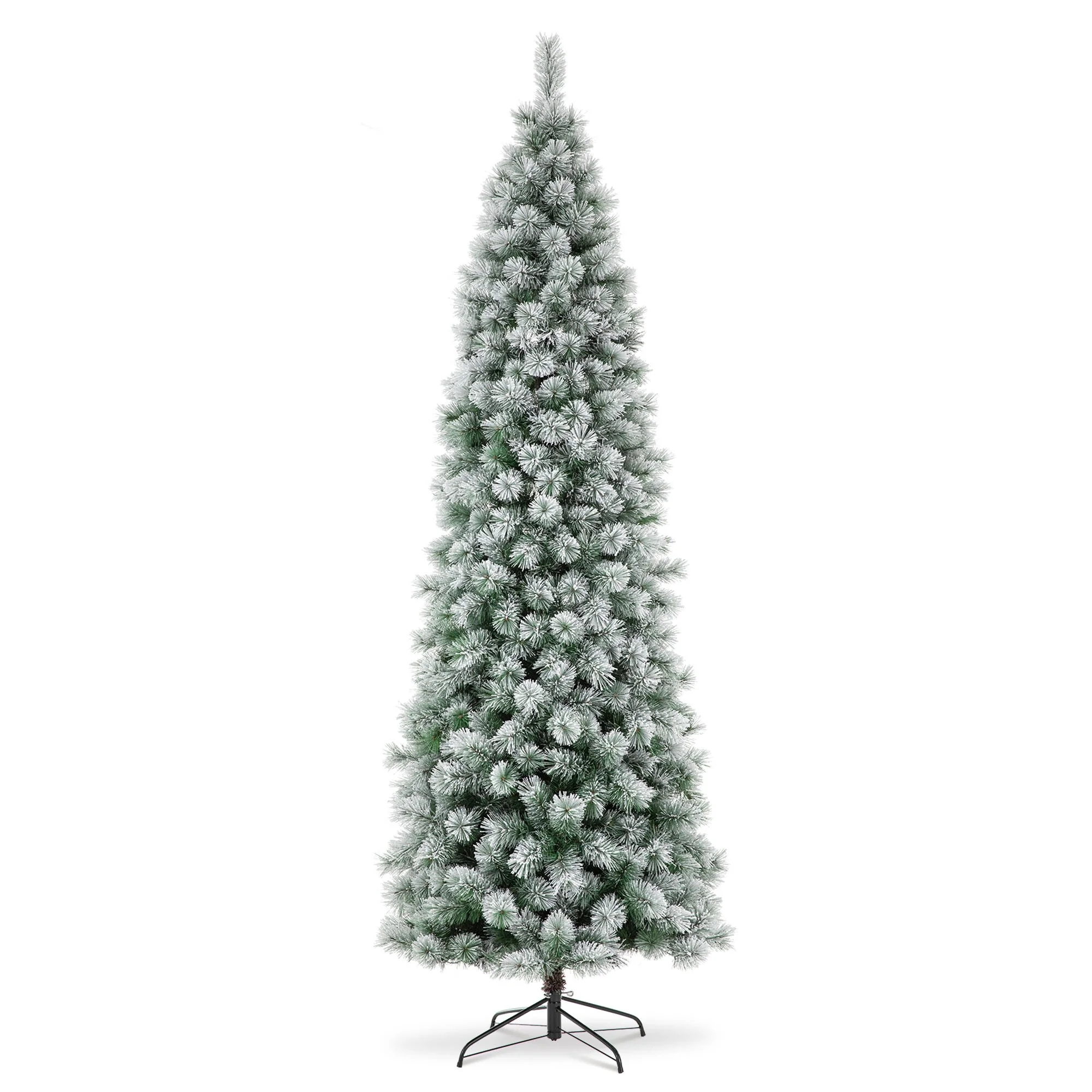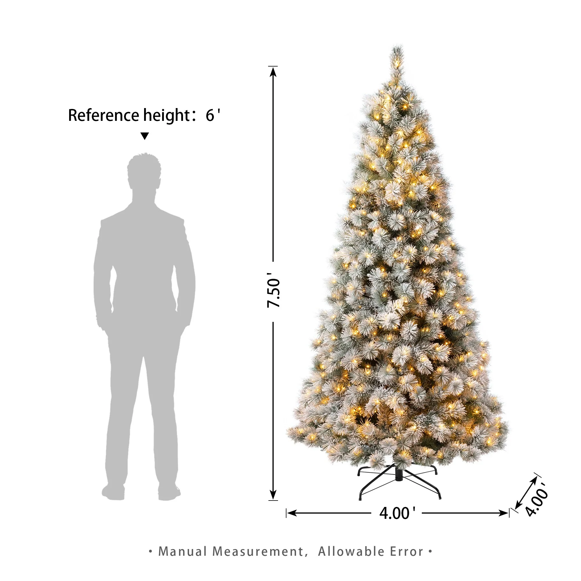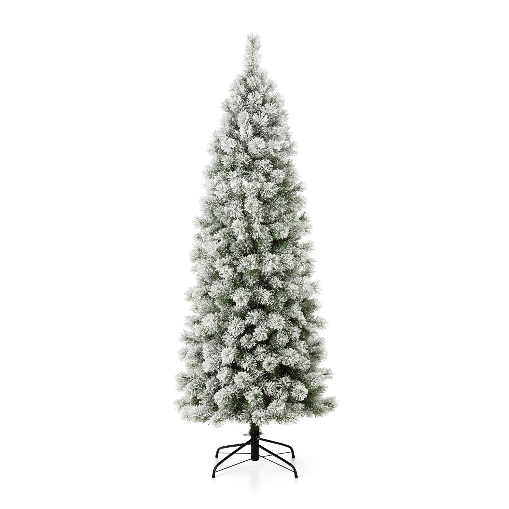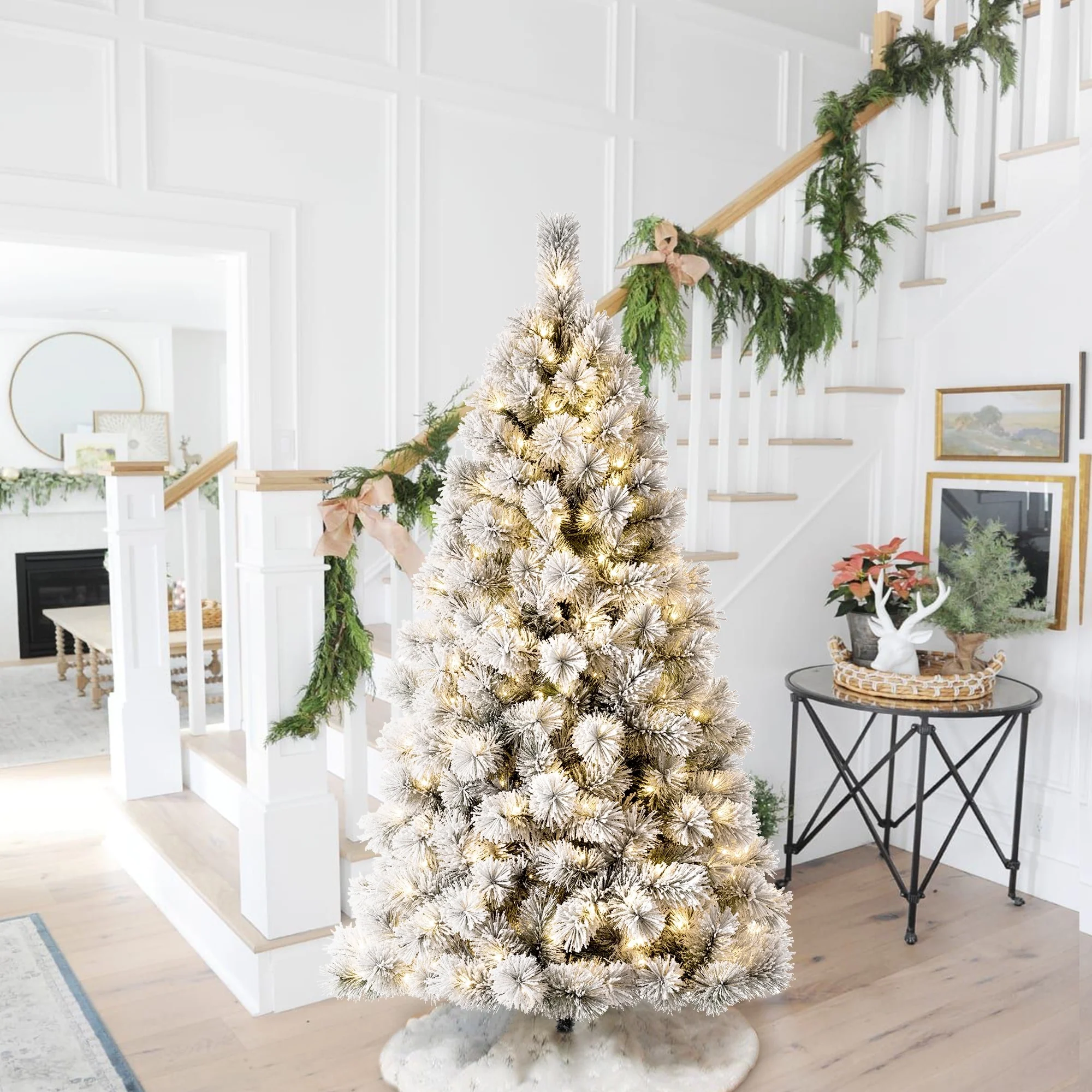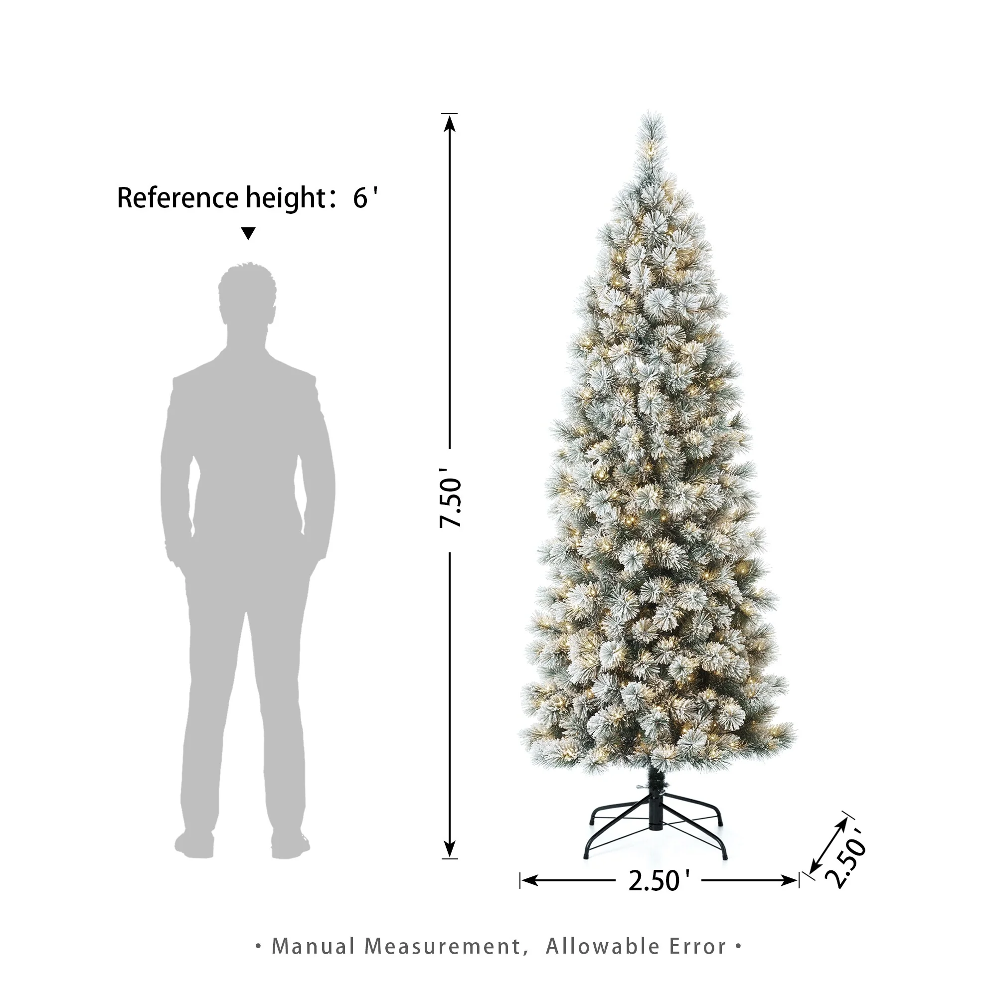 Create a winter wonderland in your home with the Glitzhome Pre-Lit Flocked Pine Artificial Christmas Tree. Made of PVC and metal, this tree has a realistic appearance and an elegant pencil pine style that fits beautifully in both large and small spaces. Choose between warm white or multi-color LED lights, with steady or color-changing settings, to create a festive ambiance. The hinged construction and easy assembly make decorating a breeze.