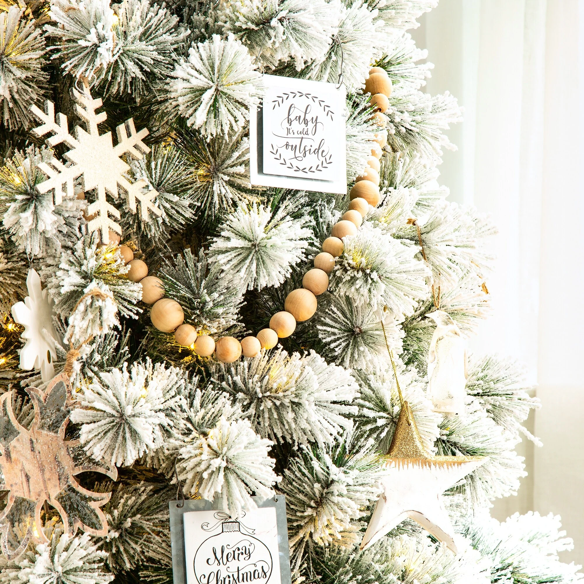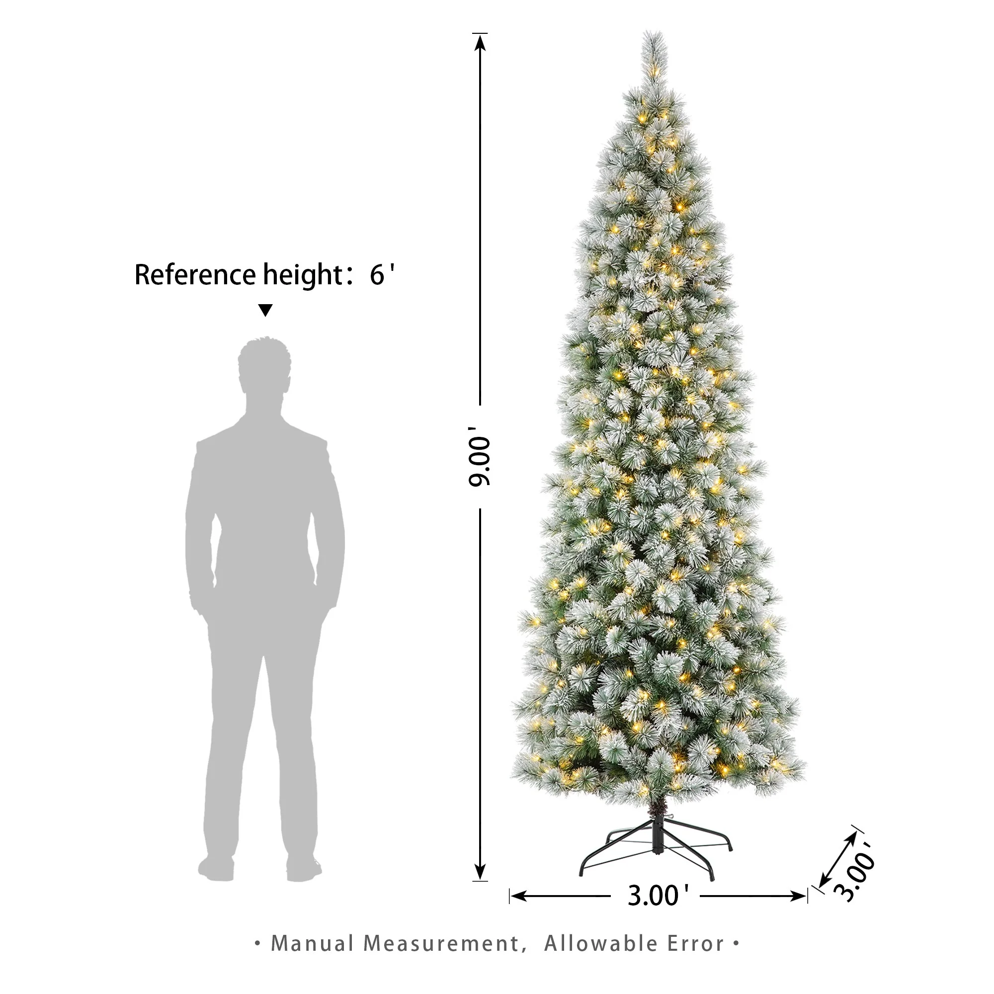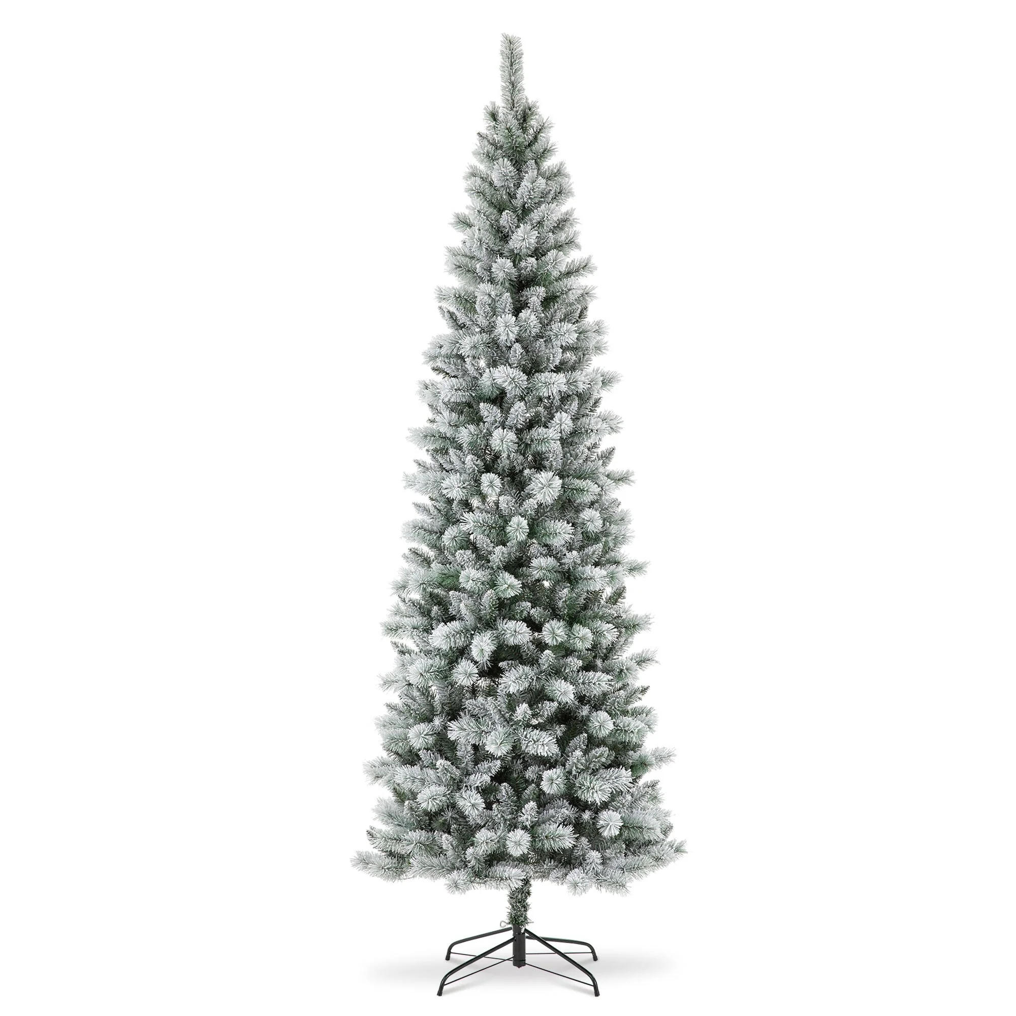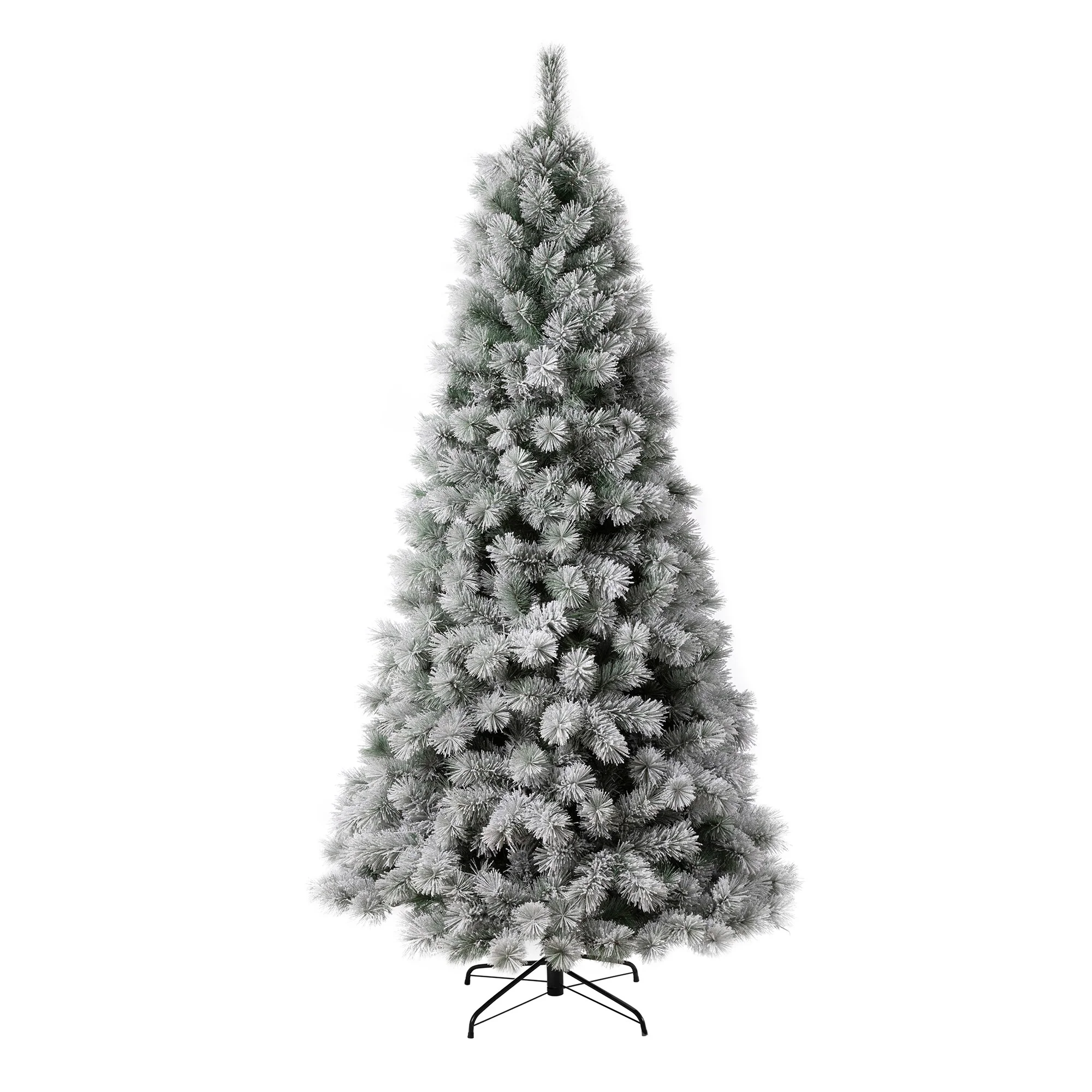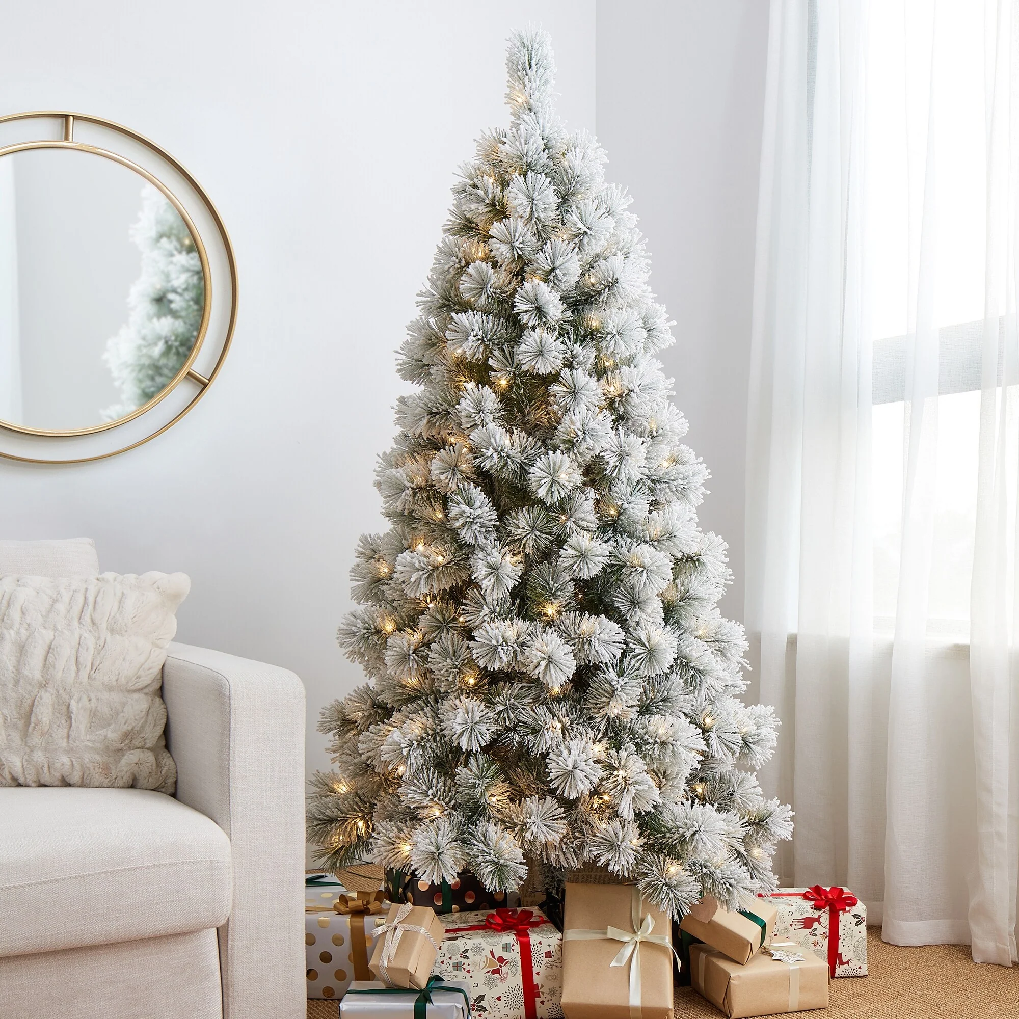 Create a winter wonderland in your home with the Glitzhome Pre-Lit Flocked Pine Artificial Christmas Tree. Made of PVC and metal, this tree has a realistic appearance and an elegant pencil pine style that fits beautifully in both large and small spaces. Choose between warm white or multi-color LED lights, with steady or color-changing settings, to create a festive ambiance. The hinged construction and easy assembly make decorating a breeze.
