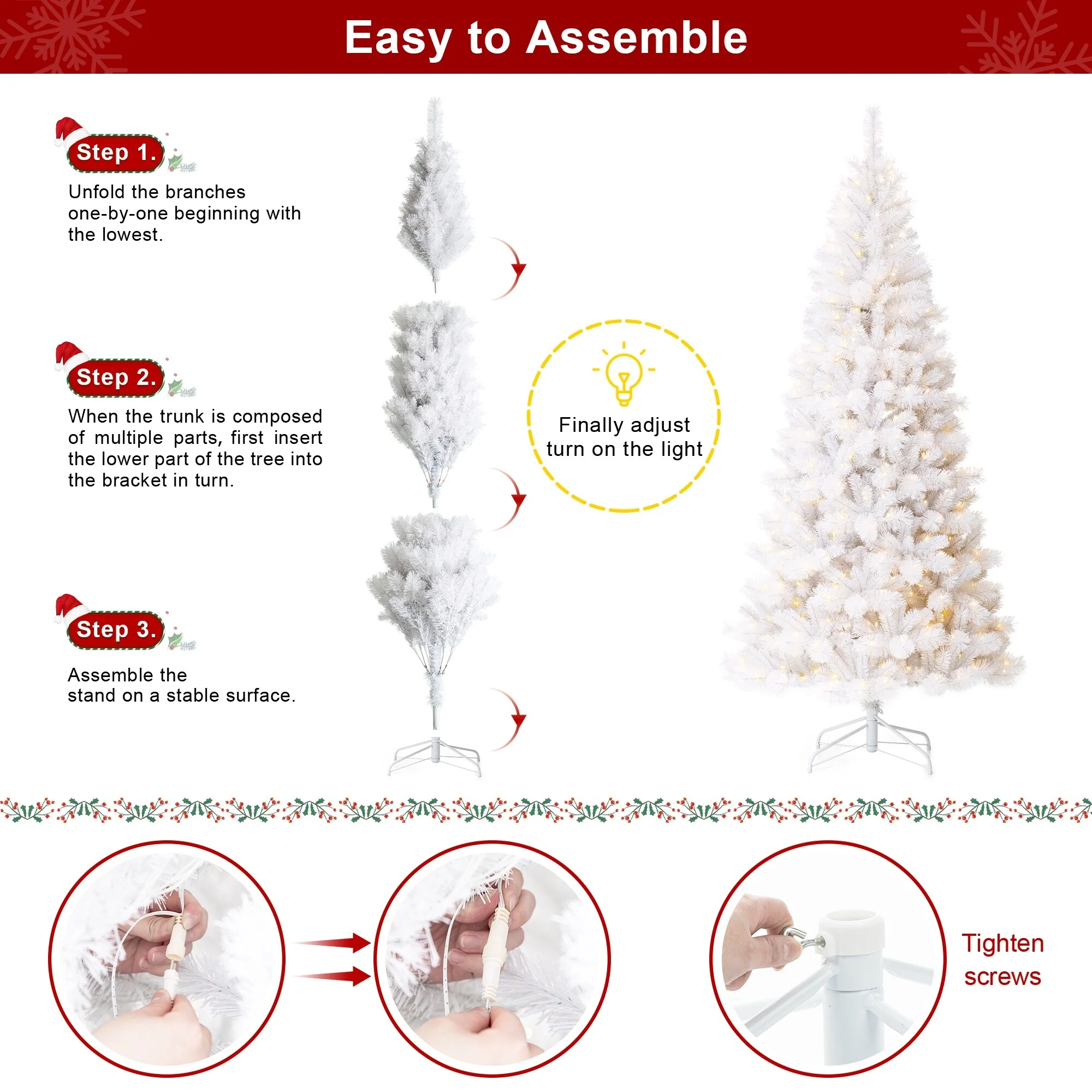Celebrate the holidays with this white artificial Christmas tree - a great alternative to traditional green trees! Its stand is crafted from metal and features lush white PVC branches so it never has to be watered. Its natural look let it great in traditional and modern homes, and its flexible branches are easy to shape. Just place the plug-in into the wall and enjoy the spirit of the season.