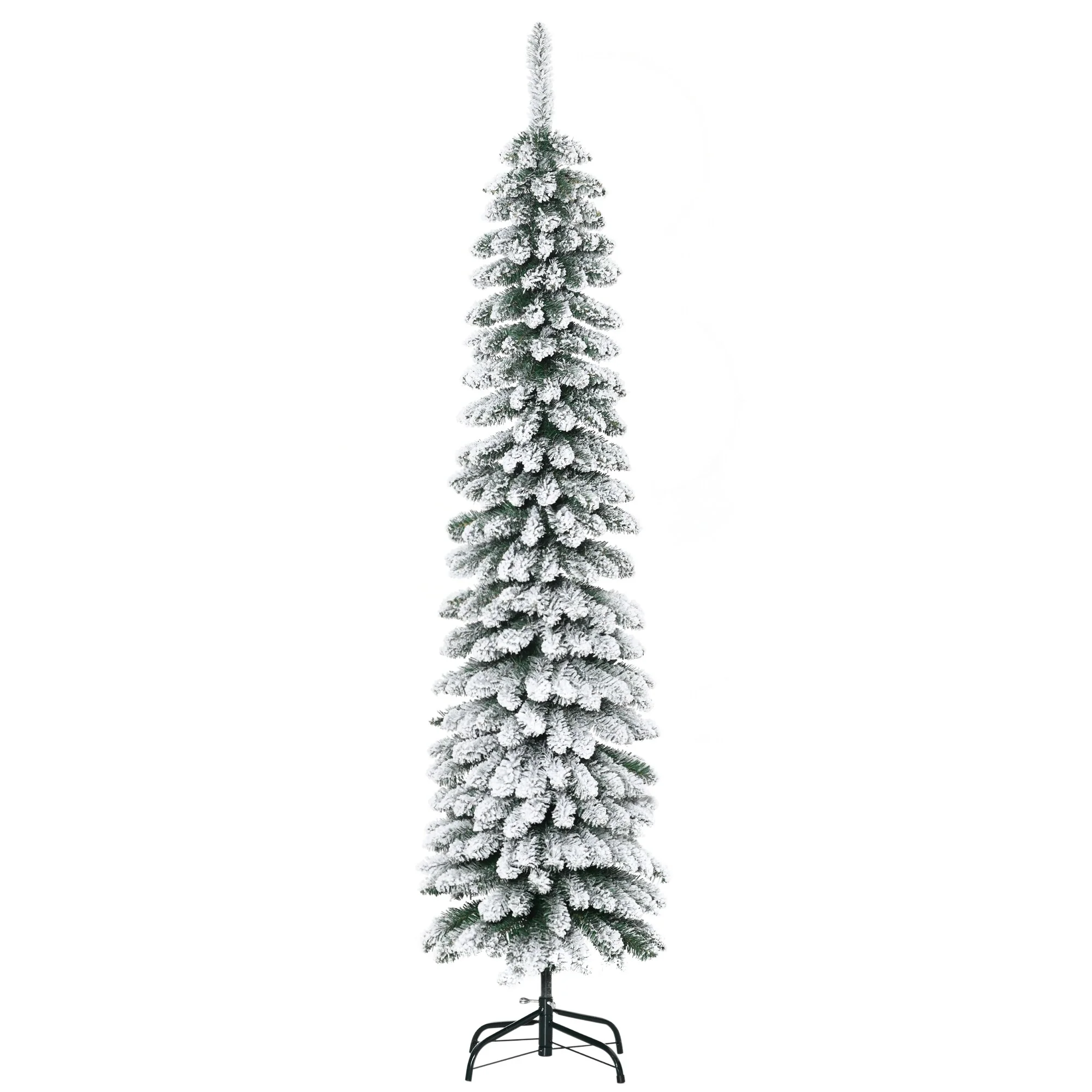 The life-like branches of this skinny Christmas tree are dusted in snow to add a beautiful white Christmas display to your holiday living space. A hinged design makes set-up ultra-easy to save time and effort during a hectic time of year, while the narrow shape is space-saving not only in the living room but in storage. The high-stability base provides structural integrity, while offering a foldable design. Little mess, simple assembly, and impeccable ambience help make your season just a little brighter.