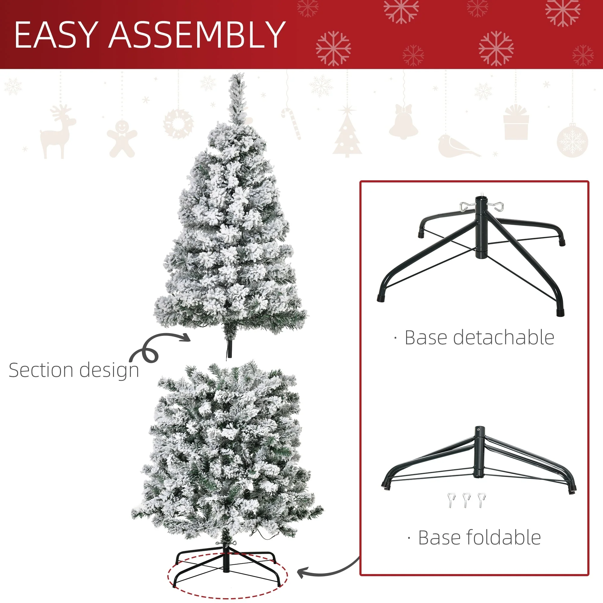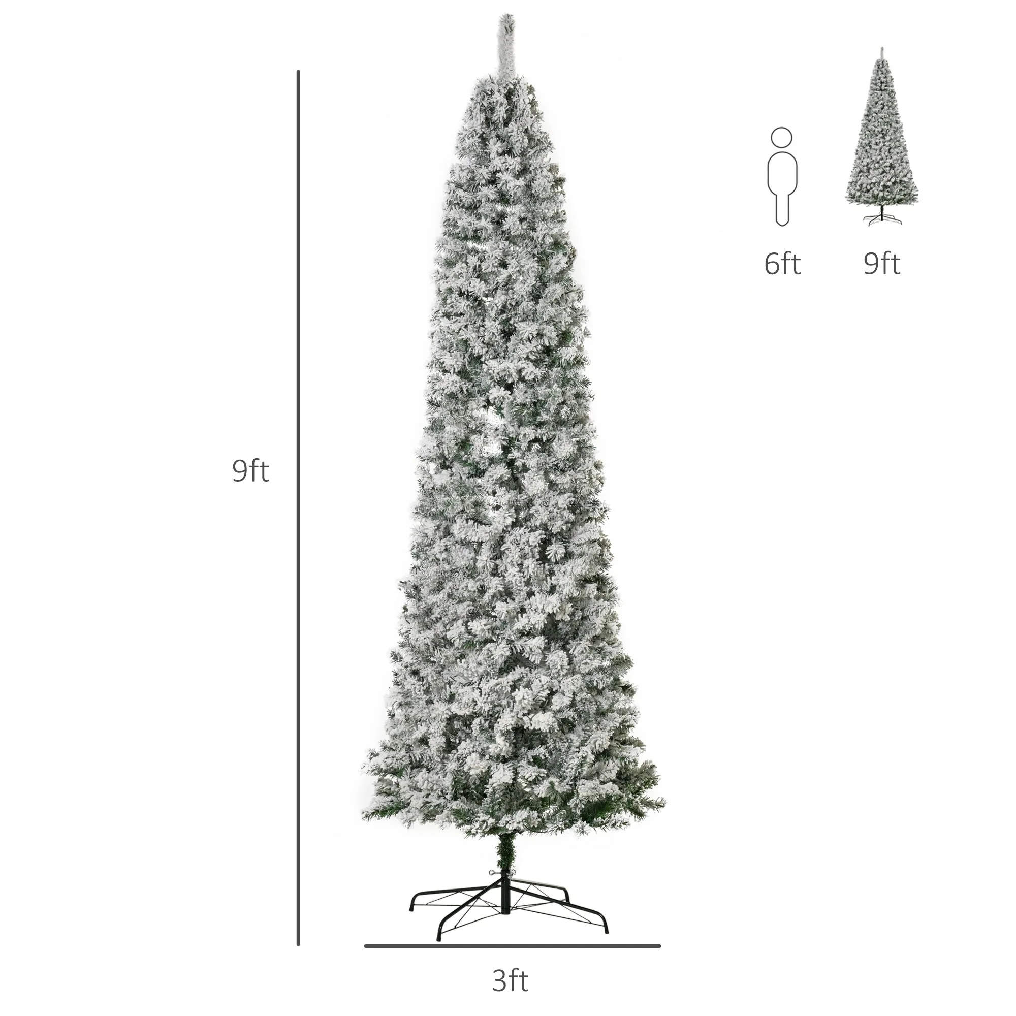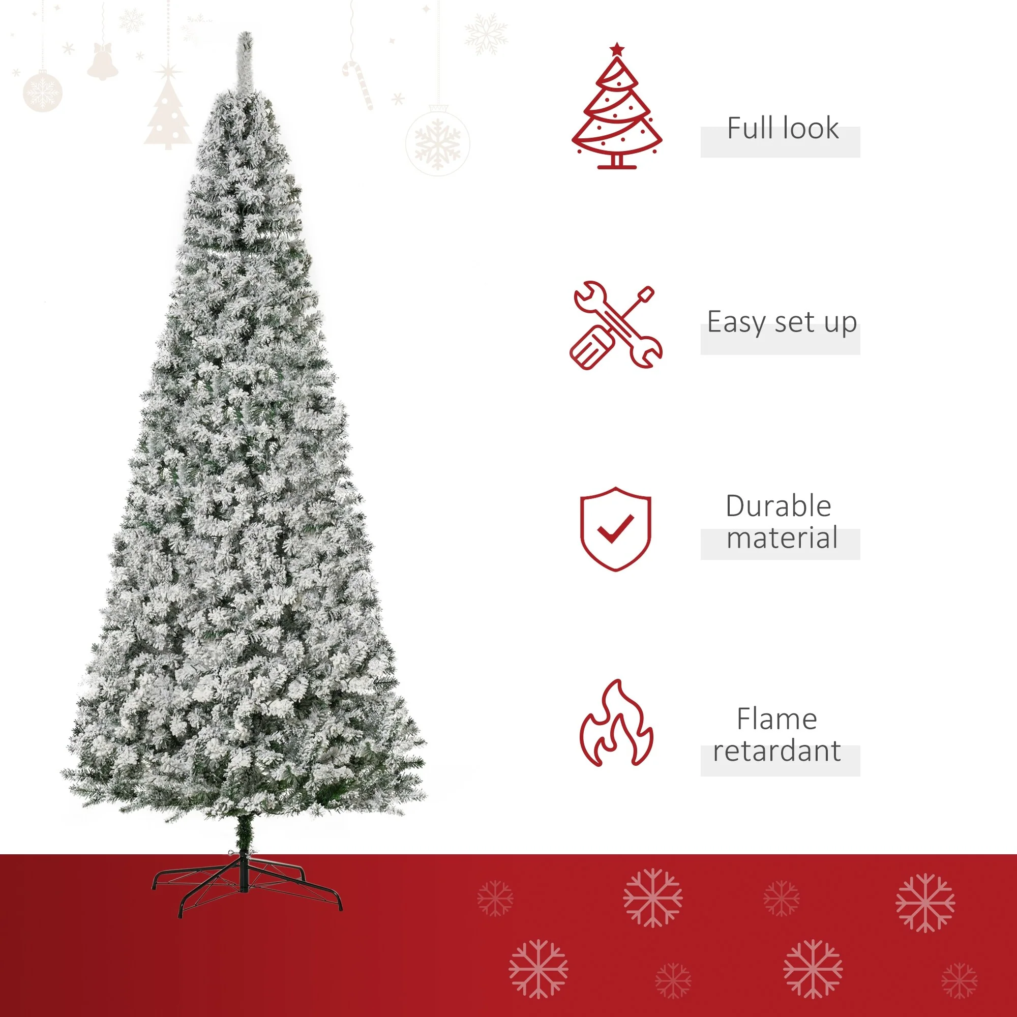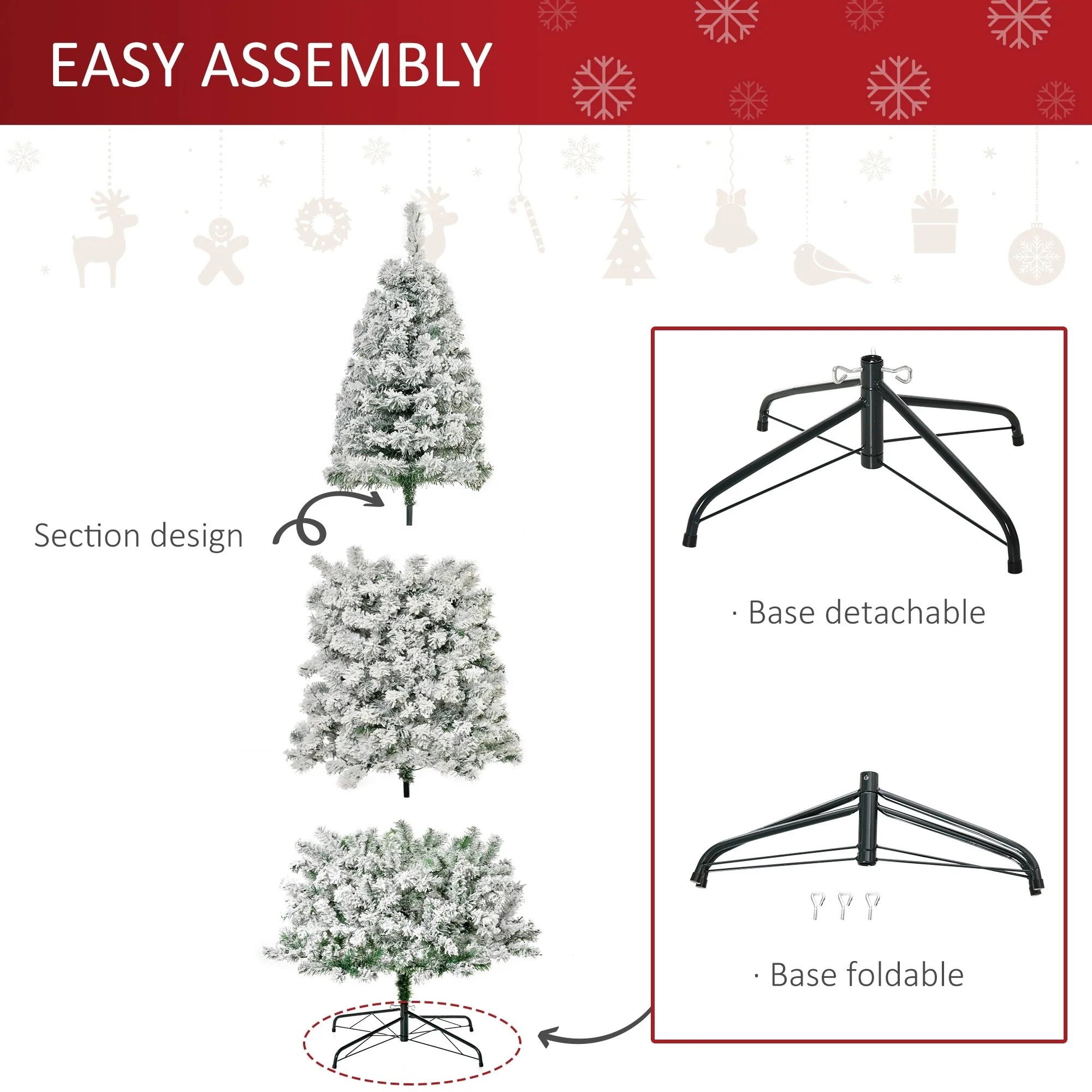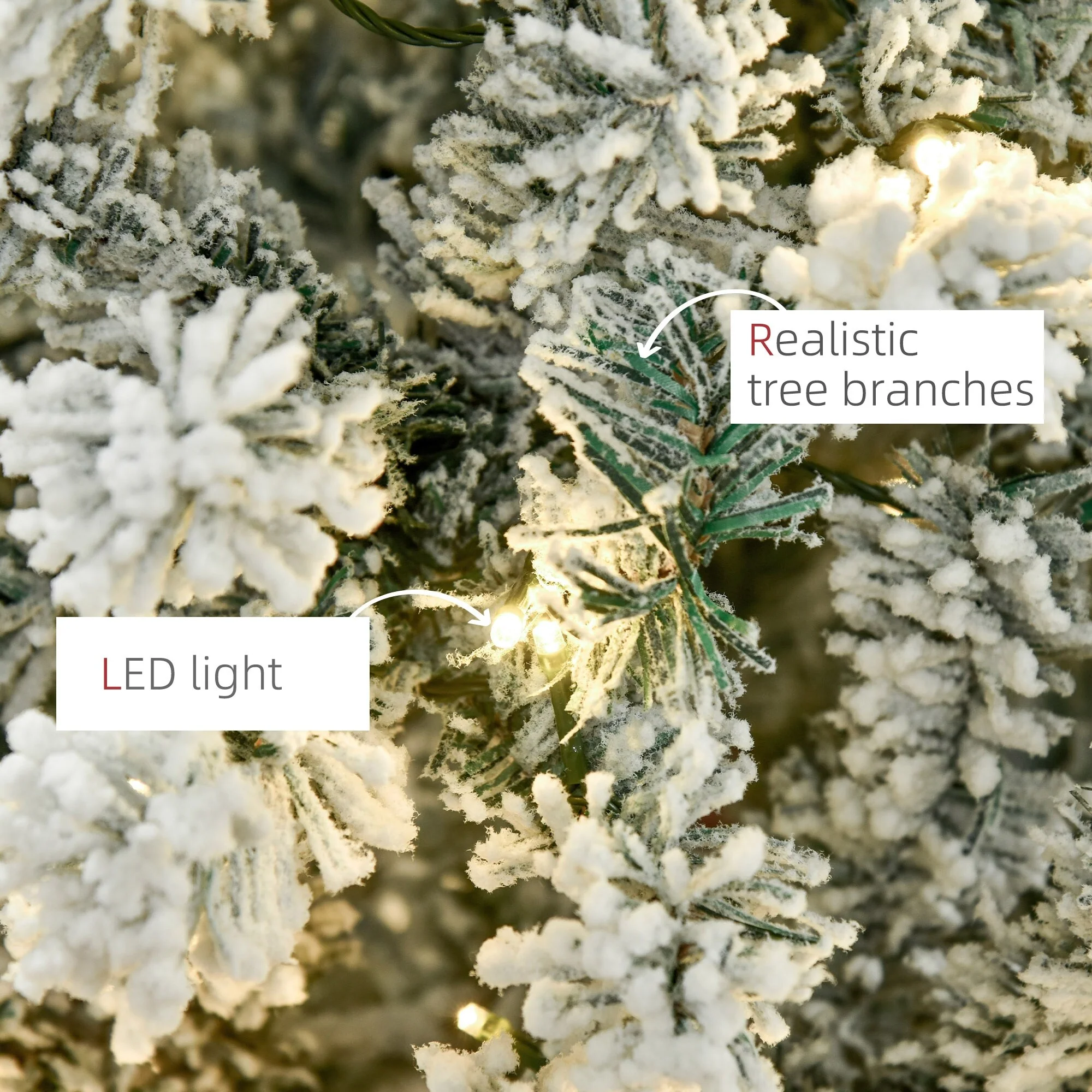 Festive and wintery, this snow flocked Christmas tree has the look of a white Christmas. The prelit design keeps the holiday preparations quicker and easier, while hinged branches save time and effort. With its narrow shape, the space saver eliminates overly crowded corners, ensuring generous amounts of open room to keep you comfortable. The high-stability base keeps the big beauty standing strong, and it folds up for storage efficiency throughout the year. Built-in lights, easy set-up, and impeccable ambience make your season just a little brighter.