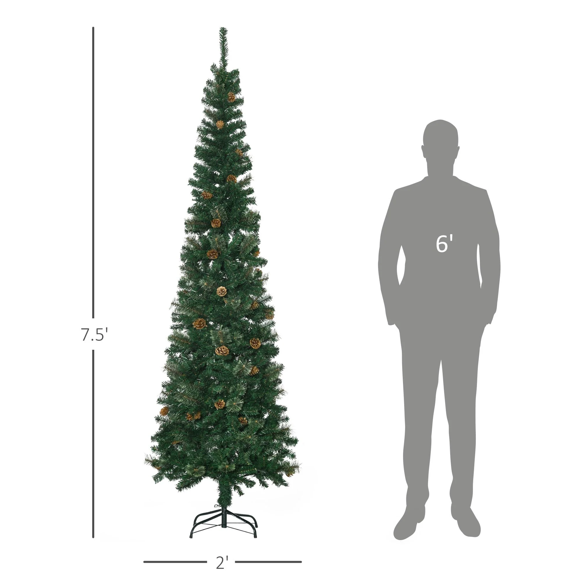 This skinny Christmas tree is decorated with pine cones, offering a touch of mother nature for realism, like natural forestry. The narrow shape saves space, accommodating small homes that don't have the room for a larger size. Two types of branch tips create a multi-layered look for a healthy, natural appearance that's lush and life-like. A hinged design makes set-up ultra-easy to save time and effort during a hectic time of year, while the high-stability foldable base provides structural integrity and easy storage. Little mess, simple assembly, and impeccable ambience help make your season just a little brighter.