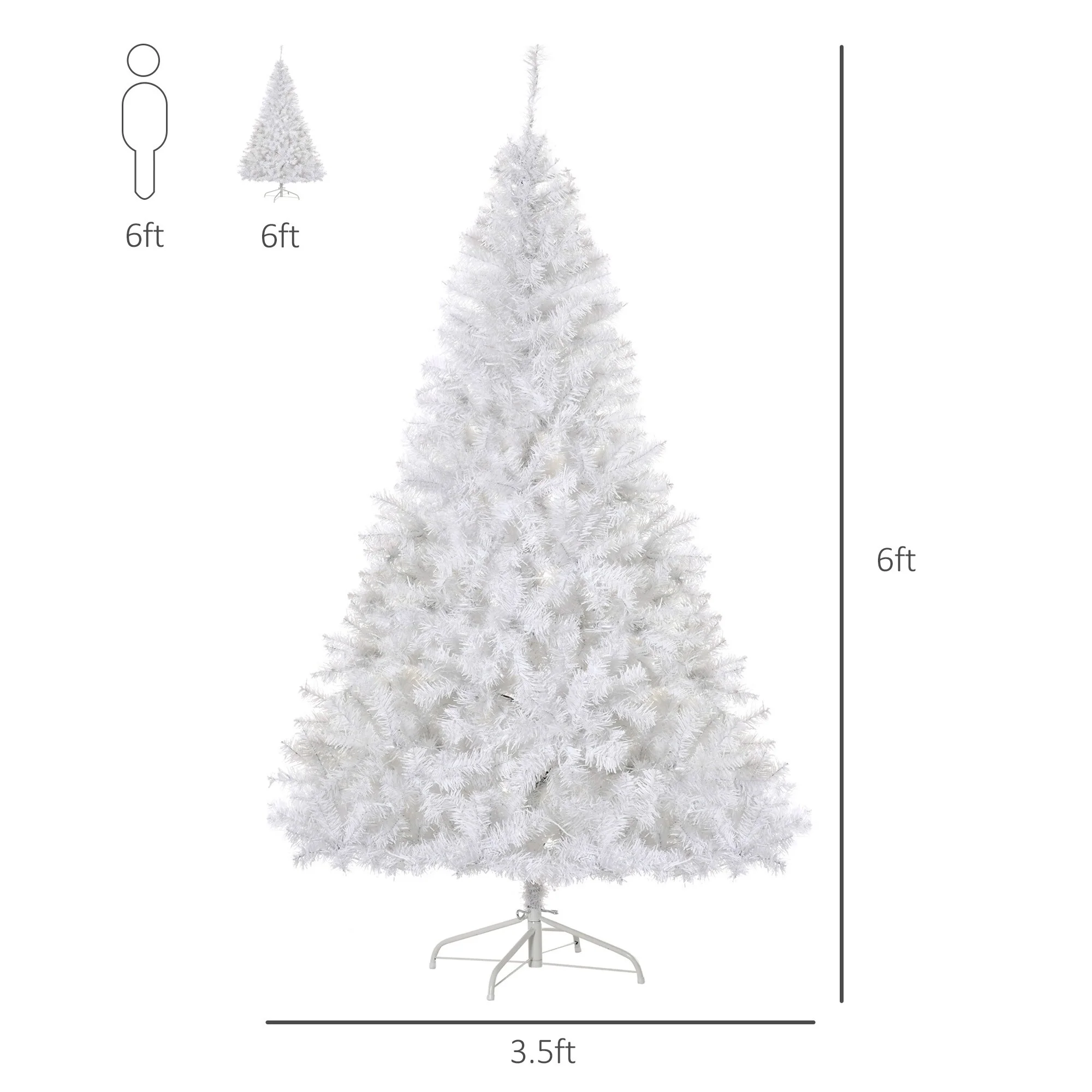 Bring a beautiful, winter-white look to your holiday home with a frost and snow colored Christmas tree. Dense and lush, this pure-looking beauty uses flashing lights to create a brilliant display. The winking LED's on this radiant 6 ft. pine make for the most charming and delightful of holiday living spaces. A foldable base allows easy storage and stable support, while the hinged branches makes your life simply simpler.
