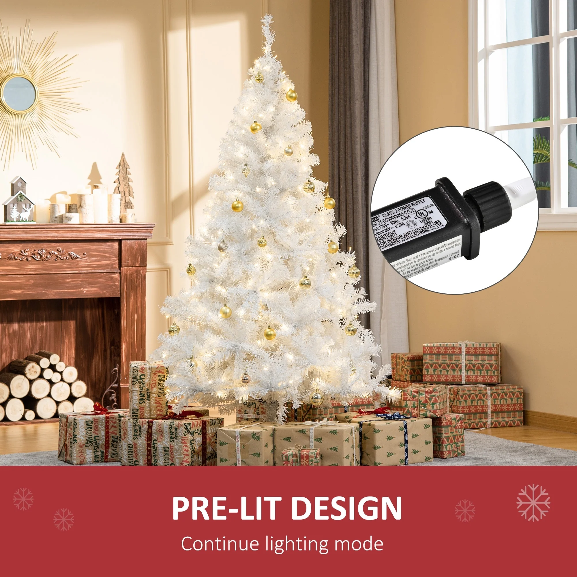- Clean winter-white color with white lights