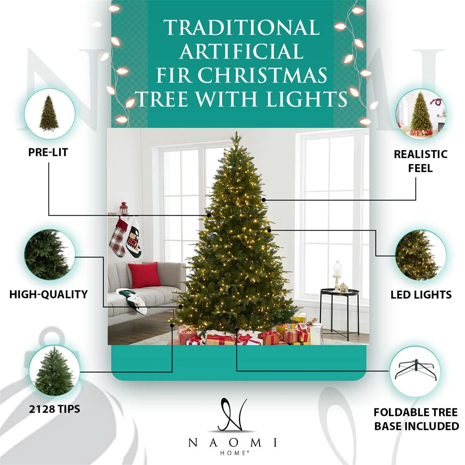 Bring home the holiday cheer with Naomi Home's Traditional Artificial Christmas Tree with Lights. This prelit Pine Fir Christmas Tree boasts a realistic design with four-layer leaves to give you a fuller and denser look. The hinged branches make assembly a breeze and the durable metal base ensures a sturdy stand. Complete your holiday decorations with our easy-to-assemble prelit Christmas tree that comes with a foldable base for convenient storage.