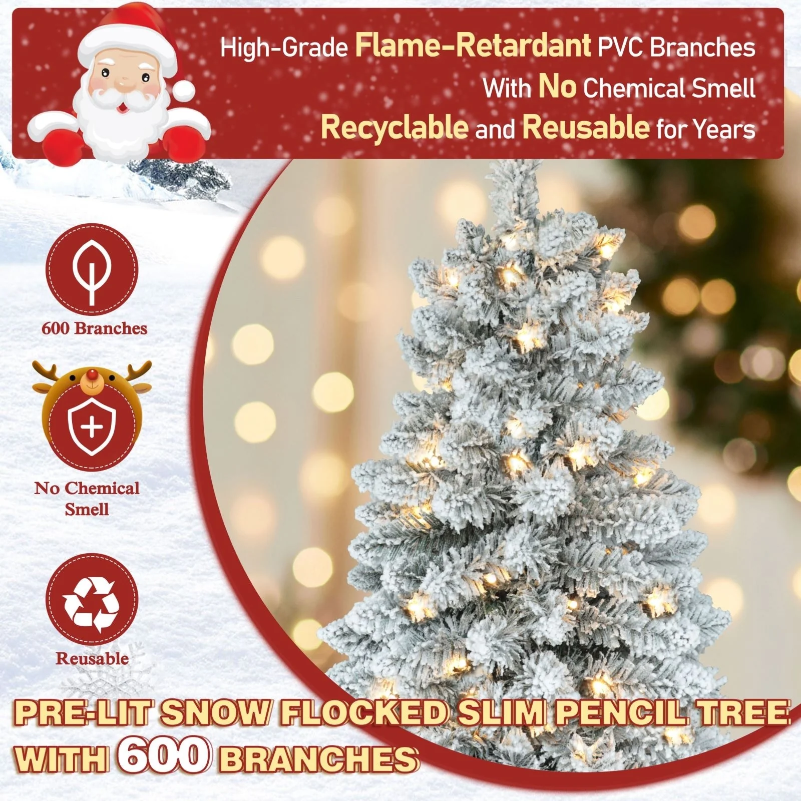 5.5 ft. Pencil Flocked Artificial Christmas: