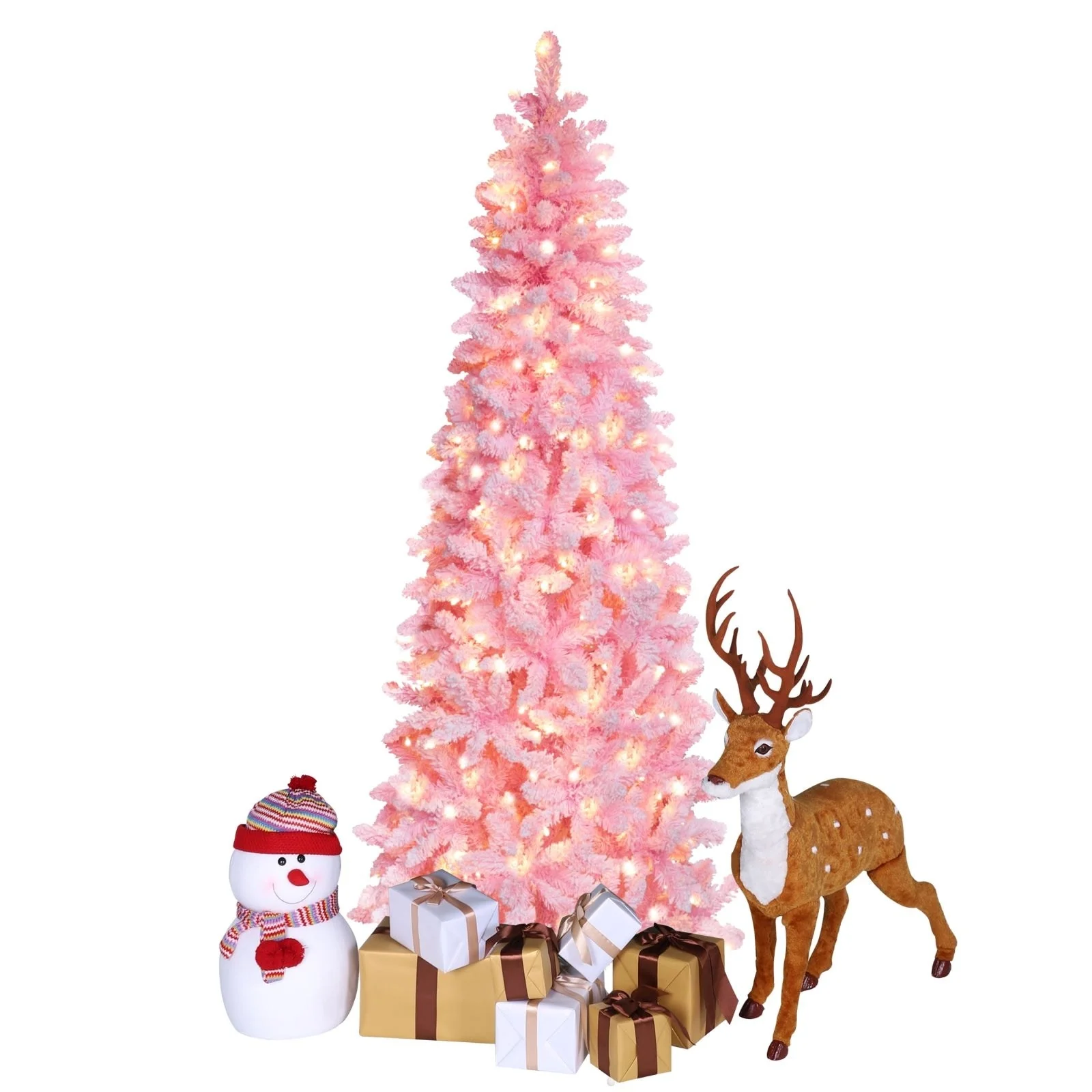 6.5 ft. Multi-Color Light Pencil Flocked Artificial Christmas: