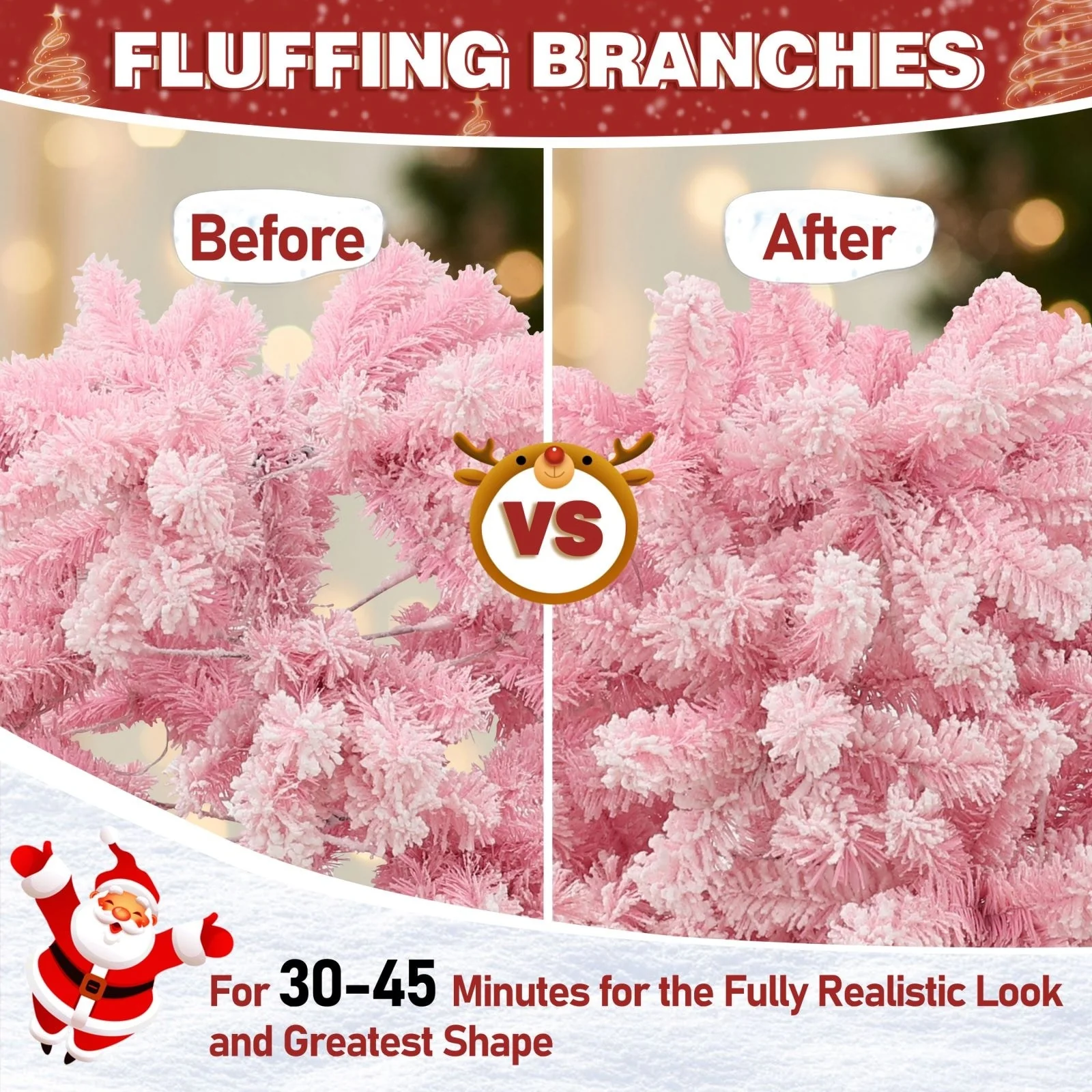 - The flocked Christmas pine tree is lush enough when it's fully fluffed out. Take time to fluff the branches for 30 or 45 mins