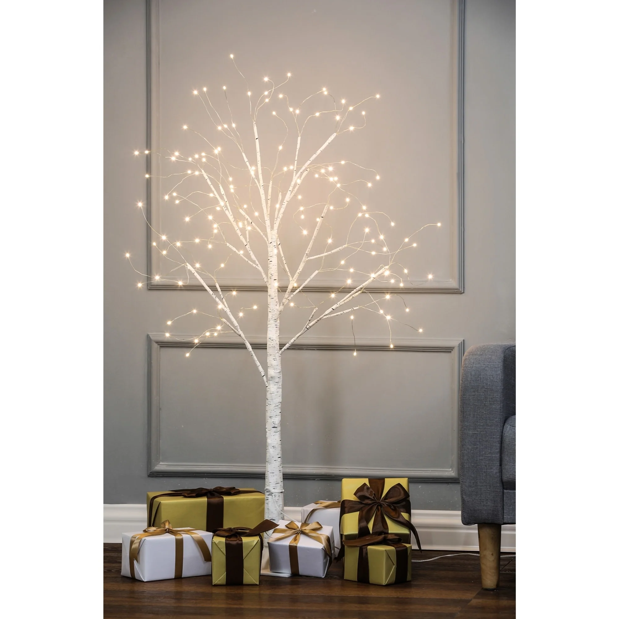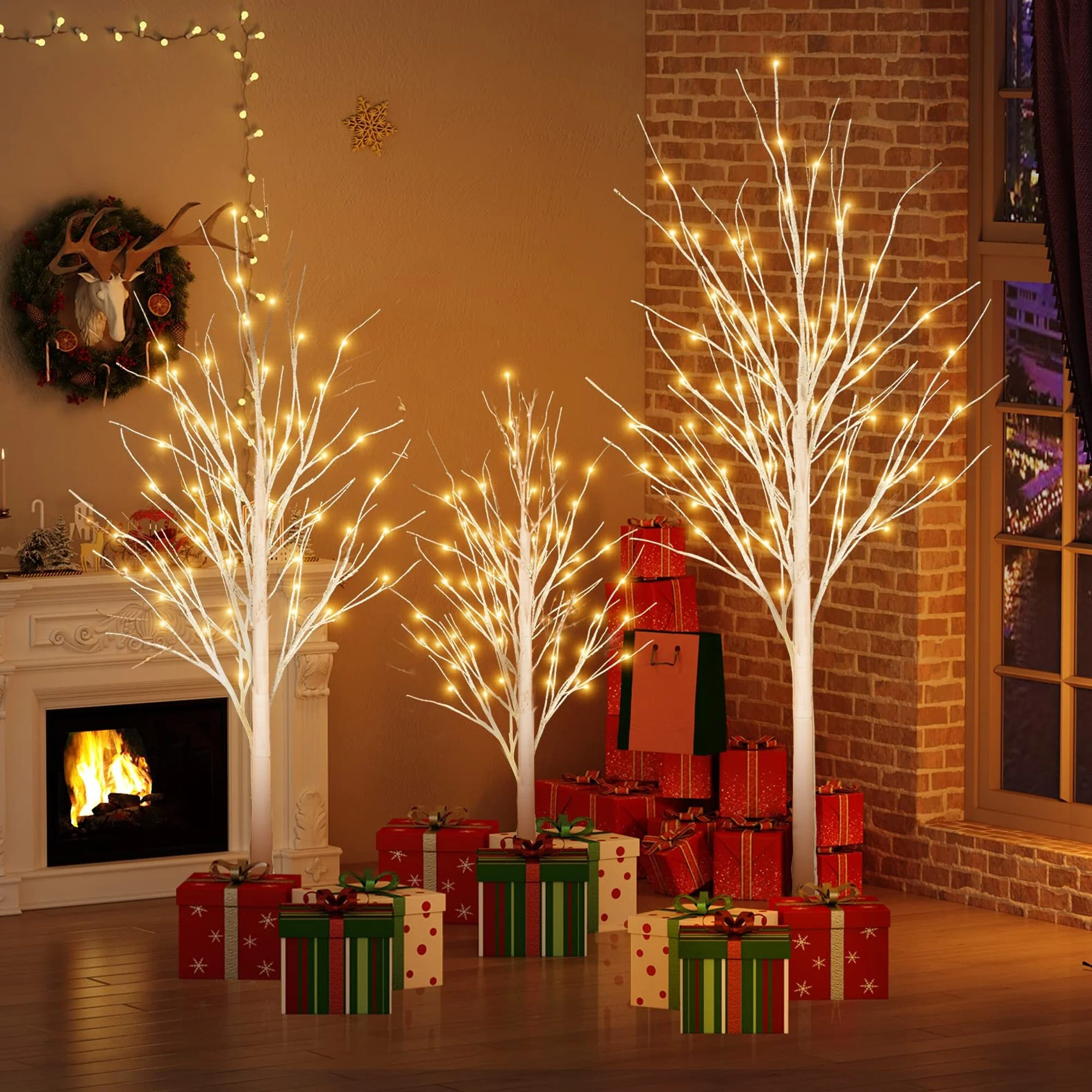 4FT & 5FT & 6FT Birch Christmas Tree Set, LED Lighted, Pack of 3 - Light Trees Set of 3