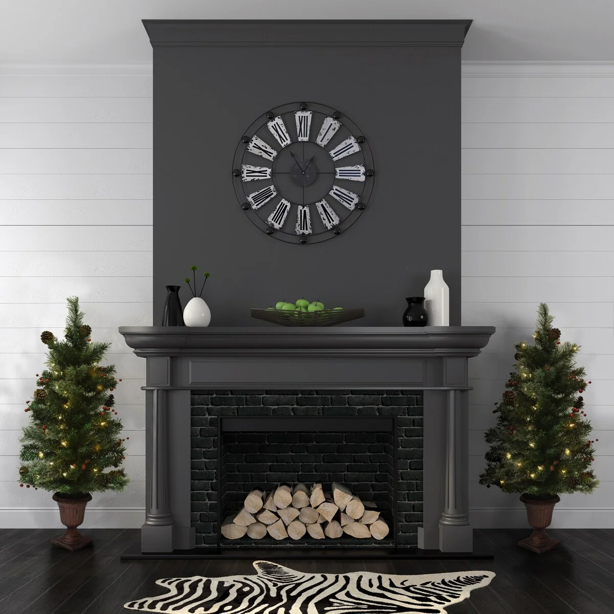 Pre-Lit Holiday Christmas 4-Piece Set with LED Lights, Christmas Garlands, Wreath and Set of 2 Entrance Trees