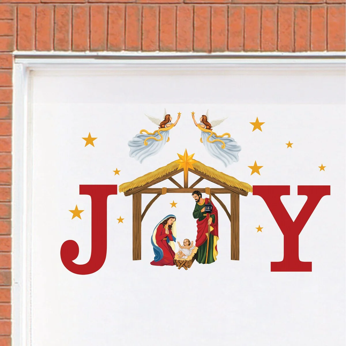 Share the spirit of the season with friends and neighbors by decorating your garage door with these unique magnets. The 15-piece magnet set features the word, 'JOY' with the Nativity Manger taking the place of the O. Also included are 2 angel magnets and 10 stars to arrange however you please. Magnets adhere easily to your metal door and remove without any residue or damage to be used year after year. Magnet. Largest magnet is 13 3/4'L x 12 1/2'H.