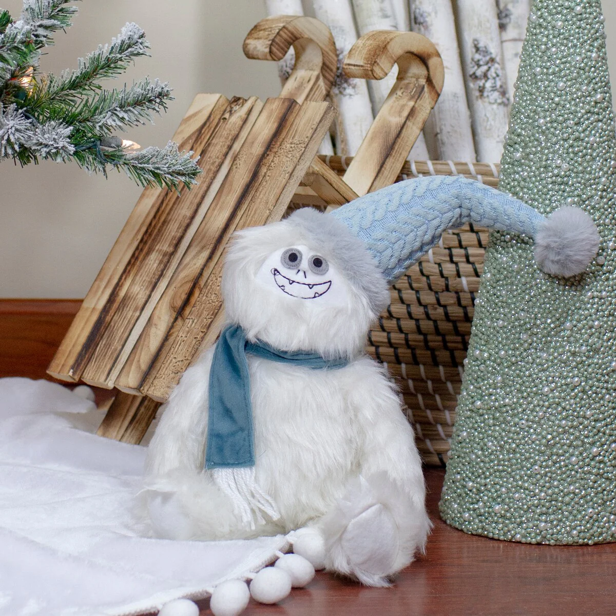A yeti in your Christmas festivities will only add to the joy in your home at Christmas time! This adorable sitting yeti has soft fabric legs and he is perfect for sitting on the edge of your mantle or table. He is all bundled up in his winter attire and ready to play! He would be a great addition to your holiday decor or a gift for a friend or family member! Features: White Yeti tabletop decoration. Features a black smile pointed teeth with gray and black eyes. Wearing a light blue knitted warm winter hat. The hat is bendable with trimmed with faux fur and a pom pom at the top. Yeti's arms are adjustable to a position where you would like. Scarf is dark blue with gray fringe. Legs dangling in front of him. Recommended for indoor use only. Dimensions:22'H x 7'W x 4.25'D. Material(s):polyester
