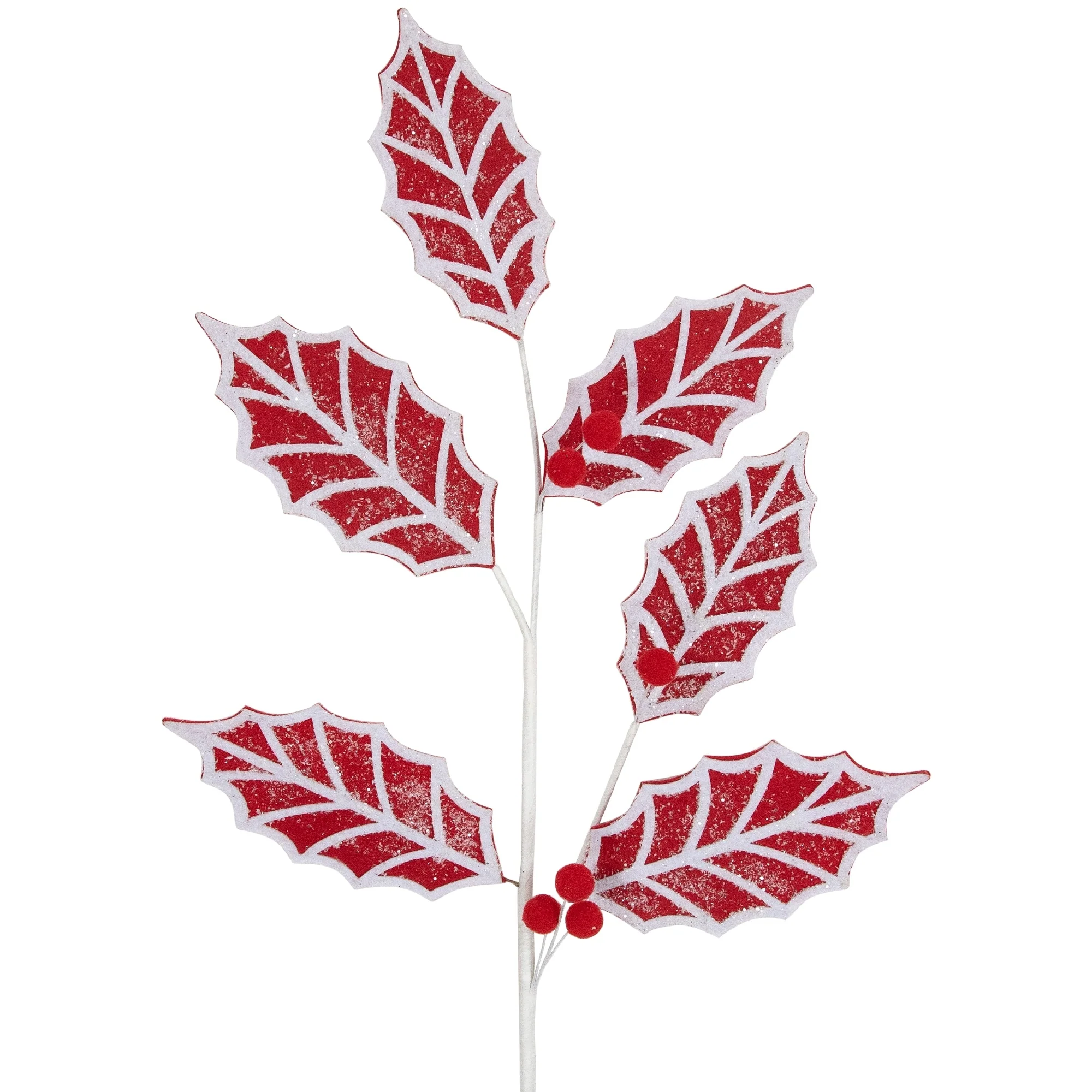 Add a festive touch to your holiday decorations with this beautiful holly Christmas spray. Featuring red holly leaves with a lightly frosted finish, this spray will bring a touch of winter wonderland magic to your home. The vibrant red and white colors will add a pop of holiday cheer to your wreaths, garlands, centerpieces, or any other DIY holiday project. Whether you use it to adorn your front door or add a finishing touch to your Christmas tree, this holly spray is sure to make your holiday season merry and bright.