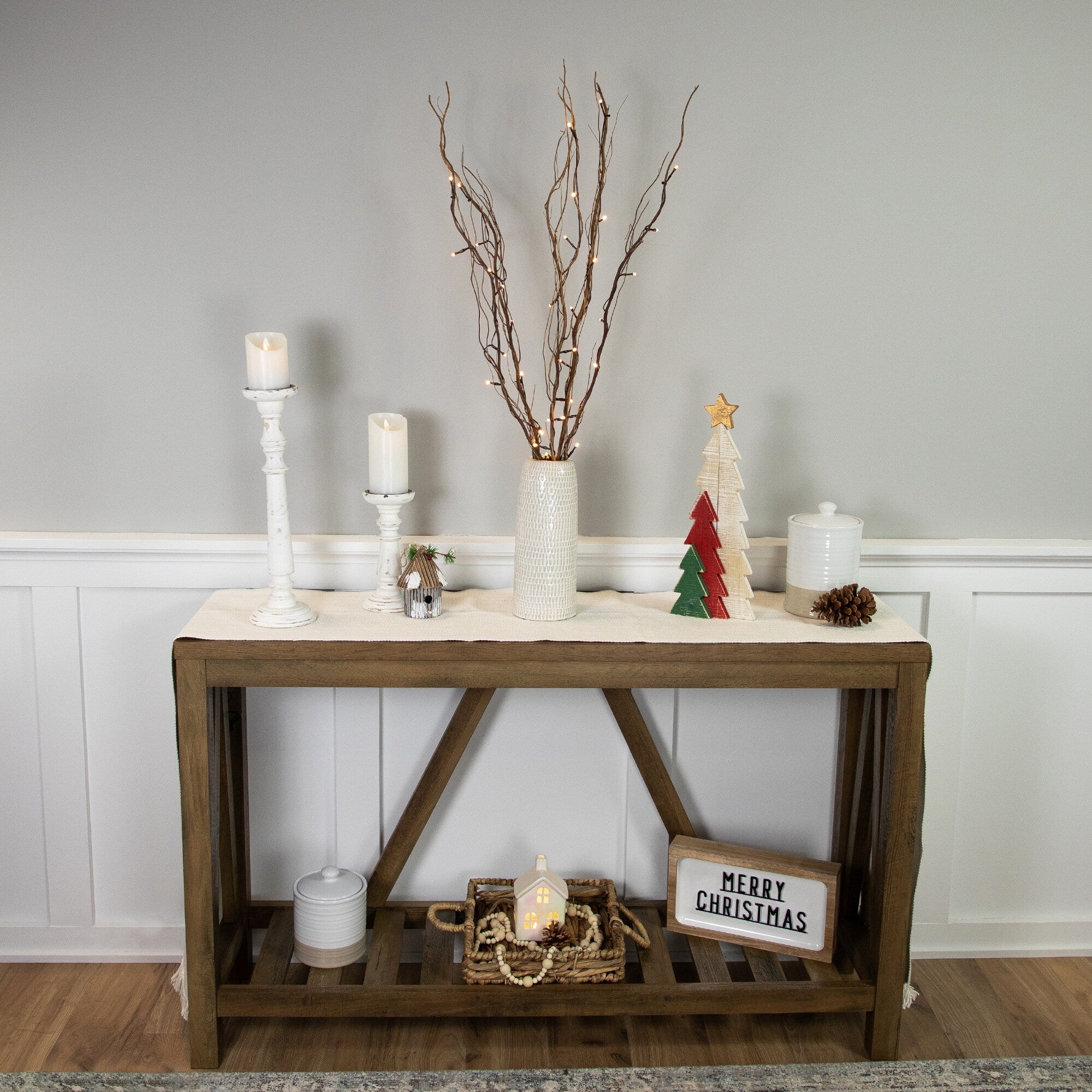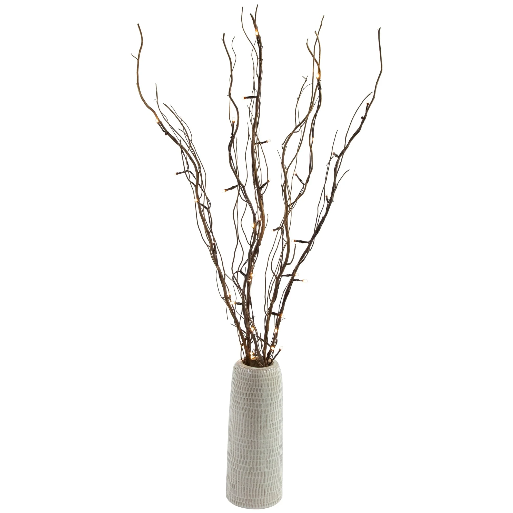 Add a natural element to your holiday decor with this unique branch bundle. Led lighted, it offers the perfect amount of glow. Real twigs and vines intertwine creating a one of a kind show piece. Place in a vase, on a mantle or use as part of you Christmas table centerpiece.