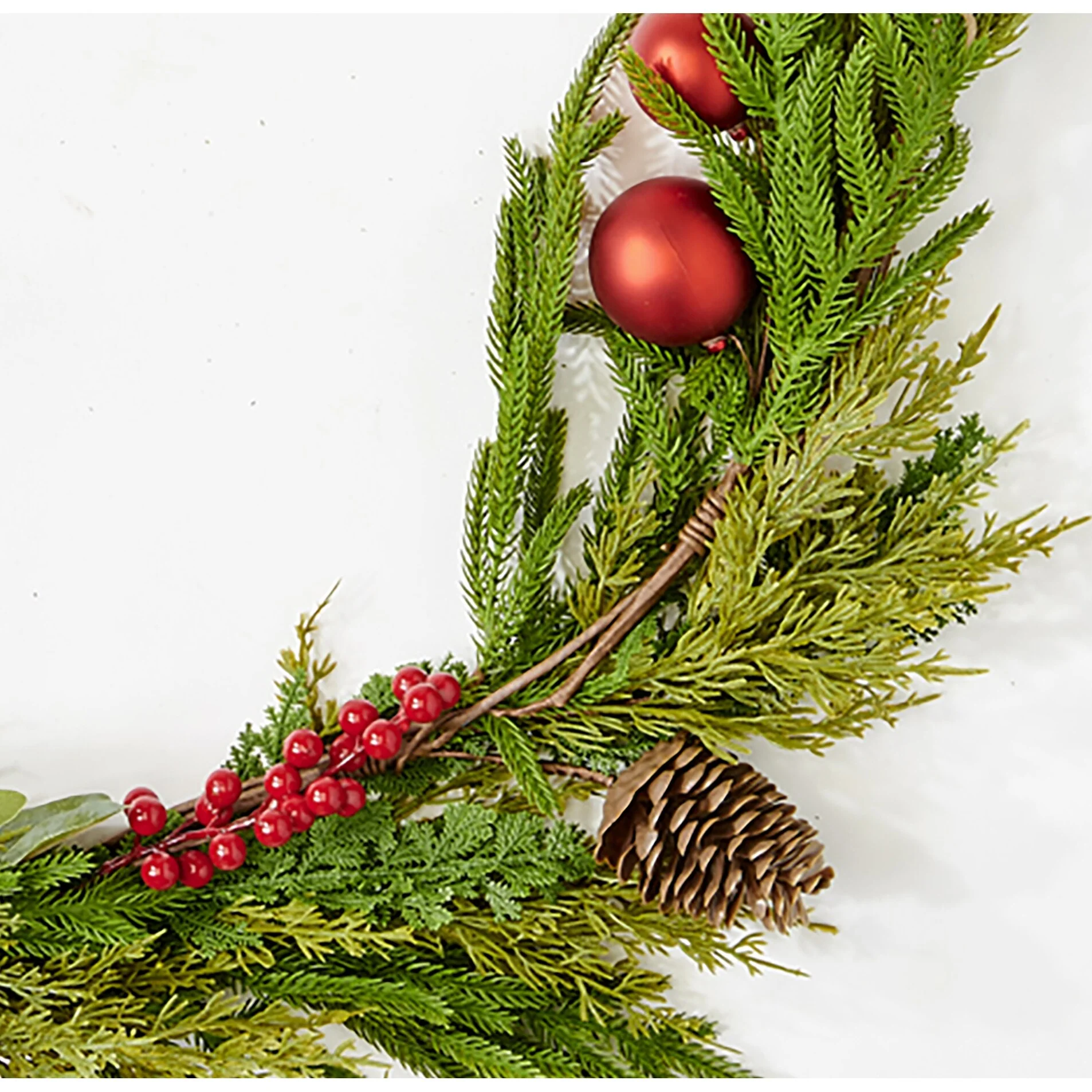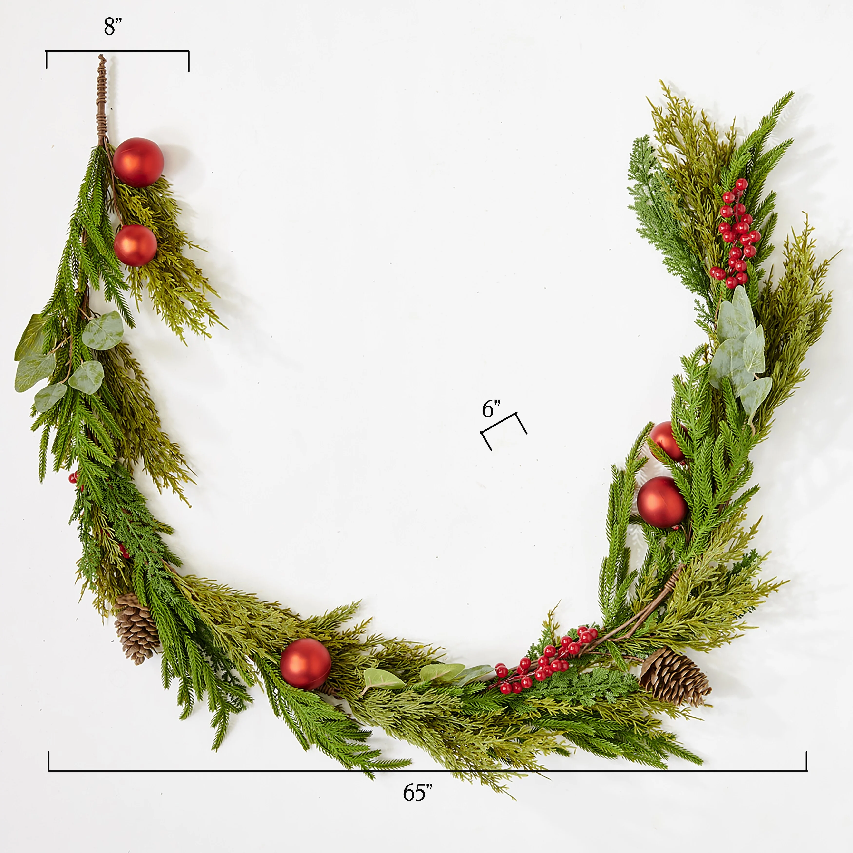 - 65 Christmas Red Balls and Artificial Pine Cedar Garland
