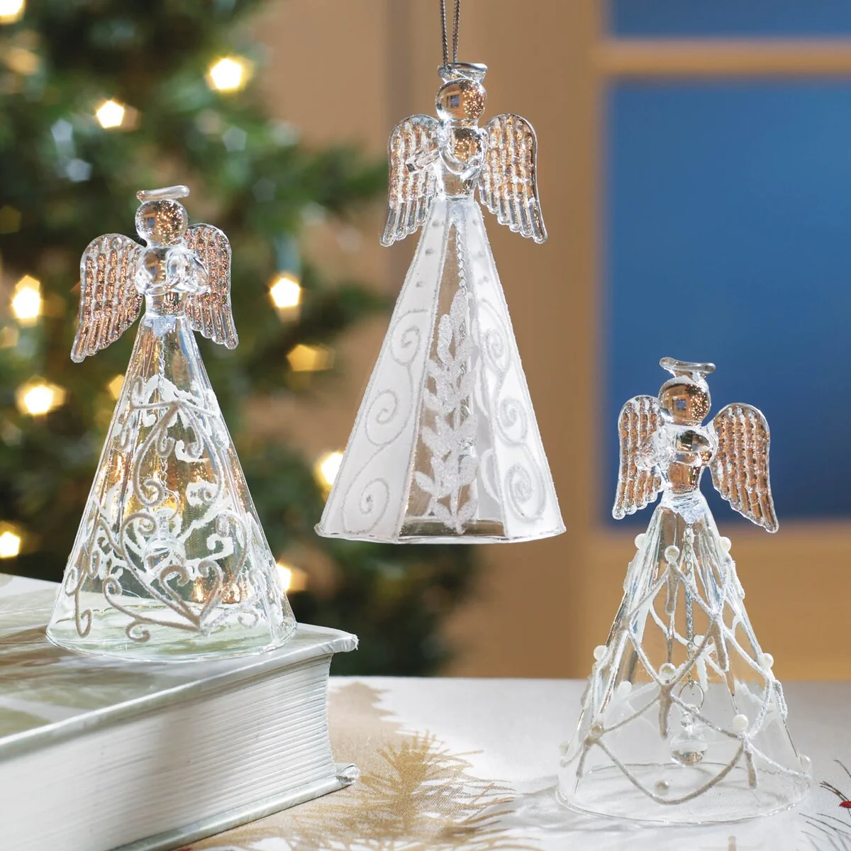 Collectible Glass Angel Bell Ornaments - 9.250 x 5.750 x 3.130
