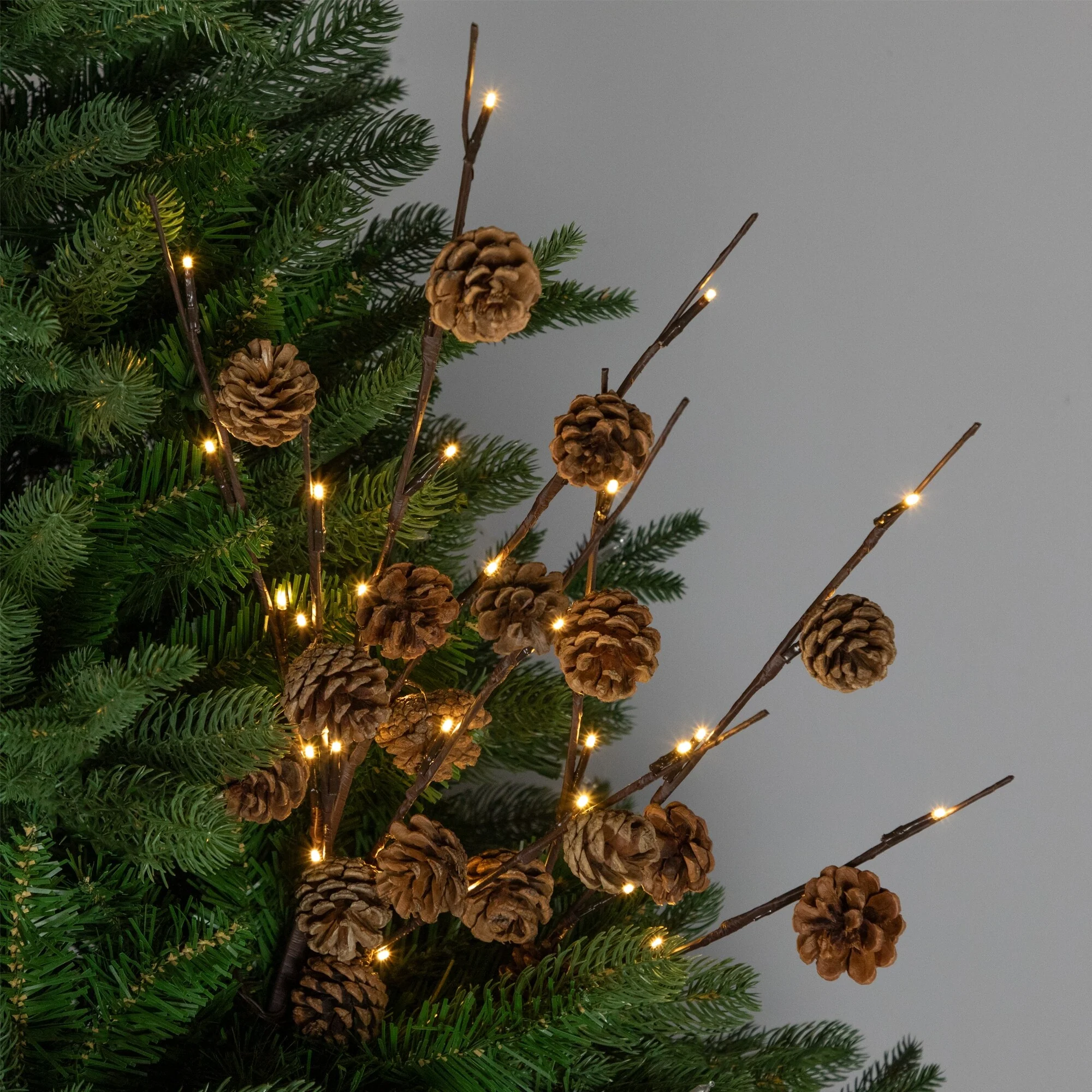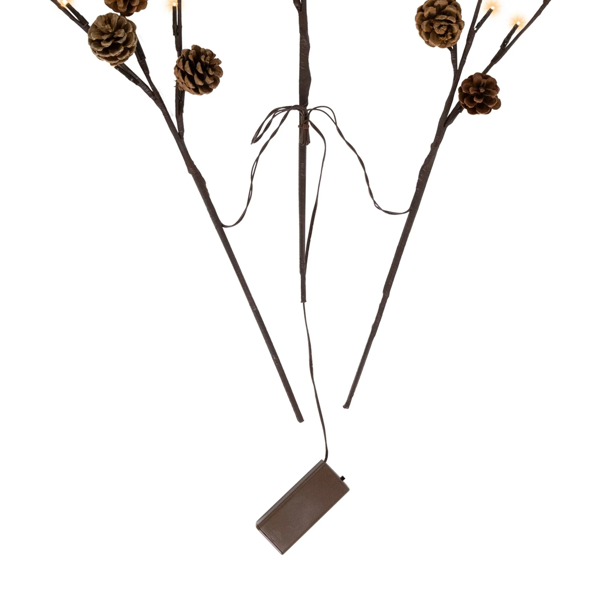 Add a natural touch to your holiday decor with this unique, branch bundle set. Led-lighted, they provide the perfect amount of glow. Twigs are accented with multiple pinecones, creating a one-of-a-kind showpiece. Place in a tall vase and display on a mantle or use them as a part of your Christmas table centerpiece.