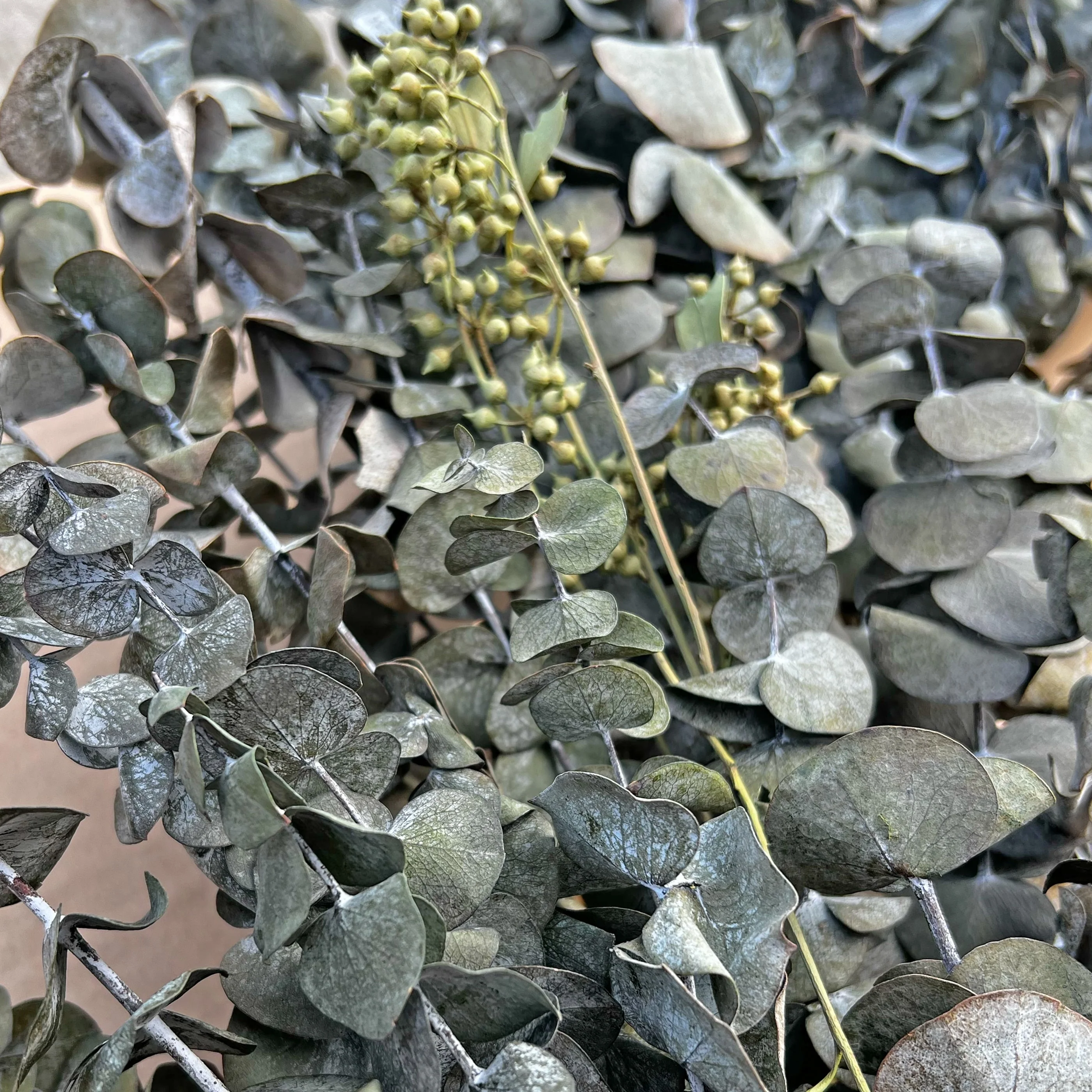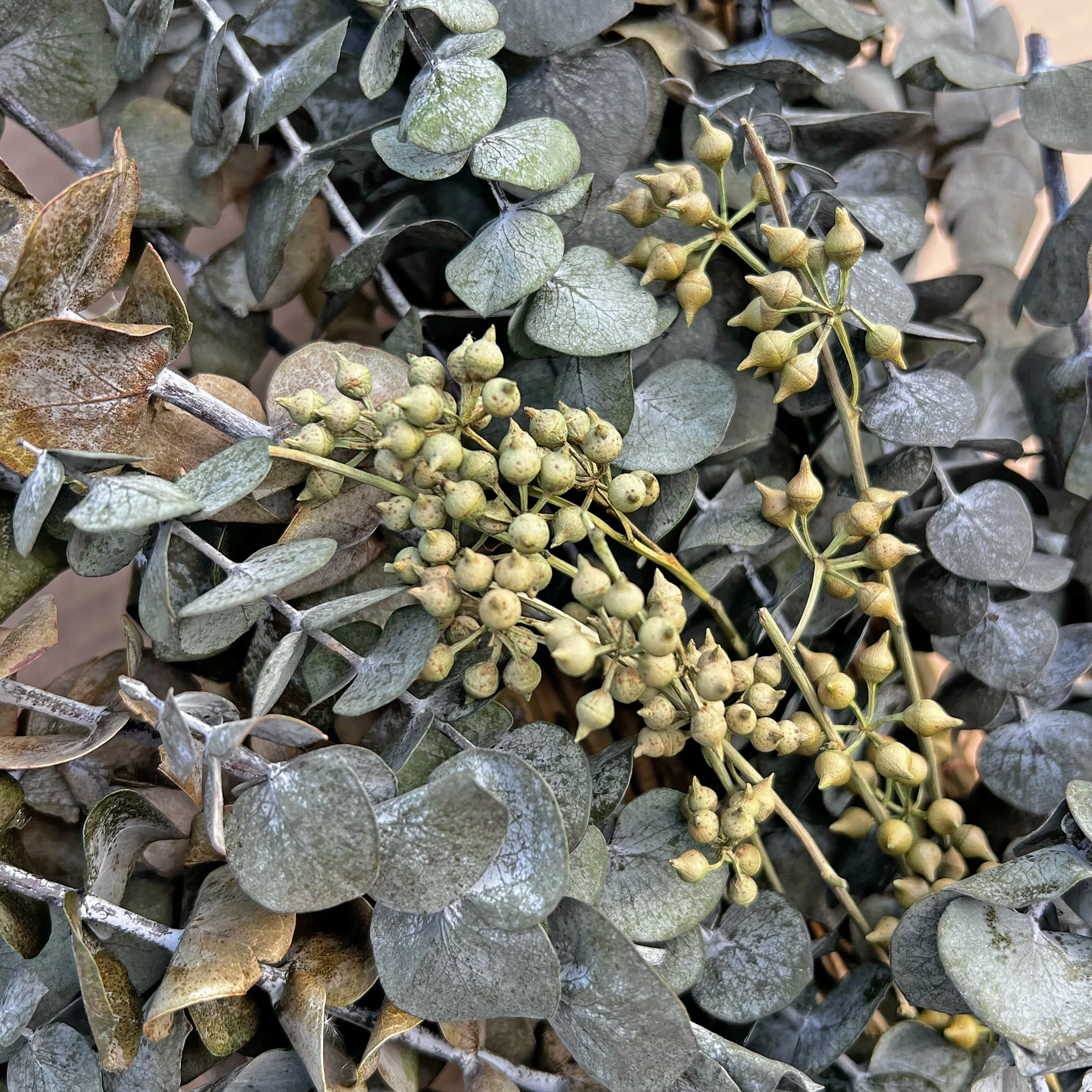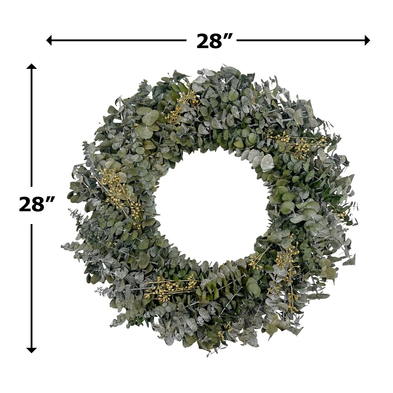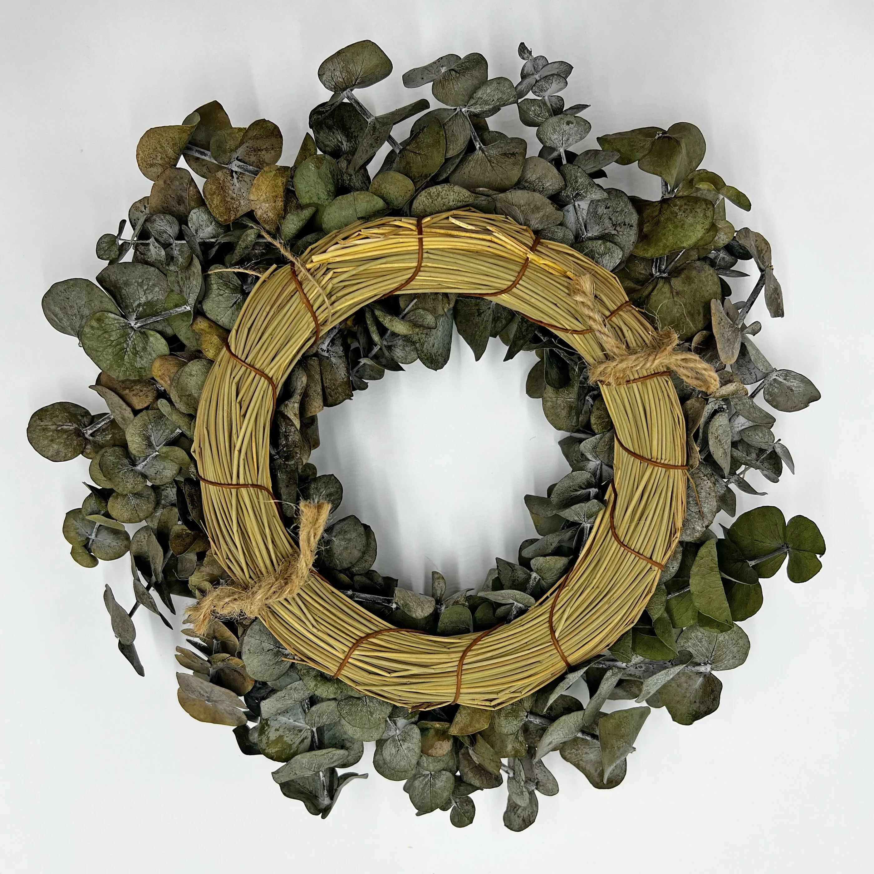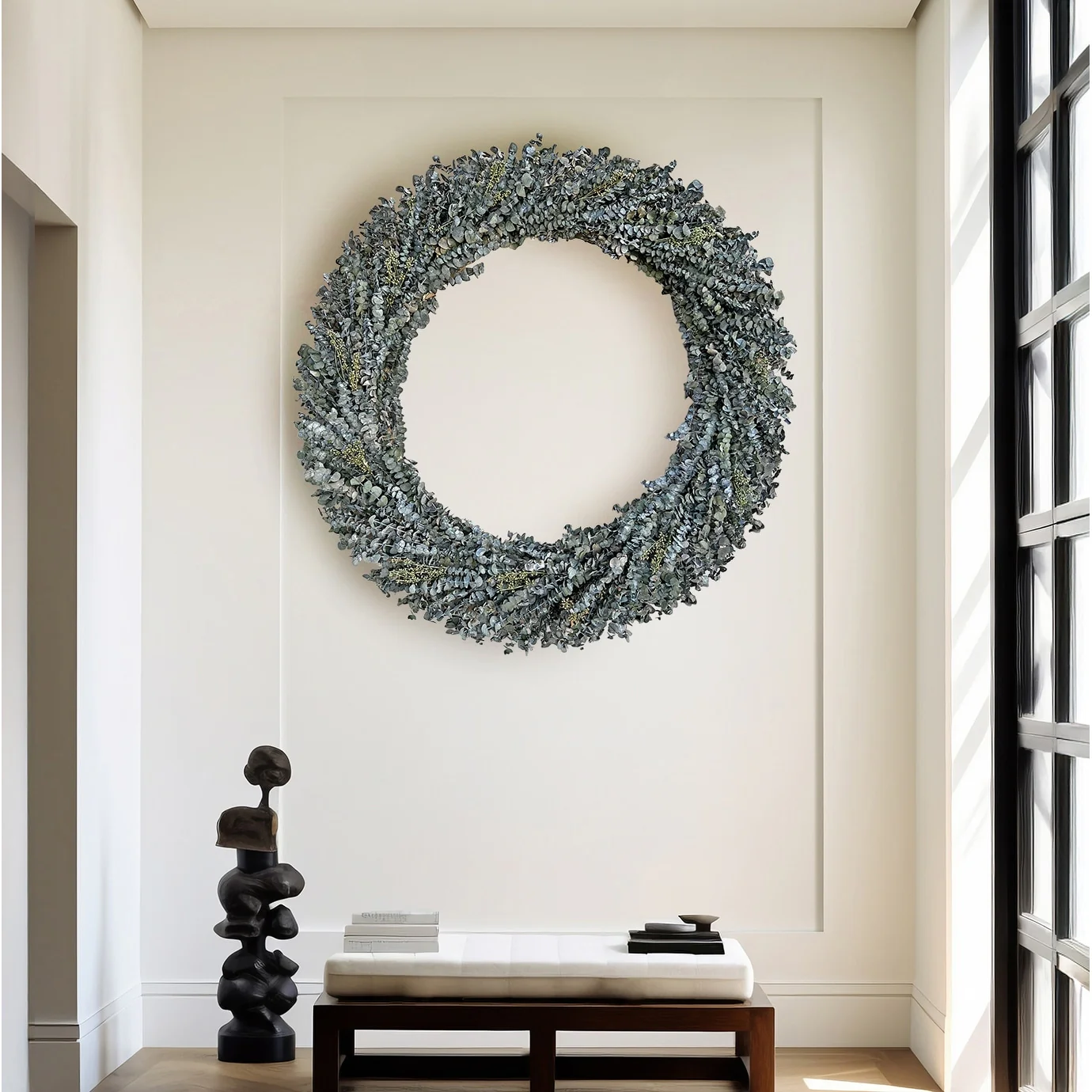 The Preserved Decorative Real Eucalyptus Wreath, sized at 12/21/28/50 inches in diameter, offers a fresh and natural touch to any setting. Crafted with genuine eucalyptus leaves, meticulously preserved to maintain their vibrant green color and delicate texture, this wreath brings the invigorating scent of eucalyptus into your home. Its lush foliage and classic design make it a versatile decor piece, perfect for hanging on doors, walls, or as a centerpiece, infusing your space with timeless botanical charm.