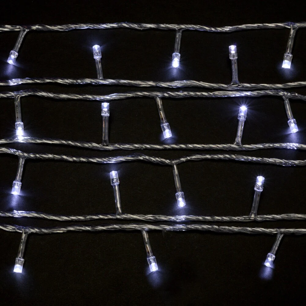 Create a jolly holiday atmosphere with these brilliantly colored lights. This string of light contains 100 individual bulbs, making it a fun and festive addition to your holiday decorating tool chest. The thick cord adds durability to the design to deliver maximum functionality season after season, and the lights feature eight modes for added fun and variety.