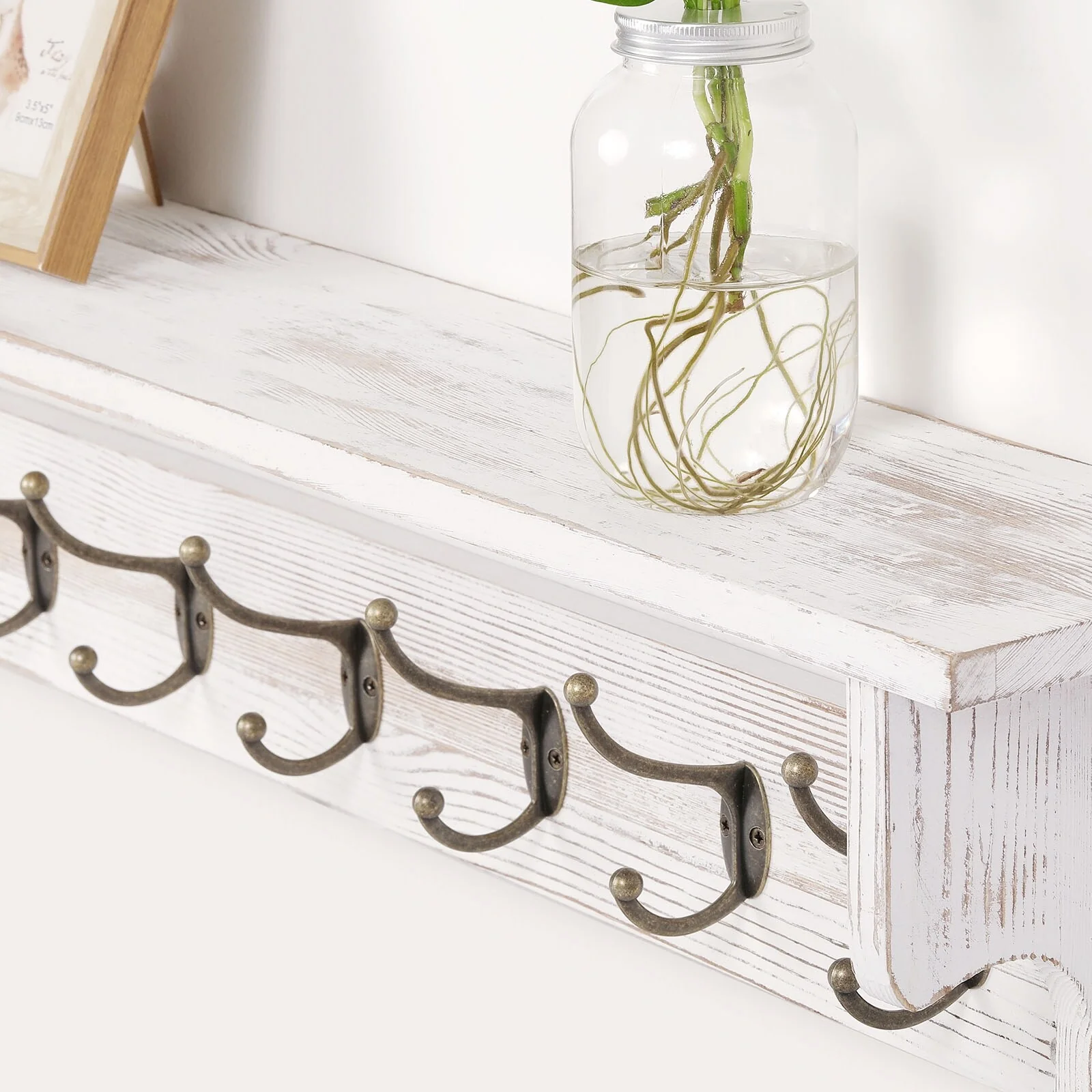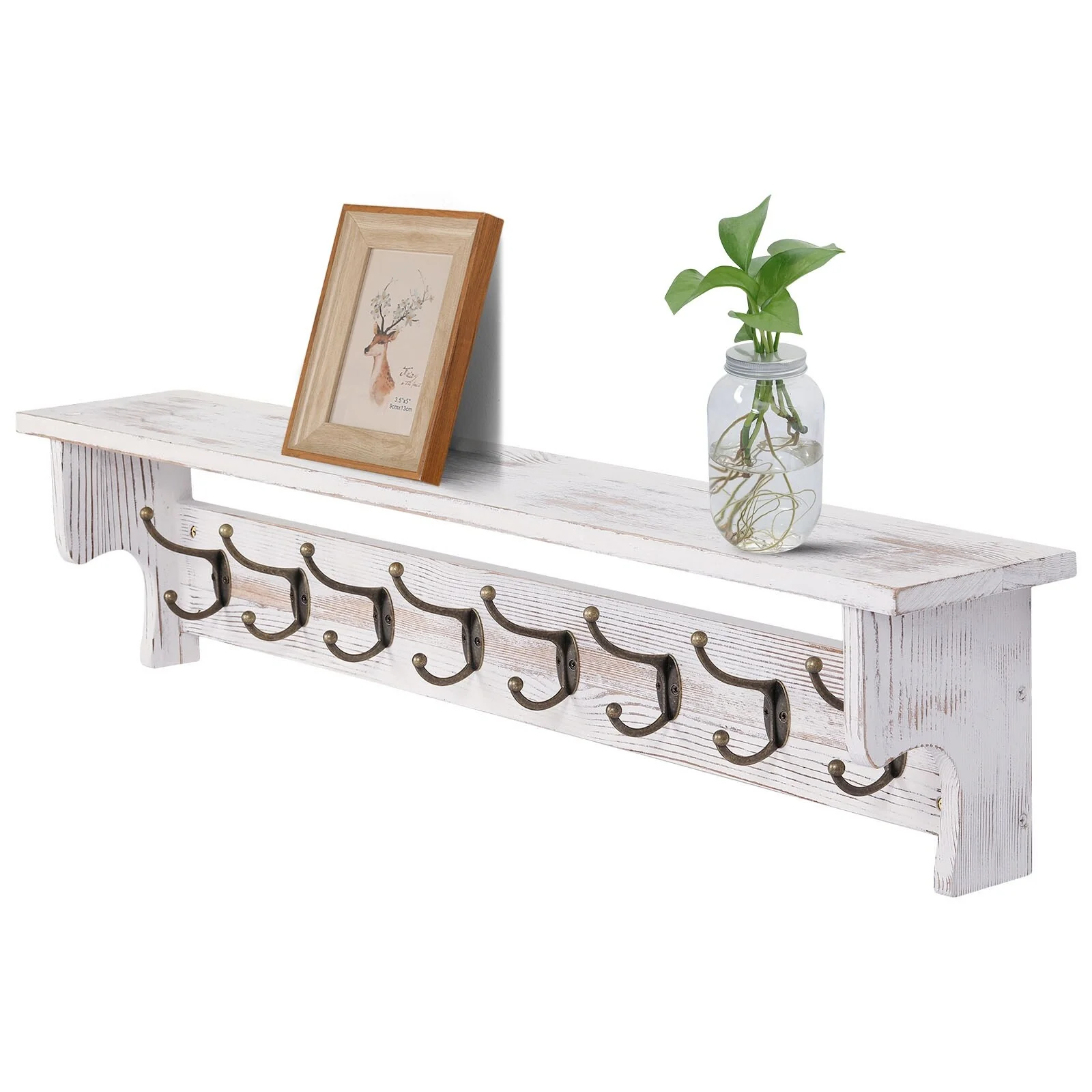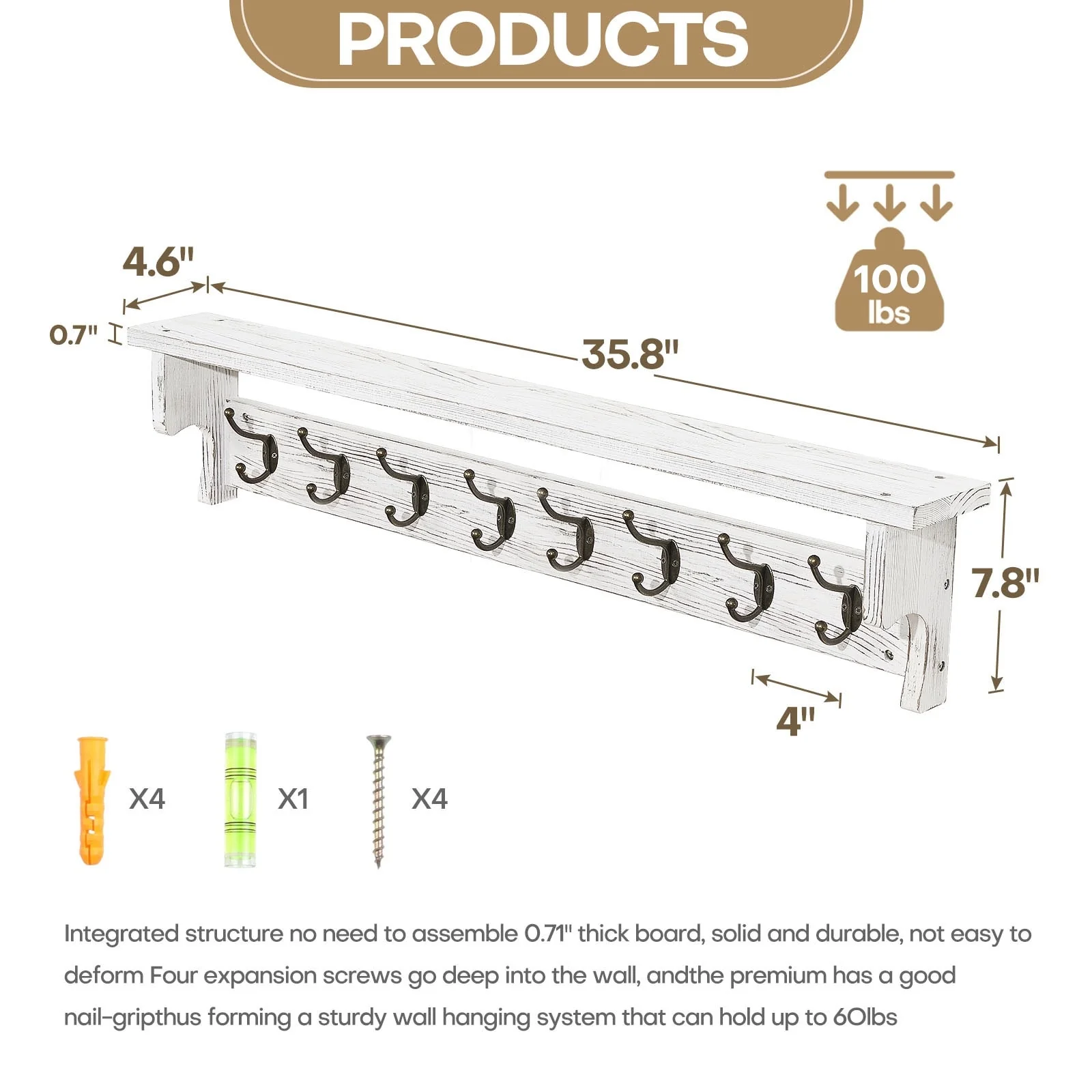 💡【Perfect Dimension & Retro Design】Perfect Dimension: 35.8'L x 4.6'D x 7.8'H, space between the rustic hooks: 4'. This rack features a rustic vintage design with environmentally friendly paint for weathered treatment, bringing out the natural beauty of the wood grain, can be easily combines with home decors.