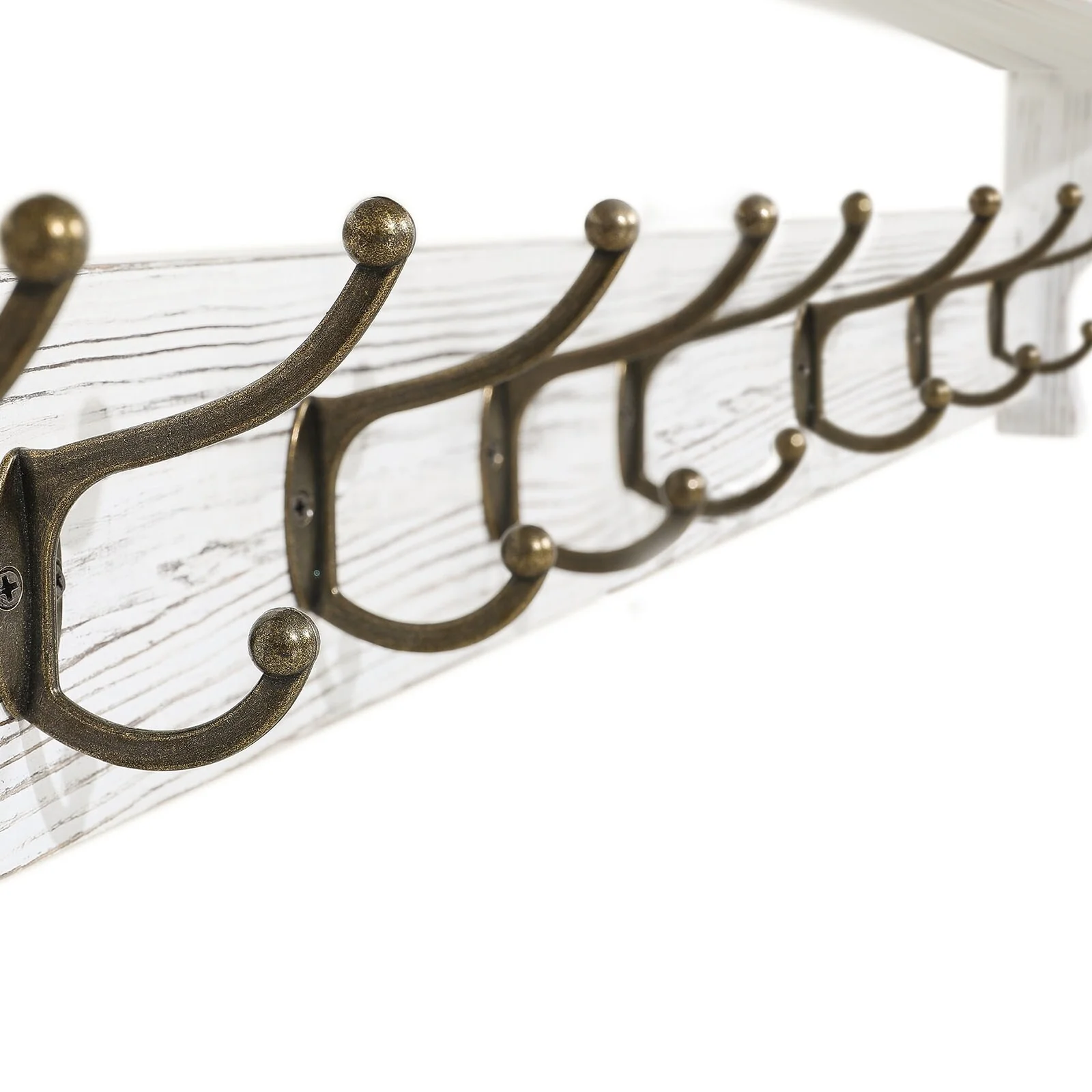 Elevate the elegance of your home with our Pinewood Entryway Coat Rack. Designed with 8 dual metal hooks and an open-top storage shelf, it provides enough space to hang the jackets, hats, umbrella or keys etc and display your photos, other decorative items on the shelf. Easy to pick up item, you will never lose personal belongings when you leave home. Our coat rack is well constructed with natural pinewood in vintage finish, strong enough to hold up to 100 pounds for extended service time. Ideal for entryway, foyer, mudroom, laundry room and small space to keep house organized.