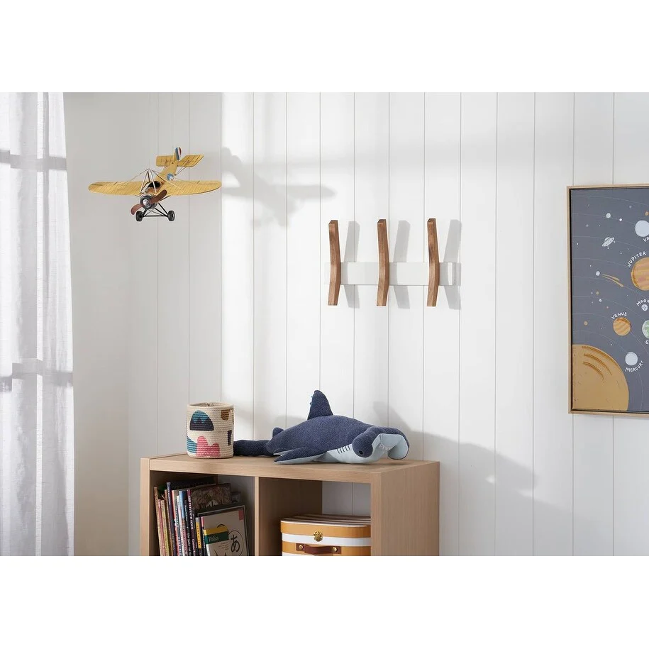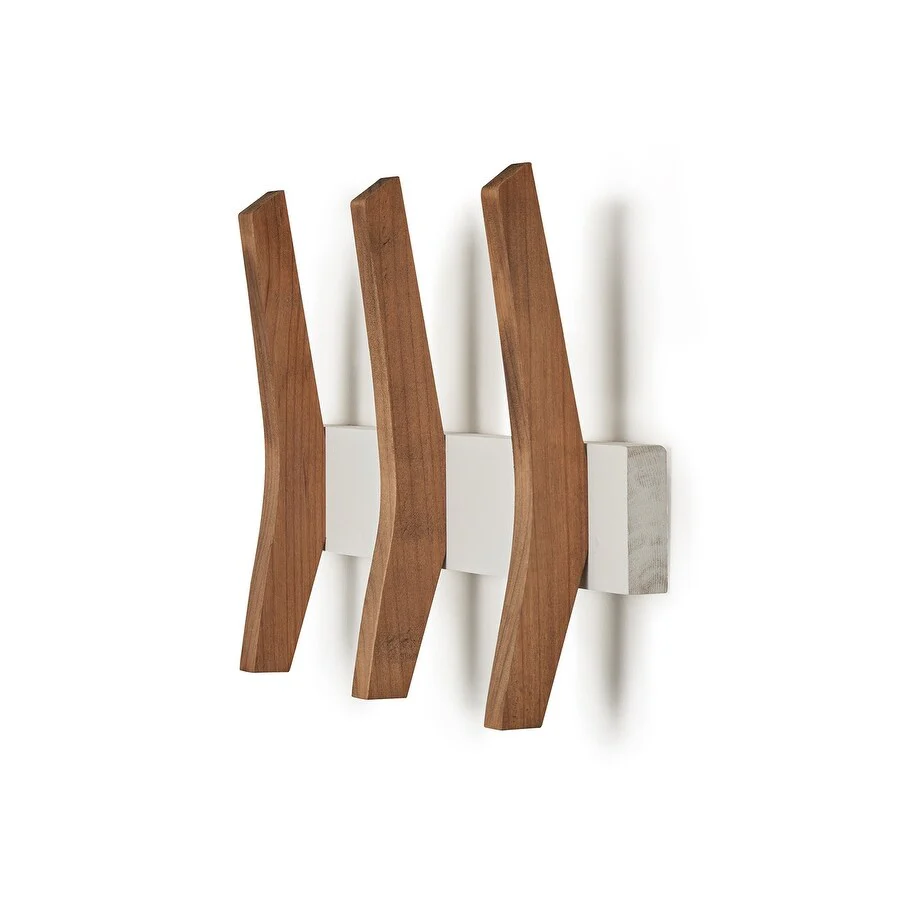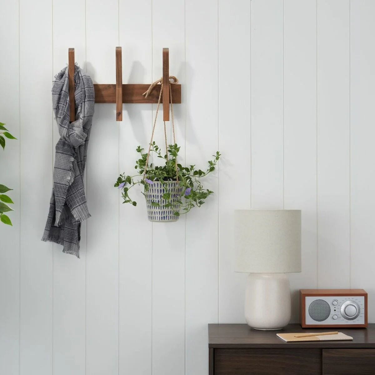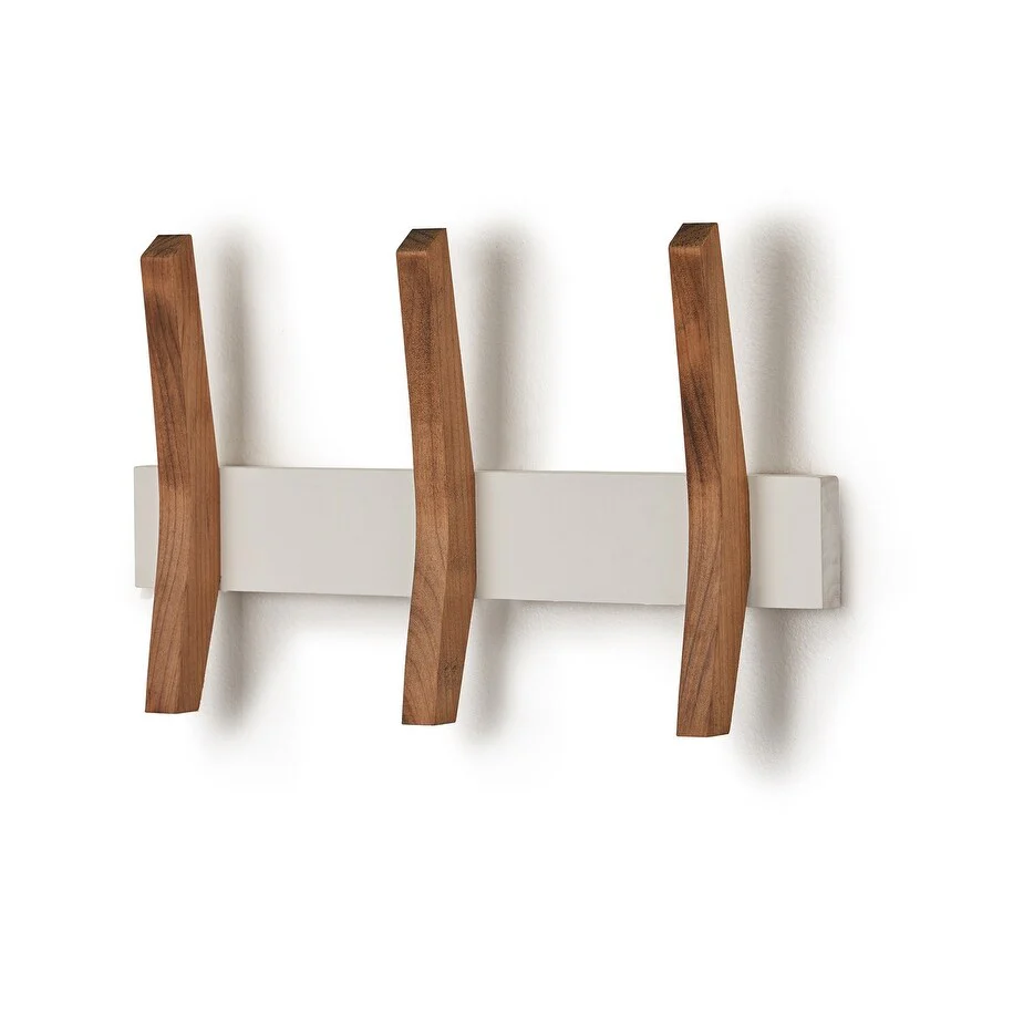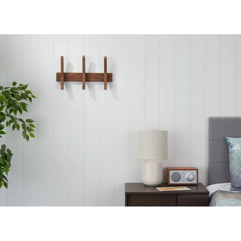 DRAKESTONE mid-century-inspired hook rack made with solid knotty alder wood adds a stylish statement to any entryway, foyer, or bathroom. Organize your hats, coats, and accessories, or use it as a towel rack in your bathroom. The keyhole slots allow easy hanging, a flush wall mount, and sturdy support.