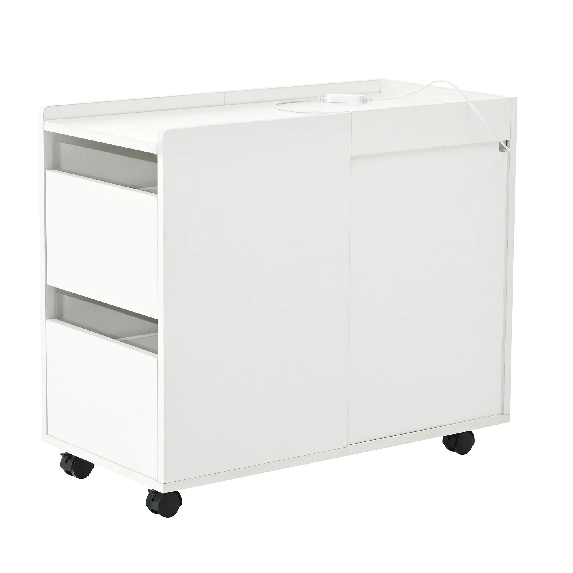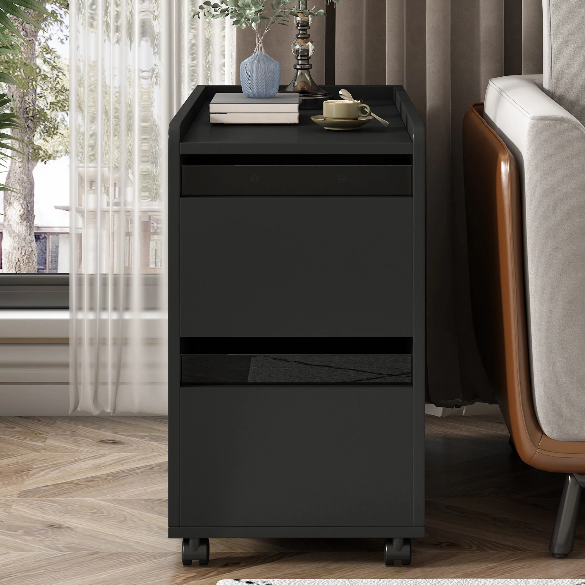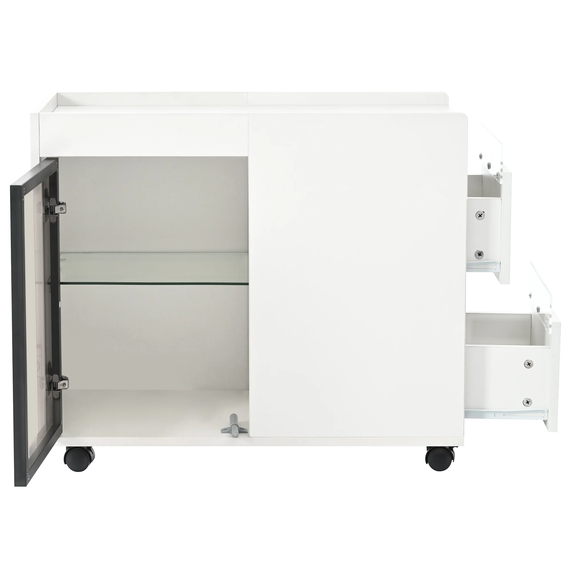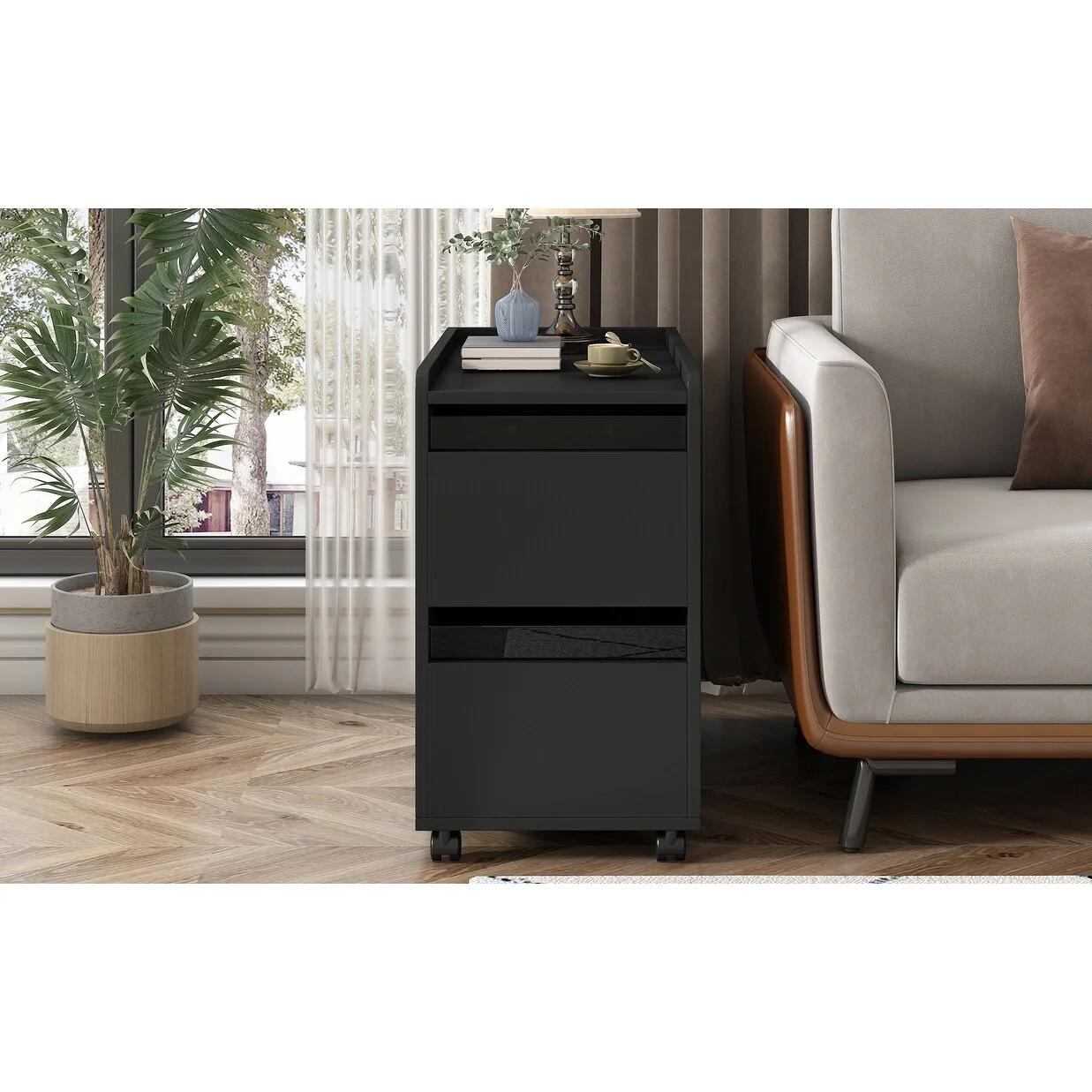 Discover the epitome of contemporary design blended with groundbreaking functionality in our modern LED end table. It promises not only to fulfill your storage and display needs but also to enhance the aesthetics and functionality of your space. With lockable wheels, it can be easily adjusted to suit your mood and moved to anywhere. The end table comes with a built-in shelf, drawers and a spacious apron design top which can provide plenty of storage space.When you're hosting a gathering with friends or enjoying a quiet time alone, this end table brings a touch of modernity and convenience to your living room.