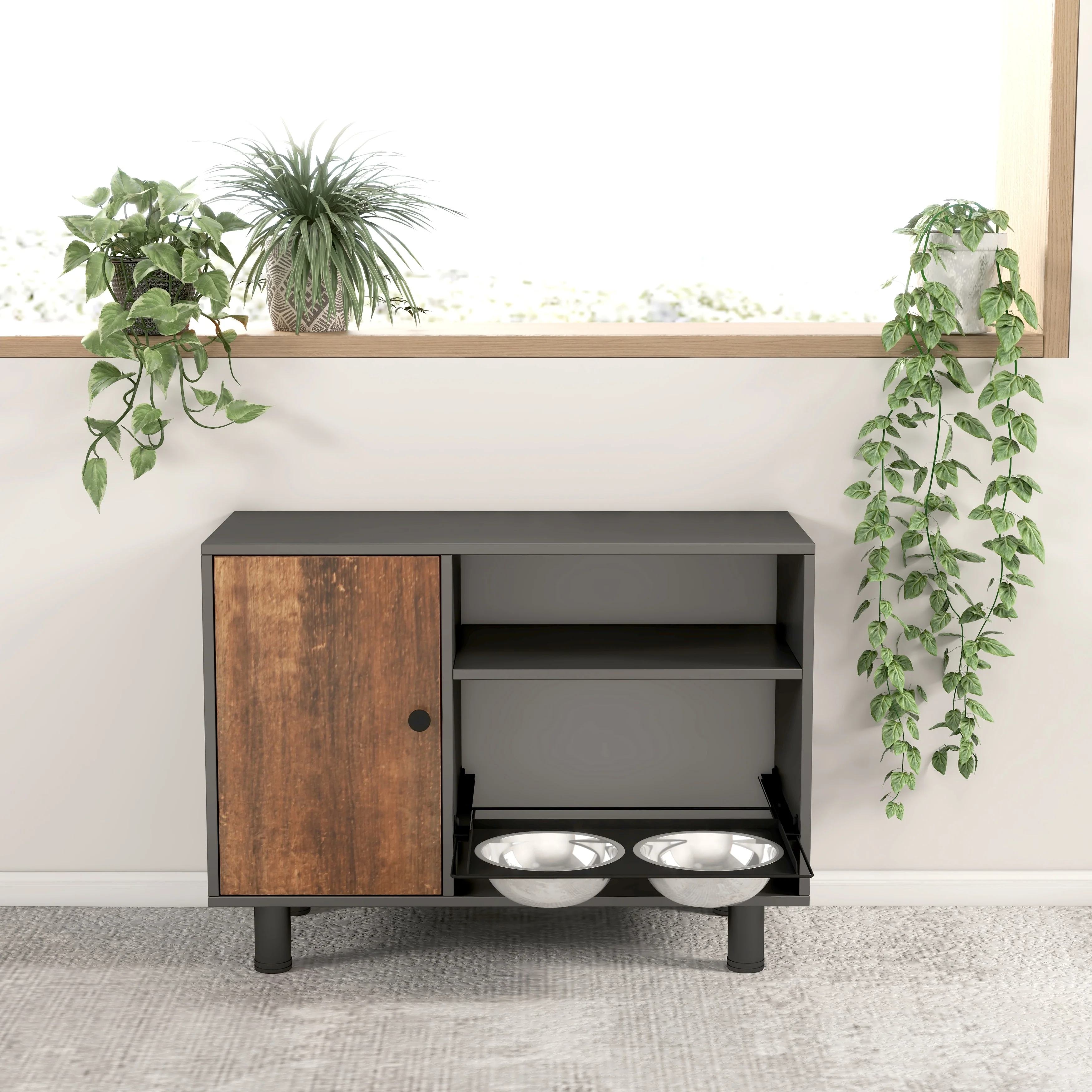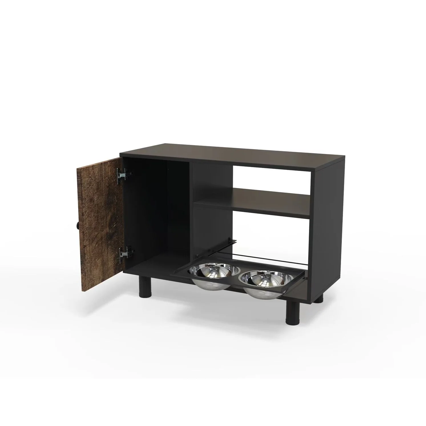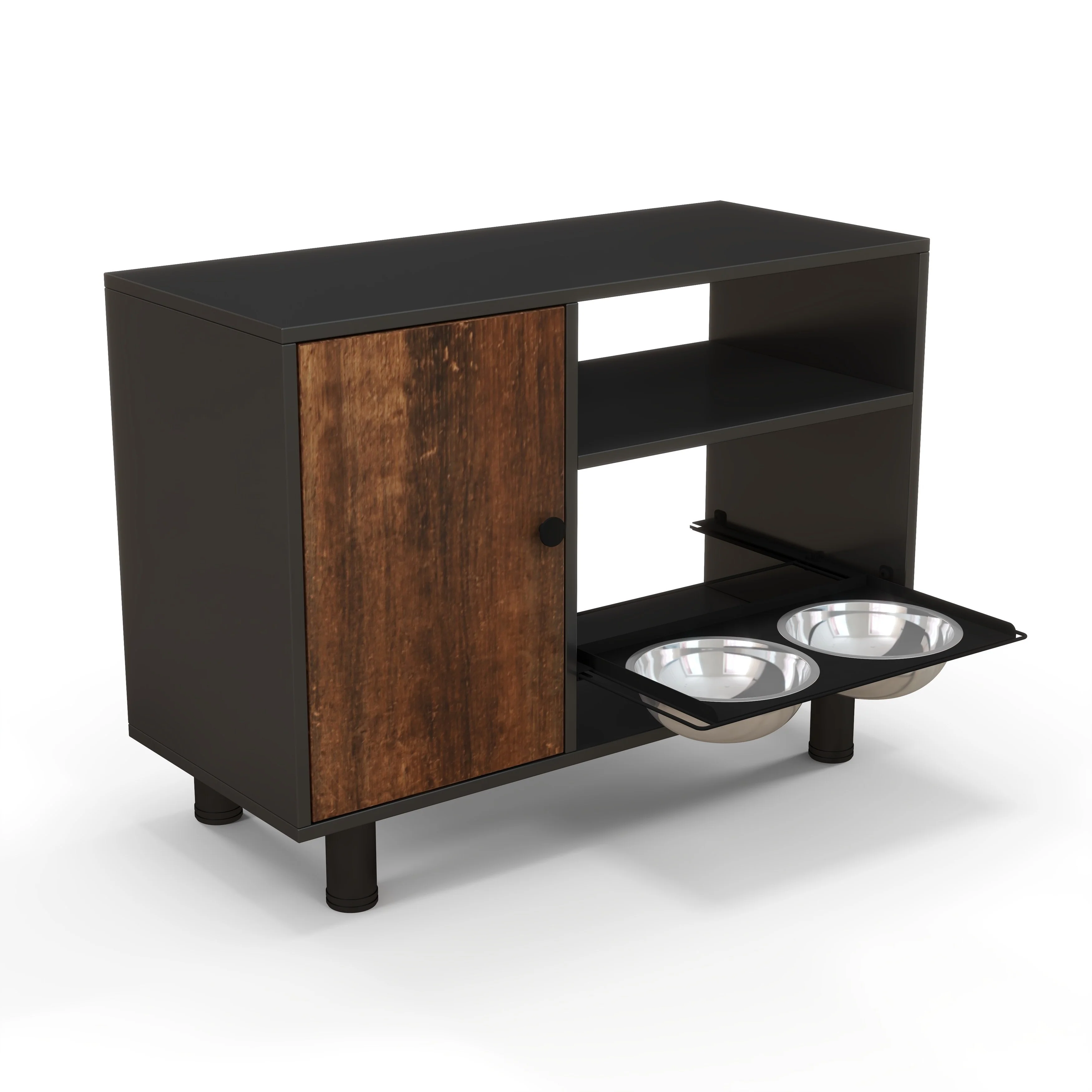 High quality and safety material :2 dog food bowls are made of high quality stainless steel, durable, rust-proof, odorless, safe for pets and long service life. Cabinet adopts high quality medium density board, CNC spray paint, scratch resistant, easy to clean. Large locker on the left side for storing dog food, etc. Two stainless steel bowls can be pulled out on the right side, and the height can be adjusted up and down. When the dog eats, it can be pulled out and used, and it can be stored without taking up space when it is not used. Two different heights can be installed for different types of dogs. Versatile and easy to assemble: Stylish and elegant in appearance, the practical dog food storage container also fits perfectly into your home decor. Also, thanks to detailed instructions and easy-to-understand illustrations, it is easy and quick to set up.