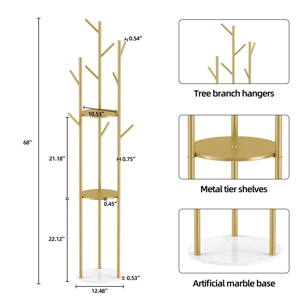 The 13-inch heavy marble base supports your family’s coats without rocking.