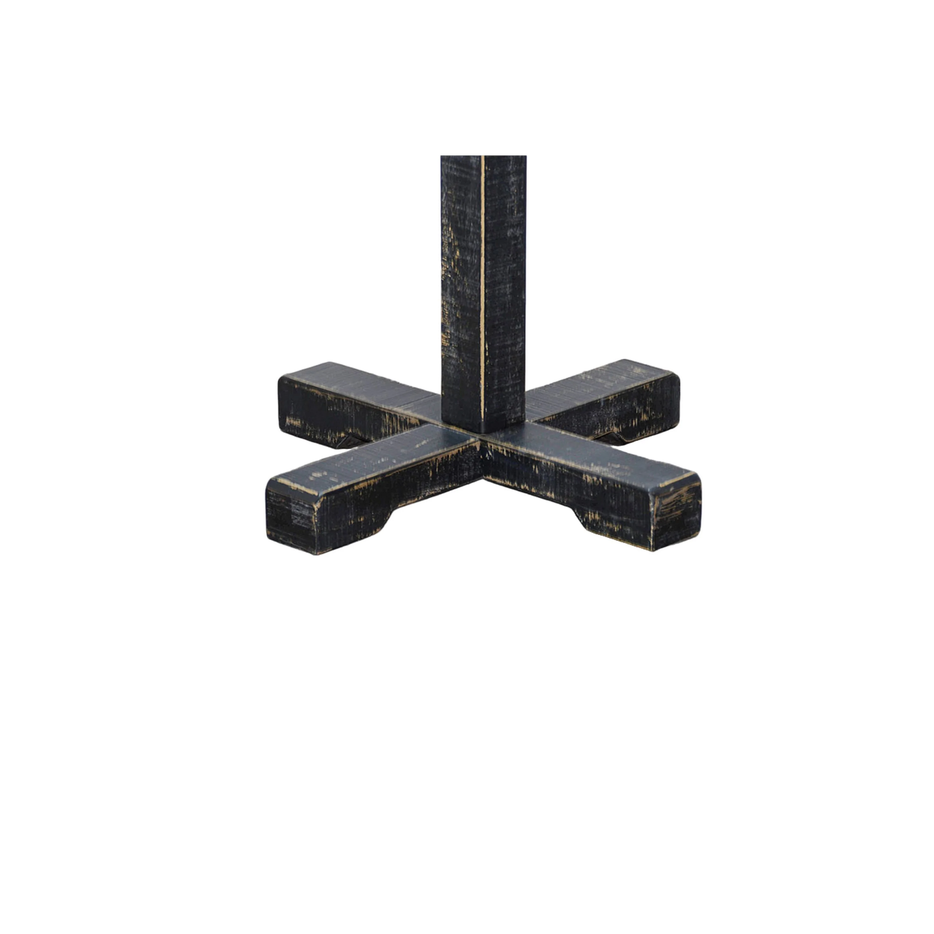 Add a rustic touch to your home with this exquisite hat rack. This stylish coat tree is crafted from mahogany wood and features a distressed black sand finish, bringing functionality and charm to your entryway or bedroom. Its stem-like design and sturdy X-cross base offer eight wooden prongs to organize hats, coats, and more. Check out our Rena collection for more options.